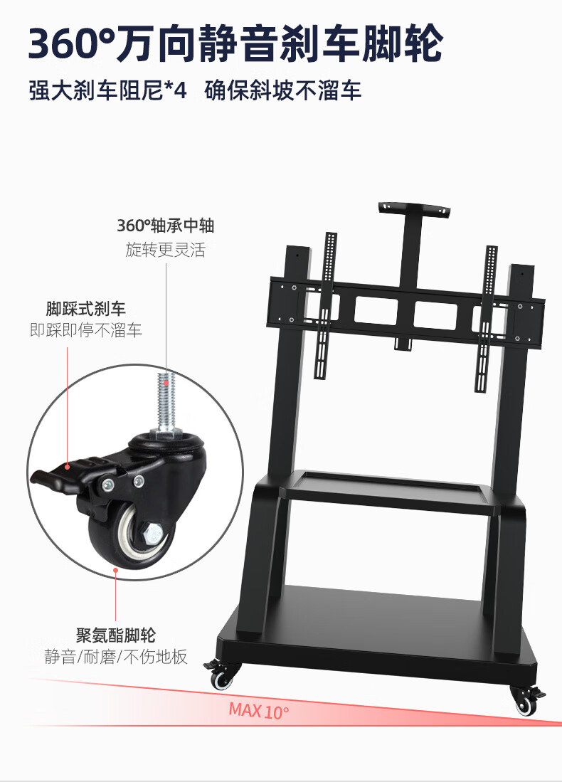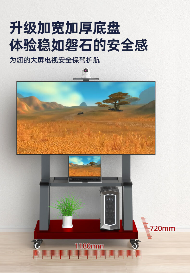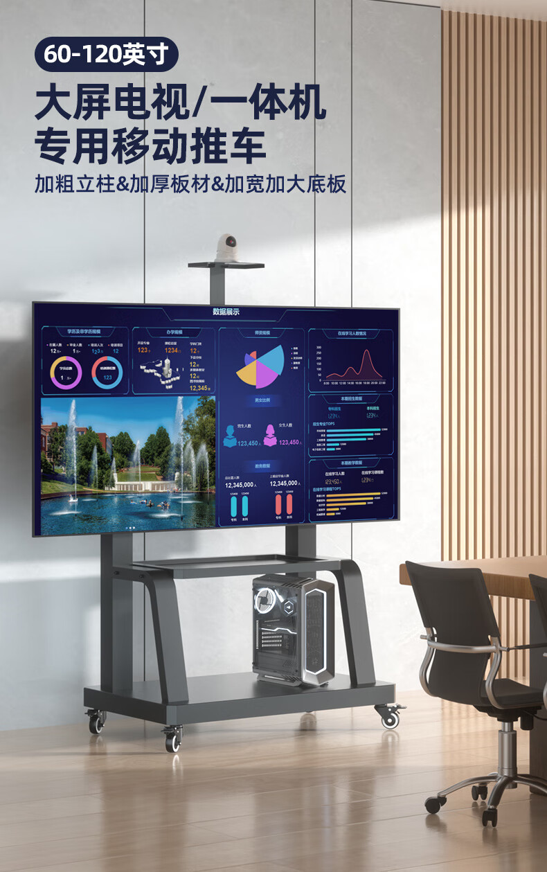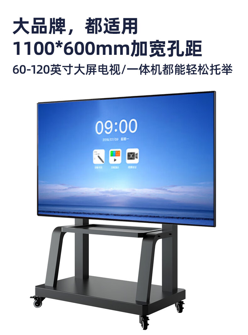 TV cart commercial display tablet all-in-one floor-standing mobile display rack punch-free vertical heightening bracket with wheels 32-55 inches with center support