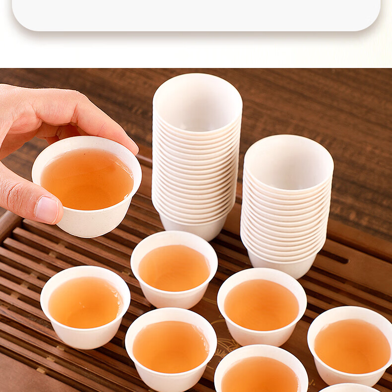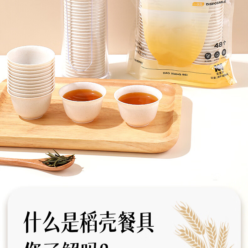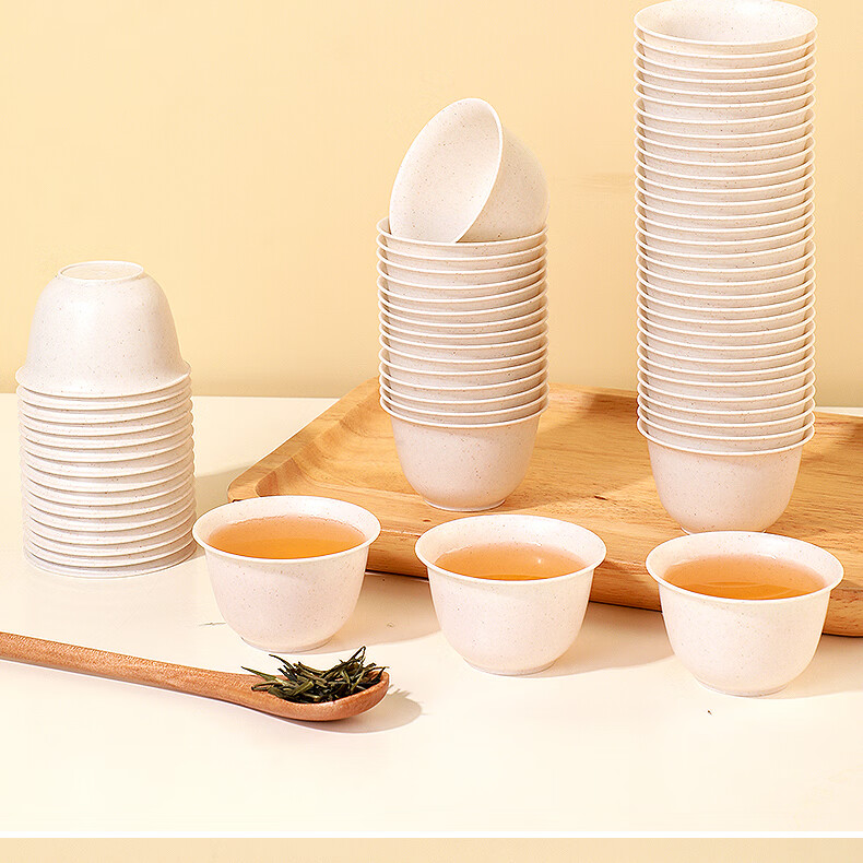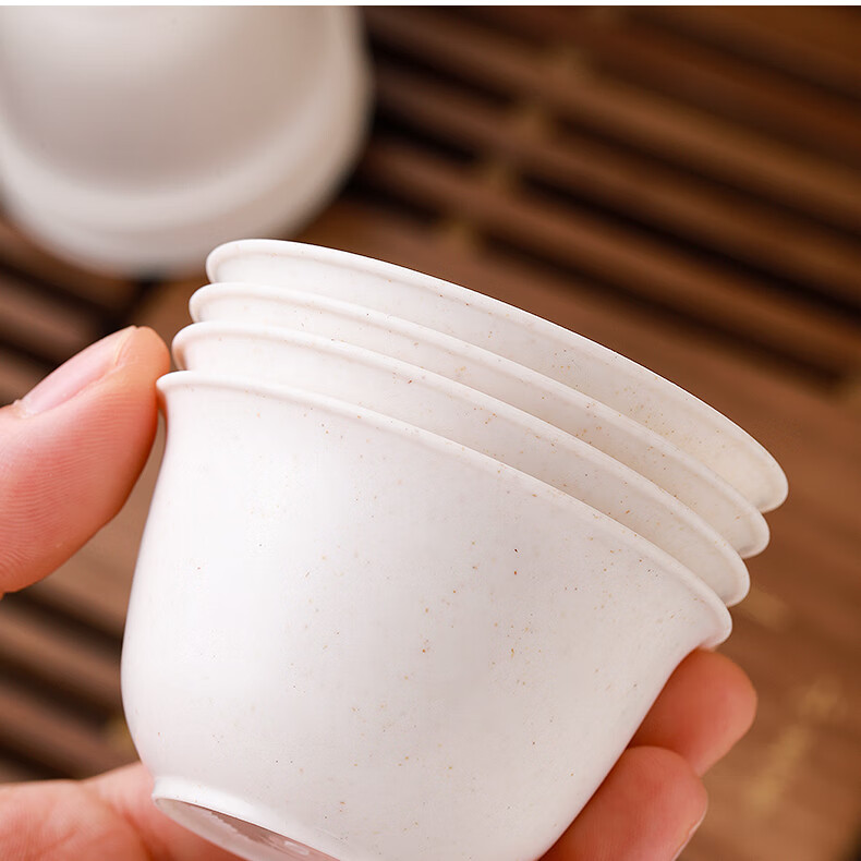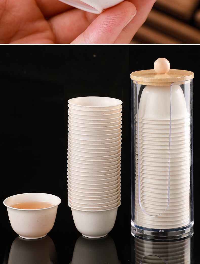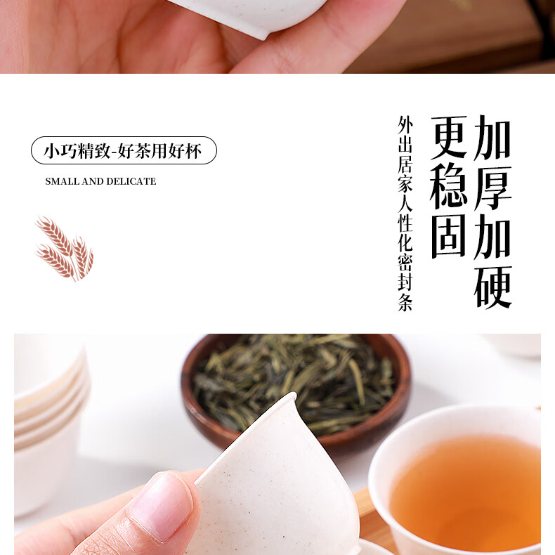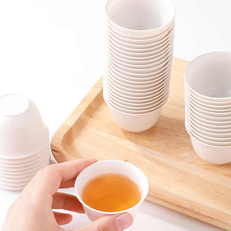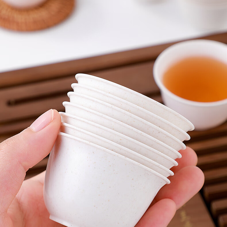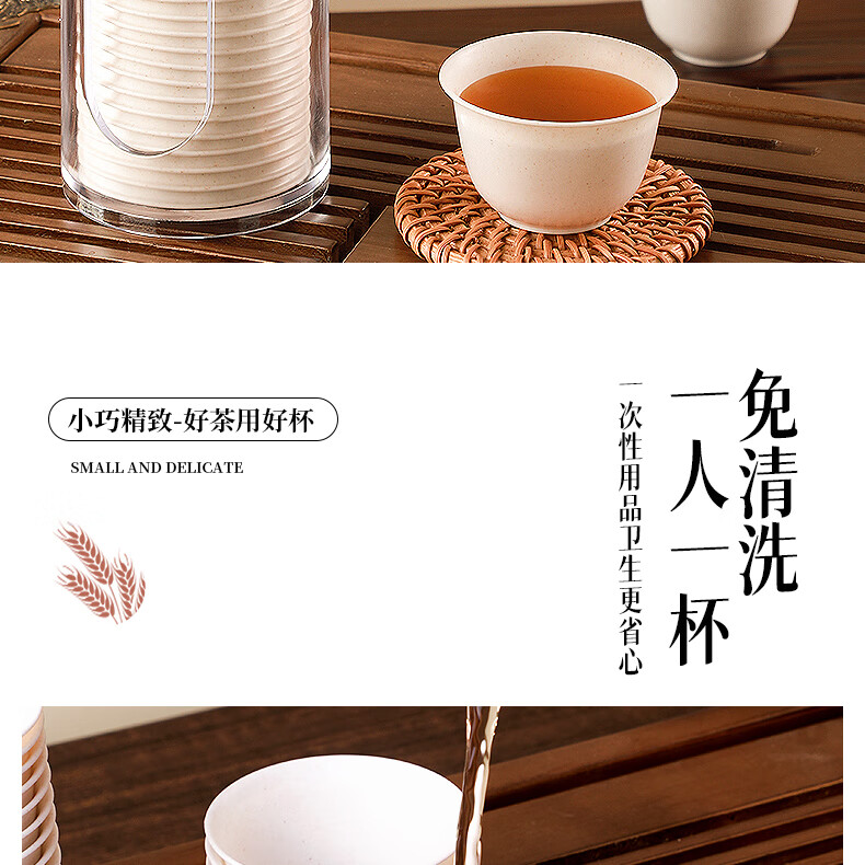 Rihe Shengtang disposable kung fu tea cup thickened cup for drinking tea thickened water cup small rice husk disposable tea cup for tea 60ml rice husk tea cup 5 pack 240 pcs + 1 transparent cup holder