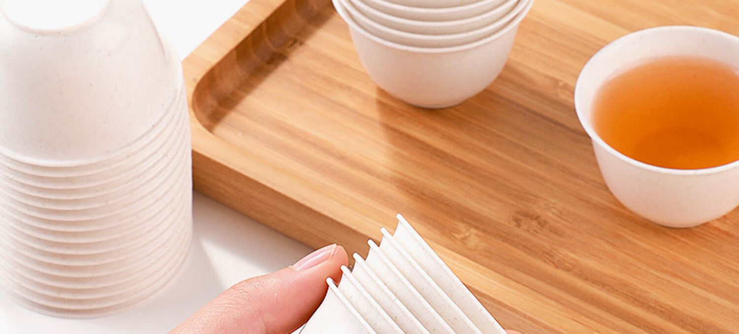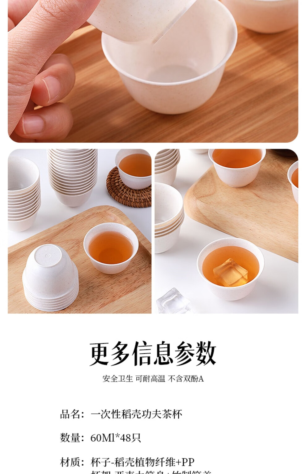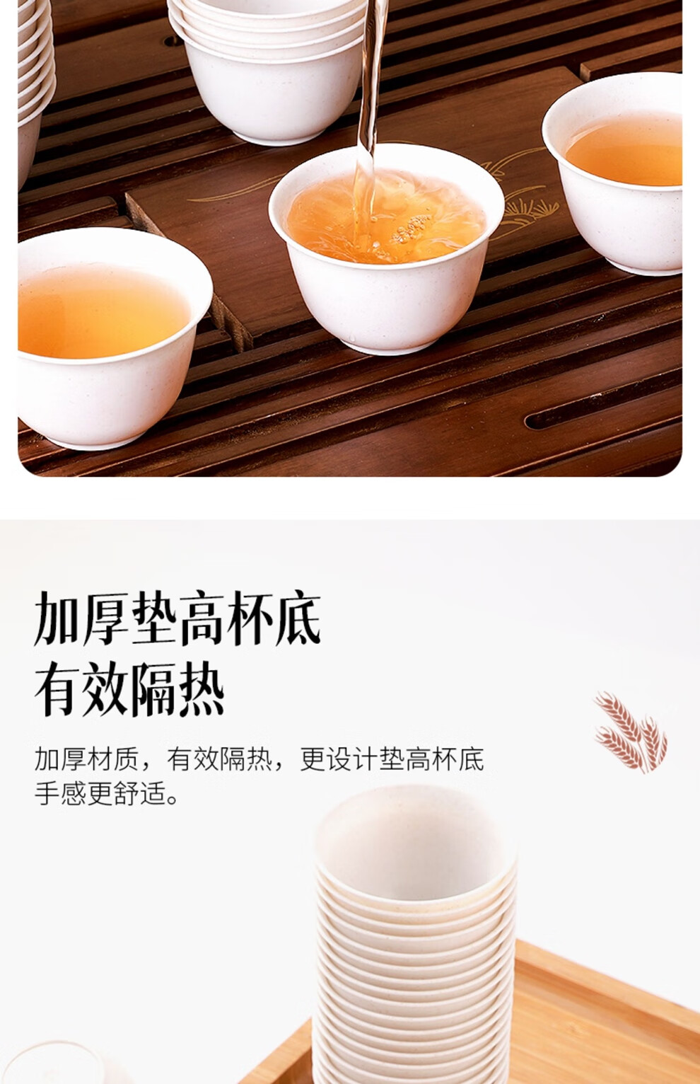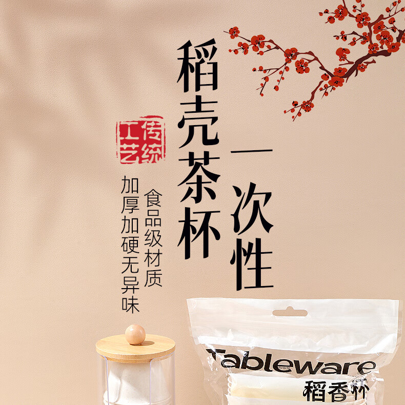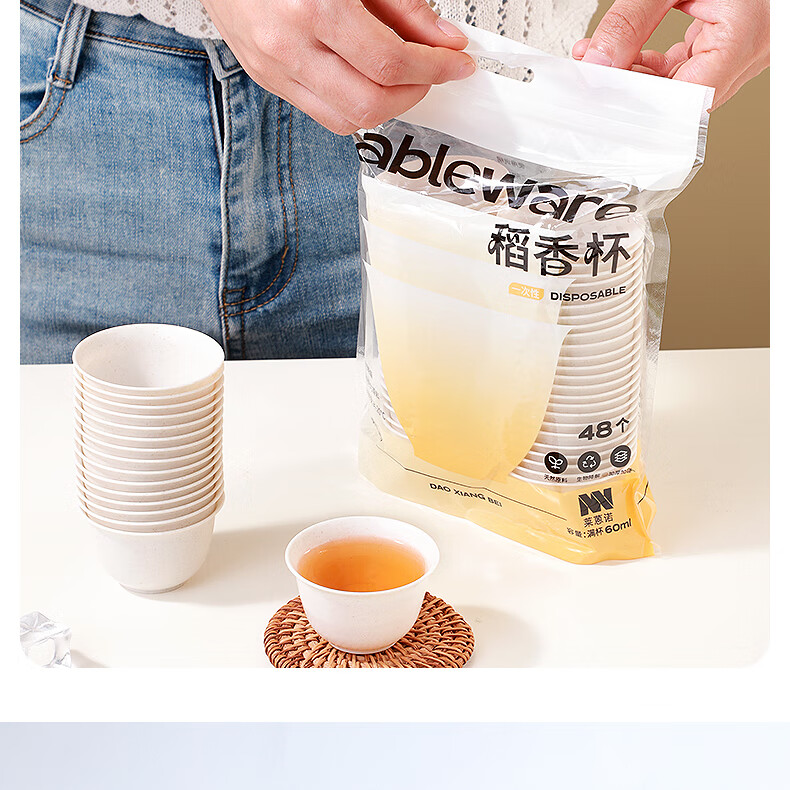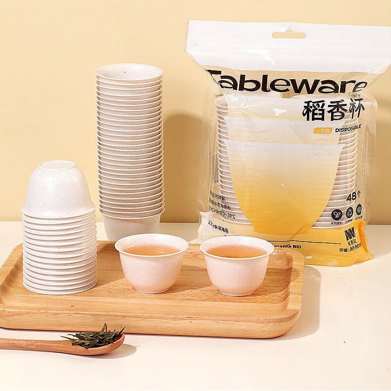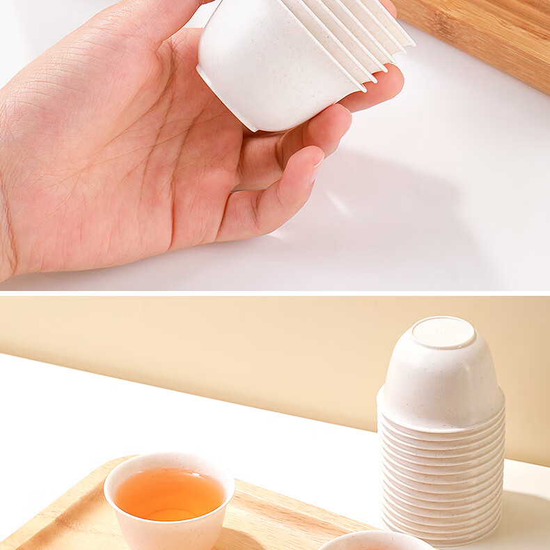 Rihe Shengtang disposable kung fu tea cup thickened cup for drinking tea thickened water cup small rice husk disposable tea cup for tea 60ml rice husk tea cup 5 pack 240 pcs + 1 transparent cup holder