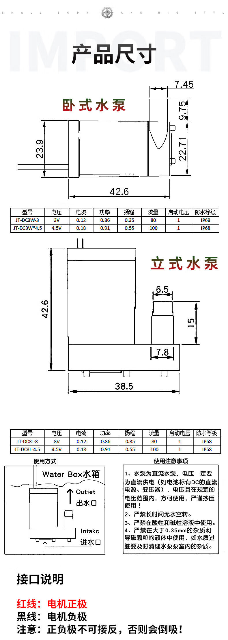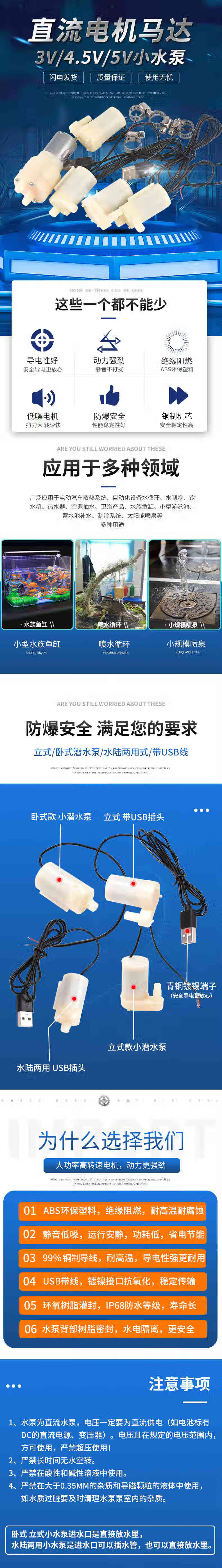 DC small submersible pump self-priming pump USB plug micro mini fountain 3V4.5V5V6V12V DC motor motor amphibious/with USB head 5V small submersible pump DC3W