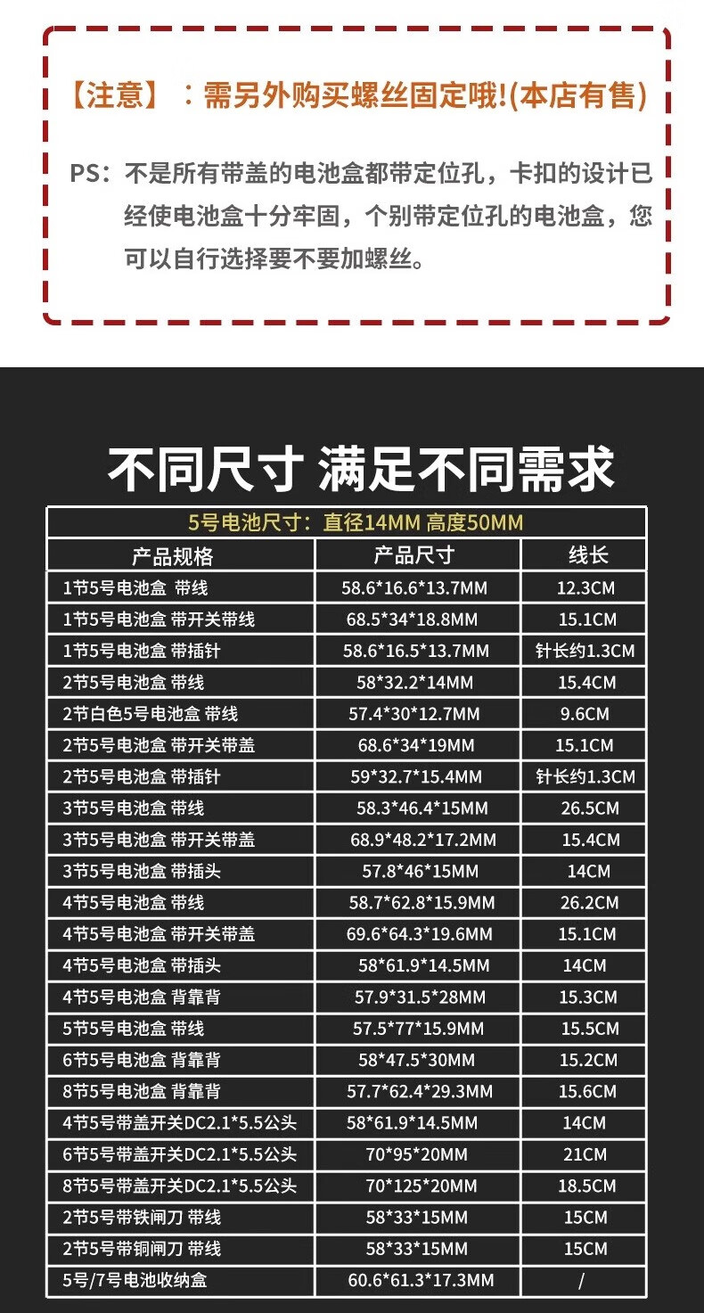 No. 5 No. 7 battery box 1/2/3/4/5/6/8 cells with switch cover No. 75 battery box 1/2/3/4 cells No. 5 battery box 4 cells (2 pieces)