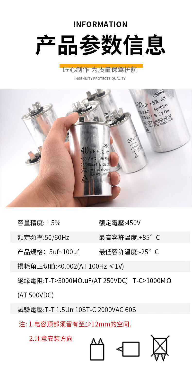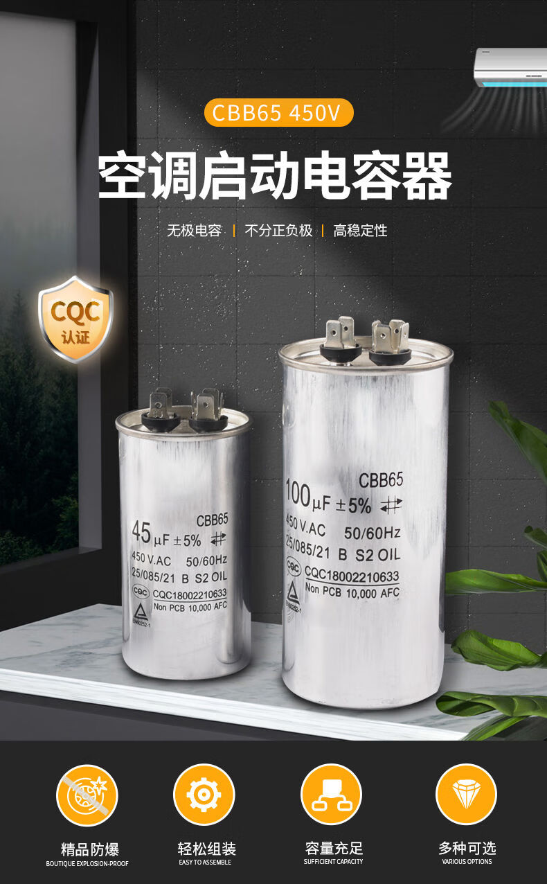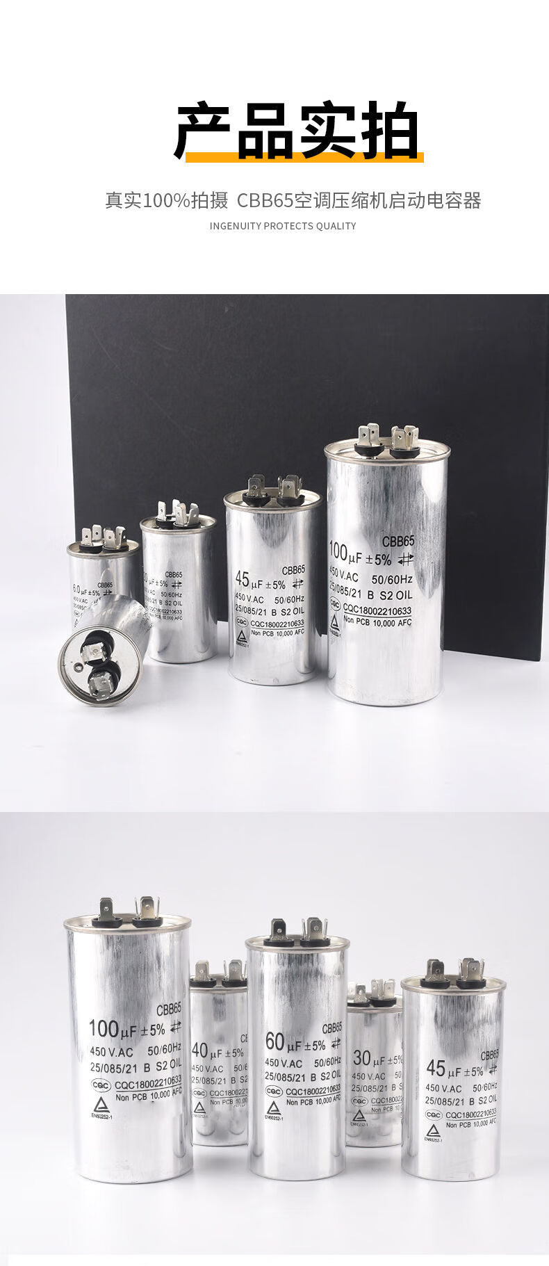 CBB65 air conditioning compressor starting capacitor 25/30/35/40/45/60/70UF450V 20UF (60uf) high quality CBB65 air conditioning starting capacitor