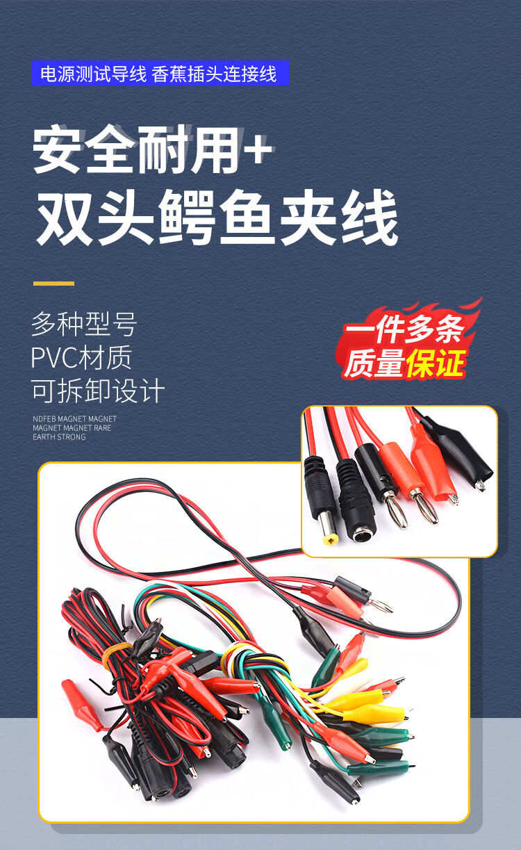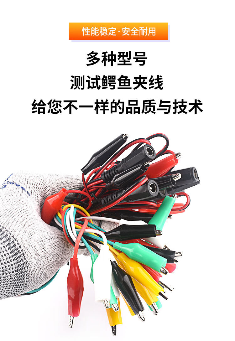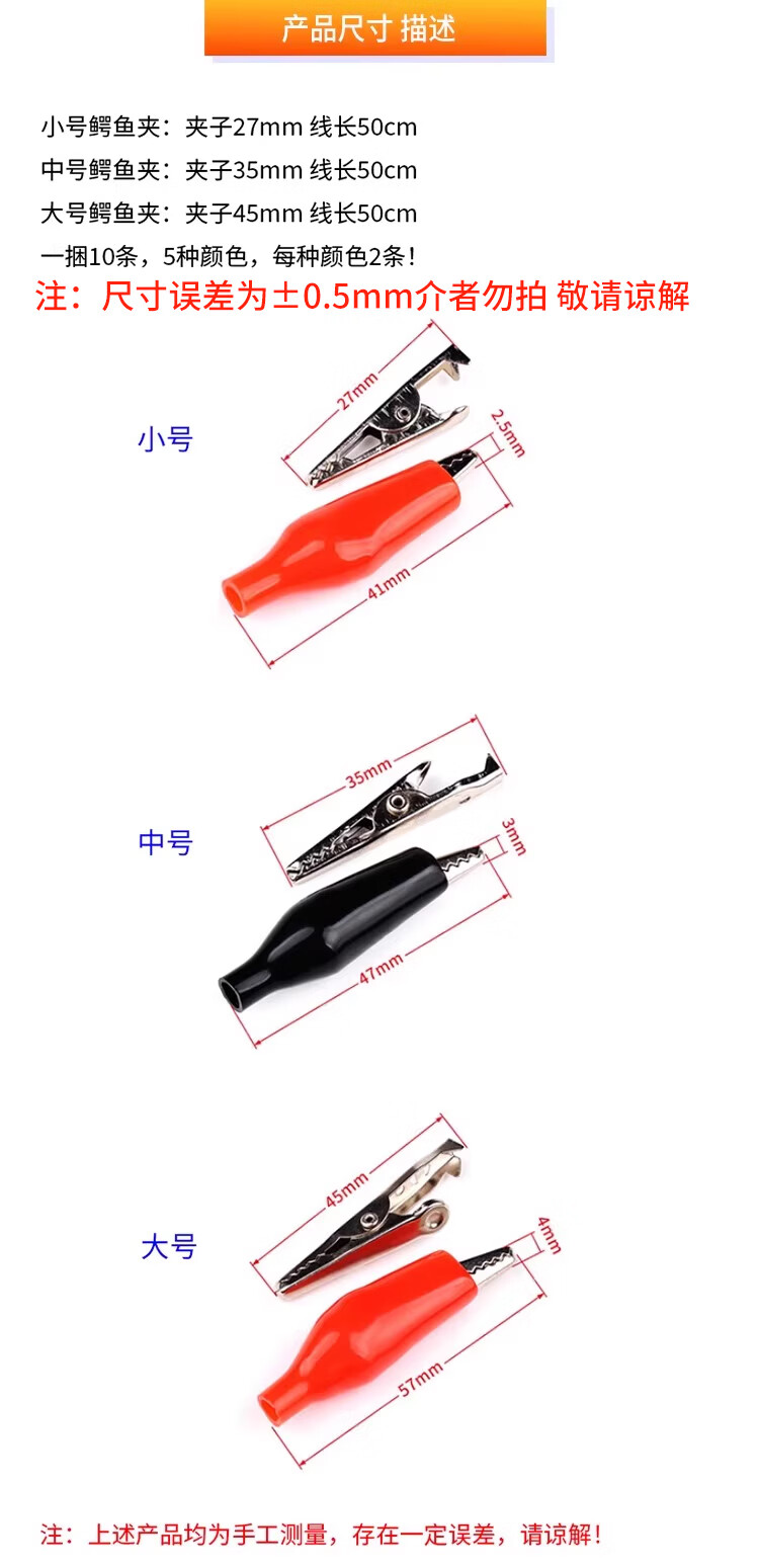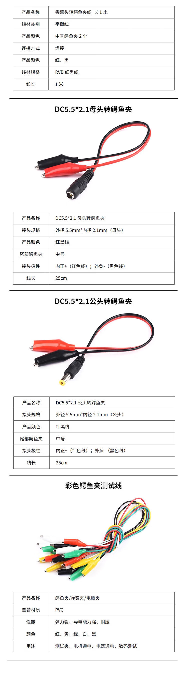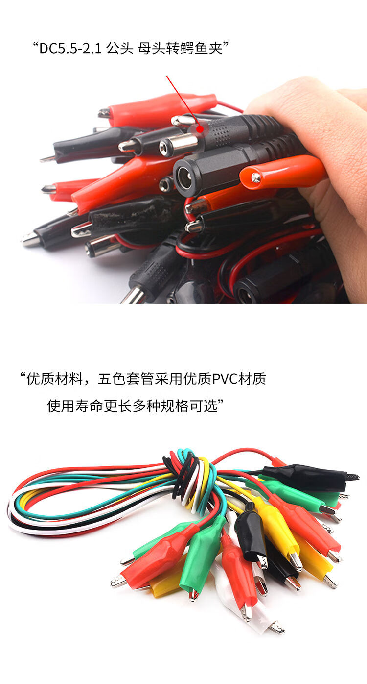 Alligator clip wire double-ended banana plug to crocodile clip with wire power test lead connection line color 2 wires 4 clips DC5.5*2.1 female to crocodile clip red and black wire 50cm (1 piece