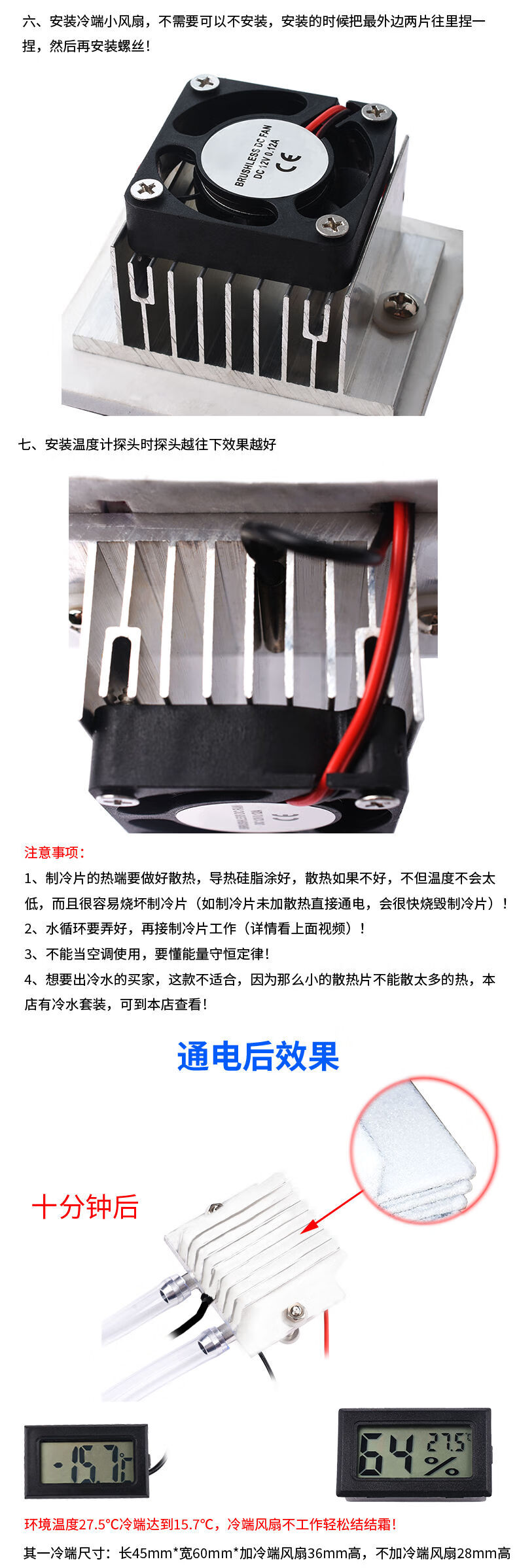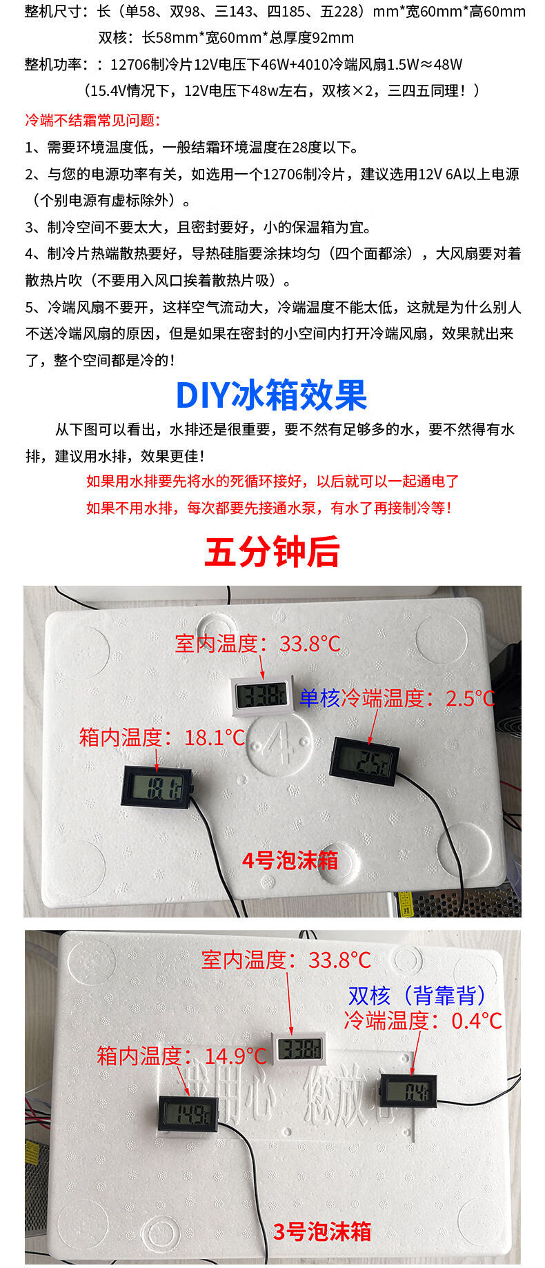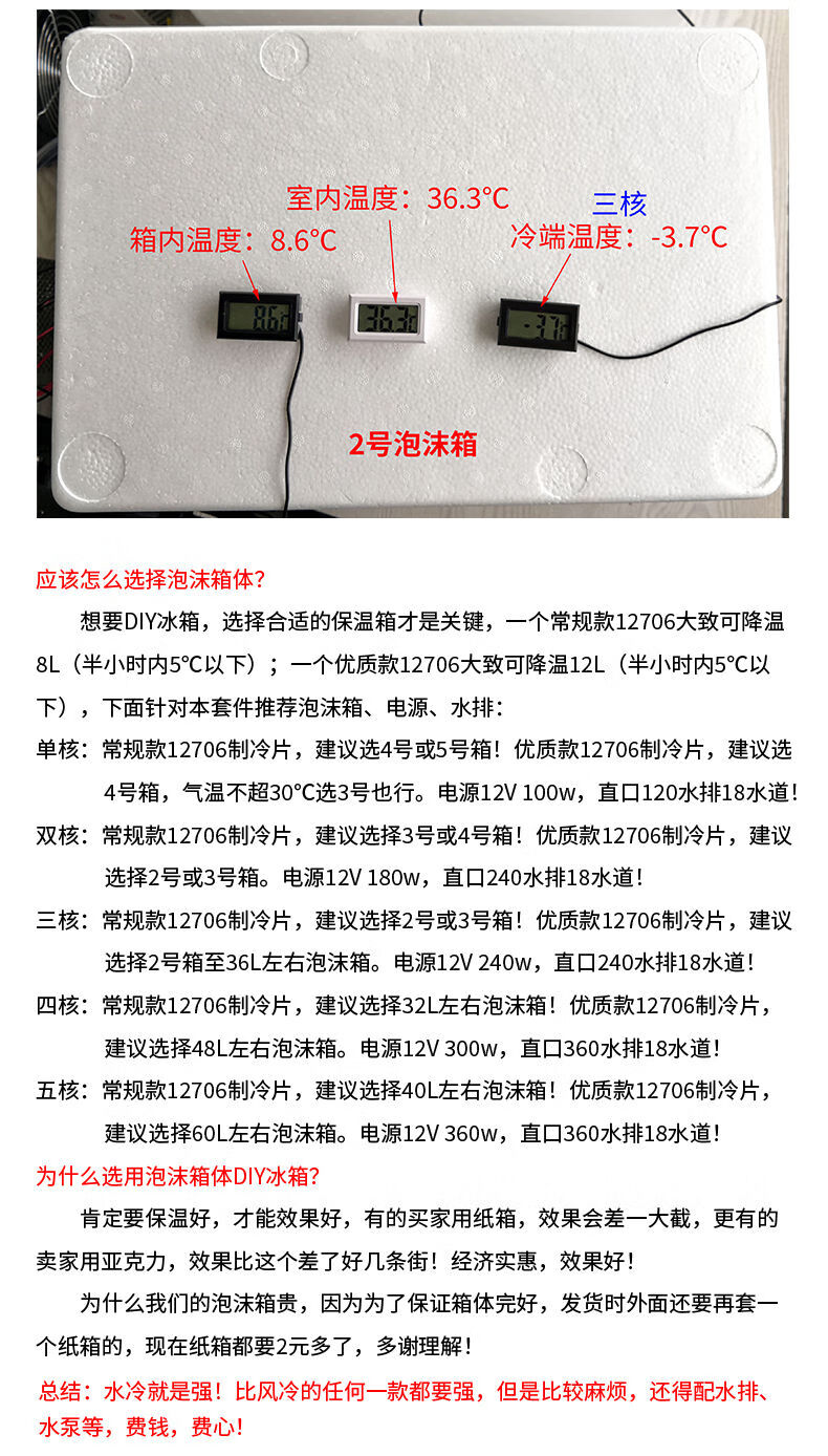 12V semiconductor refrigeration chip set, finished cooling electronic refrigerator, finished small air conditioner refrigerator, diy water block cooling kit (finished product) 12V dual-core refrigeration set (water drain heat dissipation) complete set