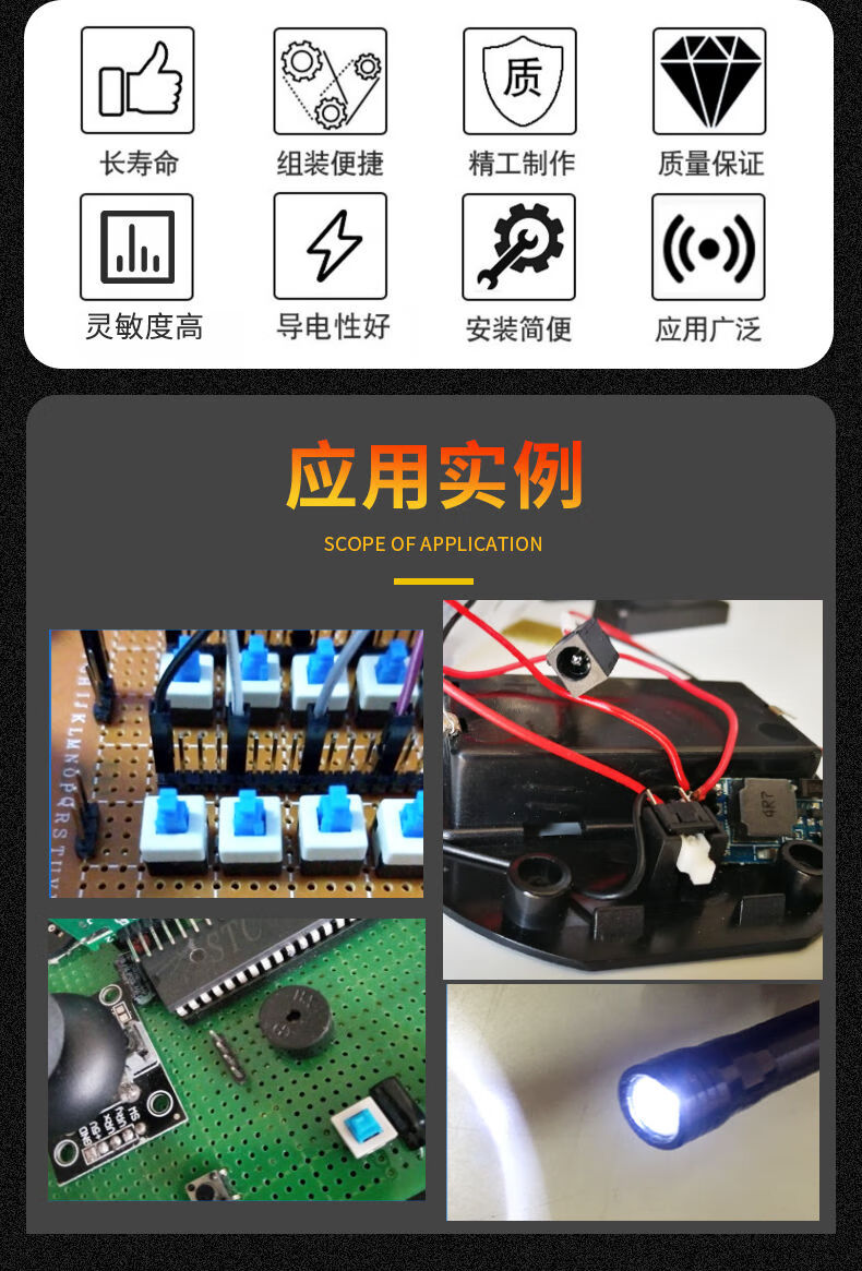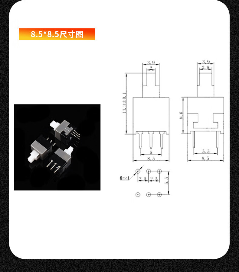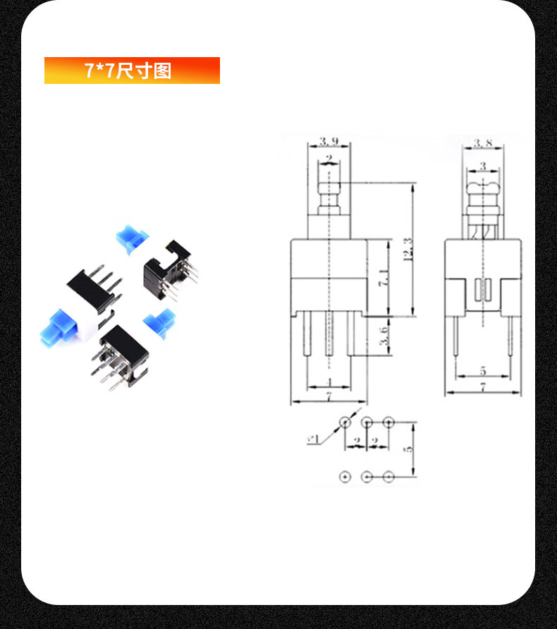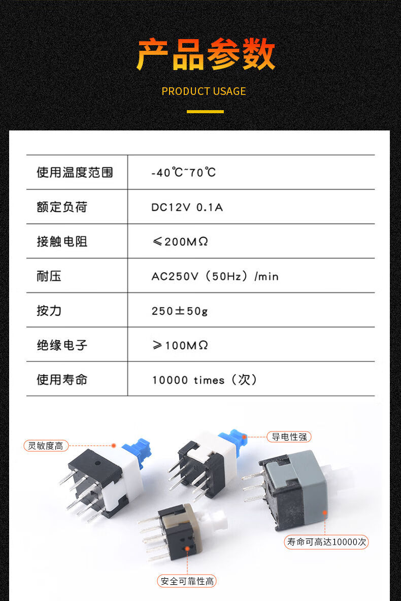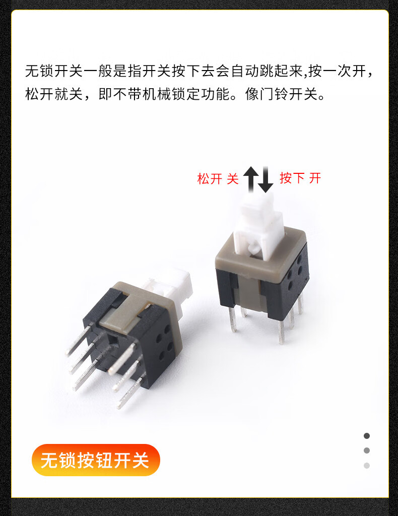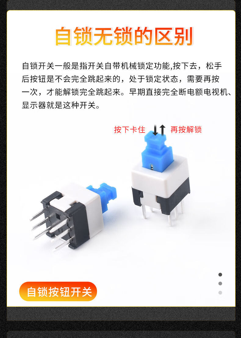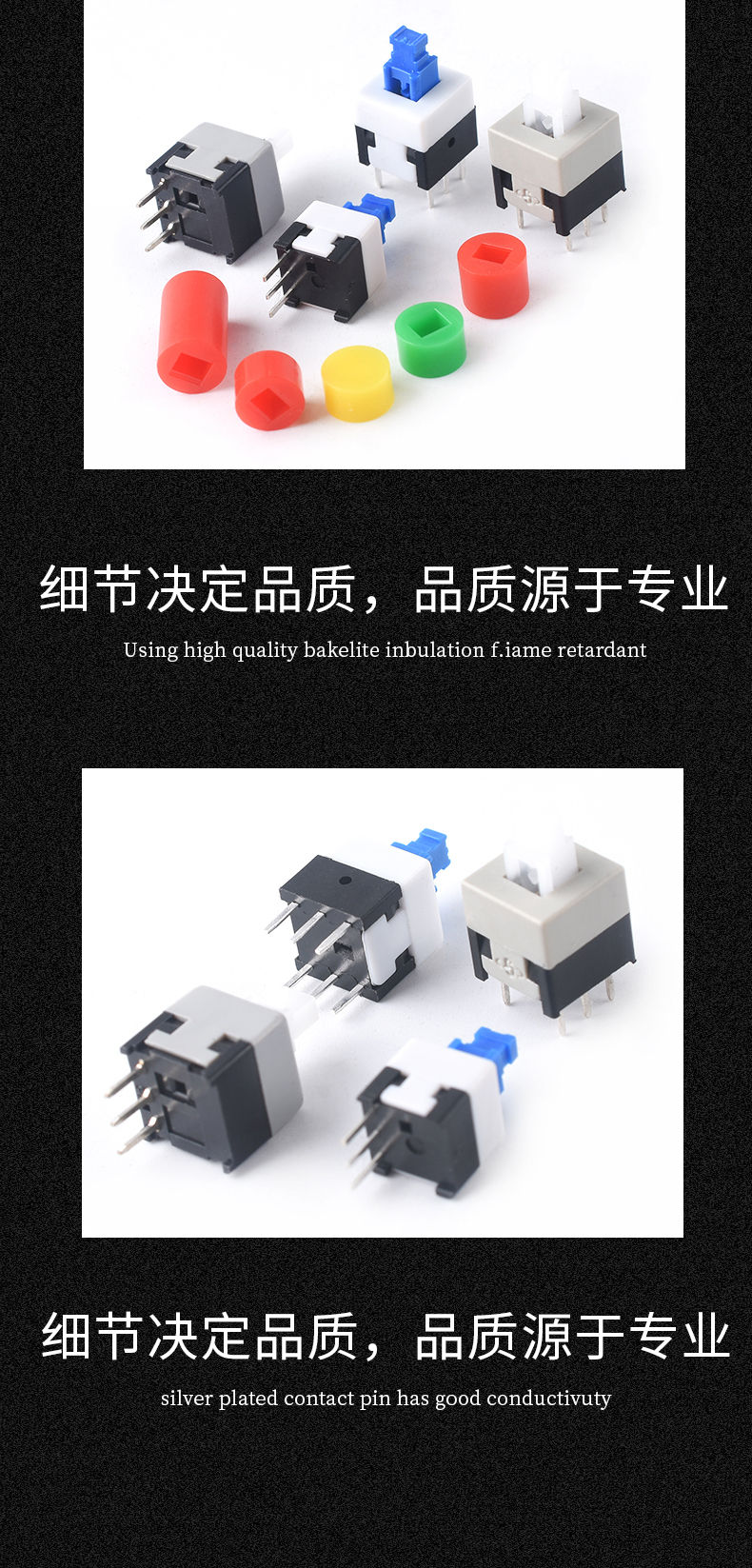 DZQJ self-locking lock-free switch 5.8*5.8 7*7 8*8 8.5*8.5mm button non-self-locking button three-pin 6-pin gray 5.8*5.8 self-locking six-pin (10 pieces)