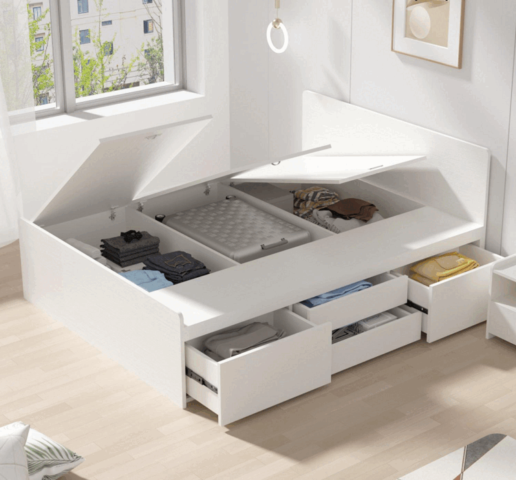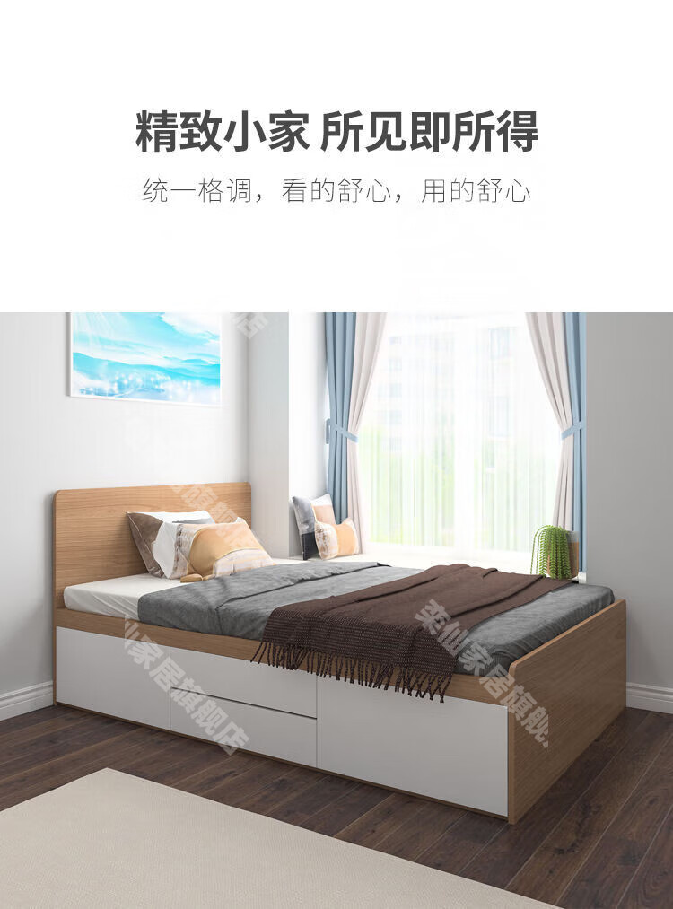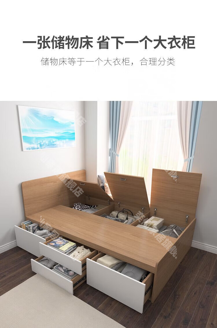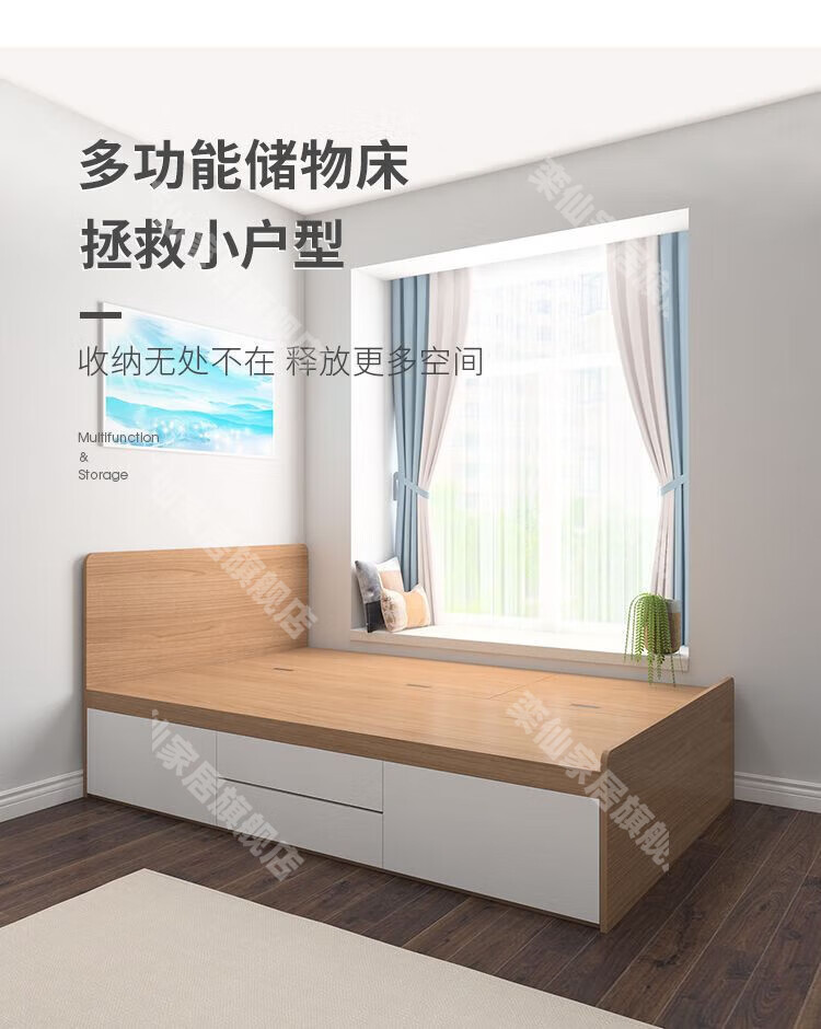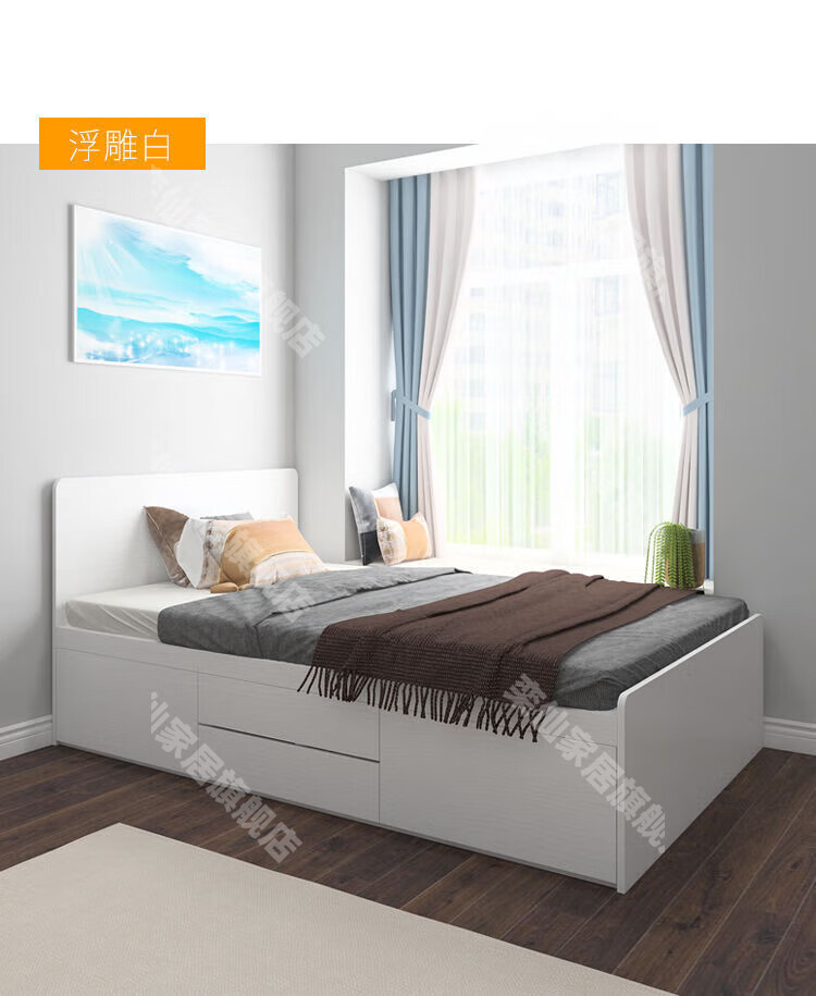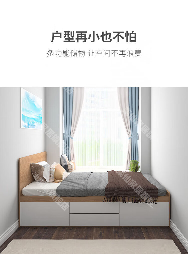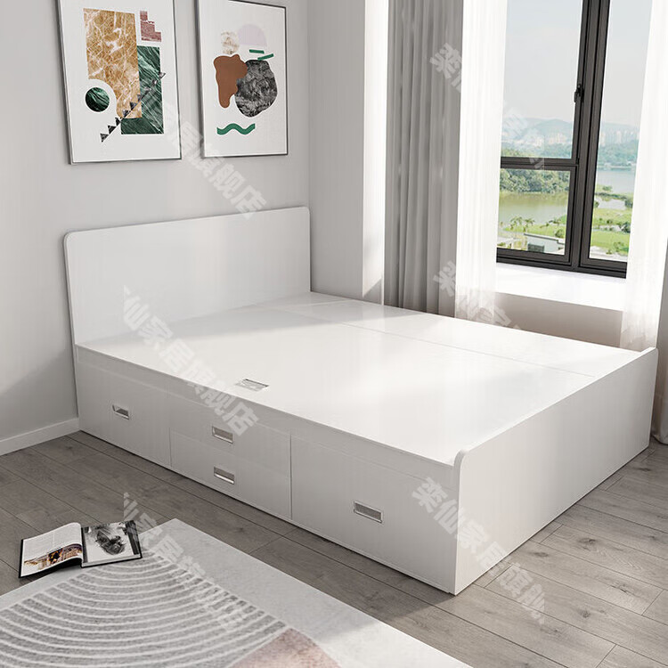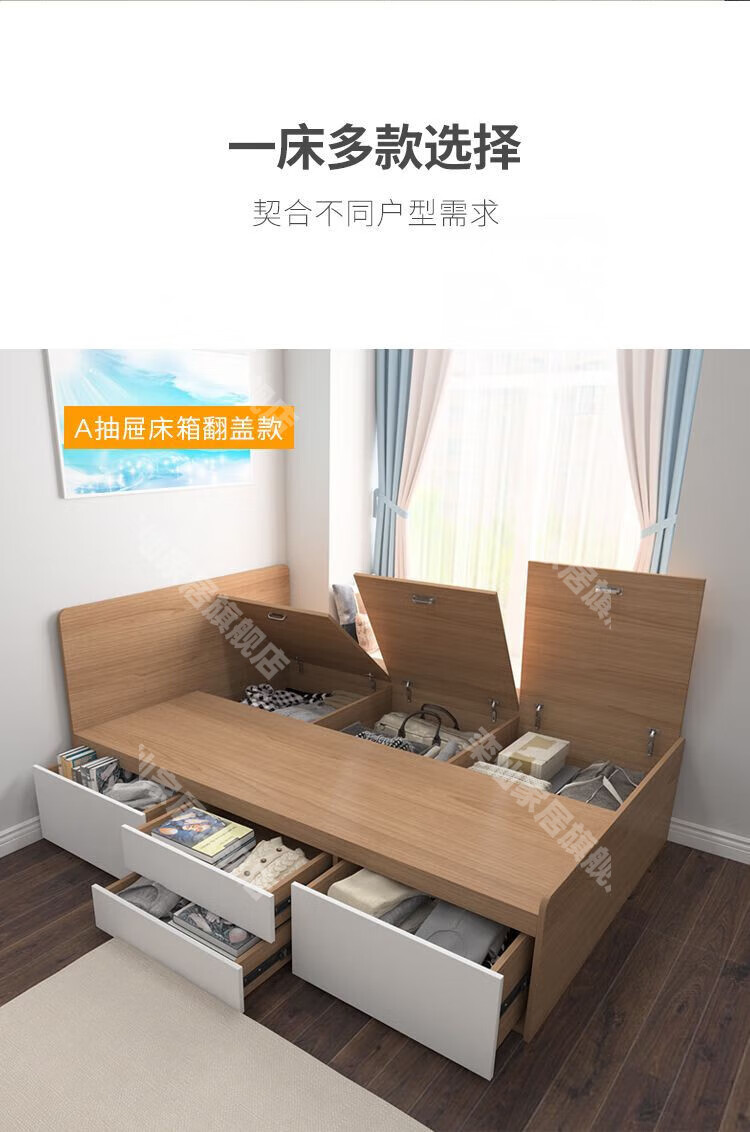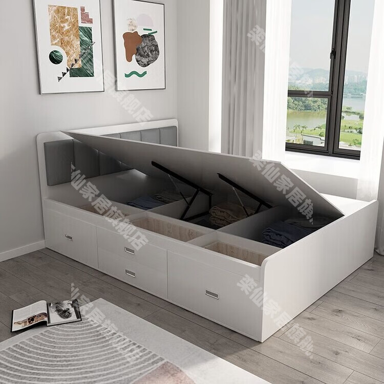 Kongjiang tatami simple small apartment high box air pressure storage bed multi-functional storage bed can be customized single and double drawer bed simple backrest-hydraulic type (color remarks) 1000mm*1900mm box frame structure