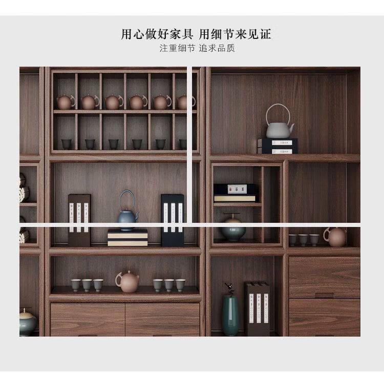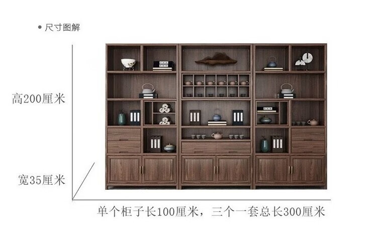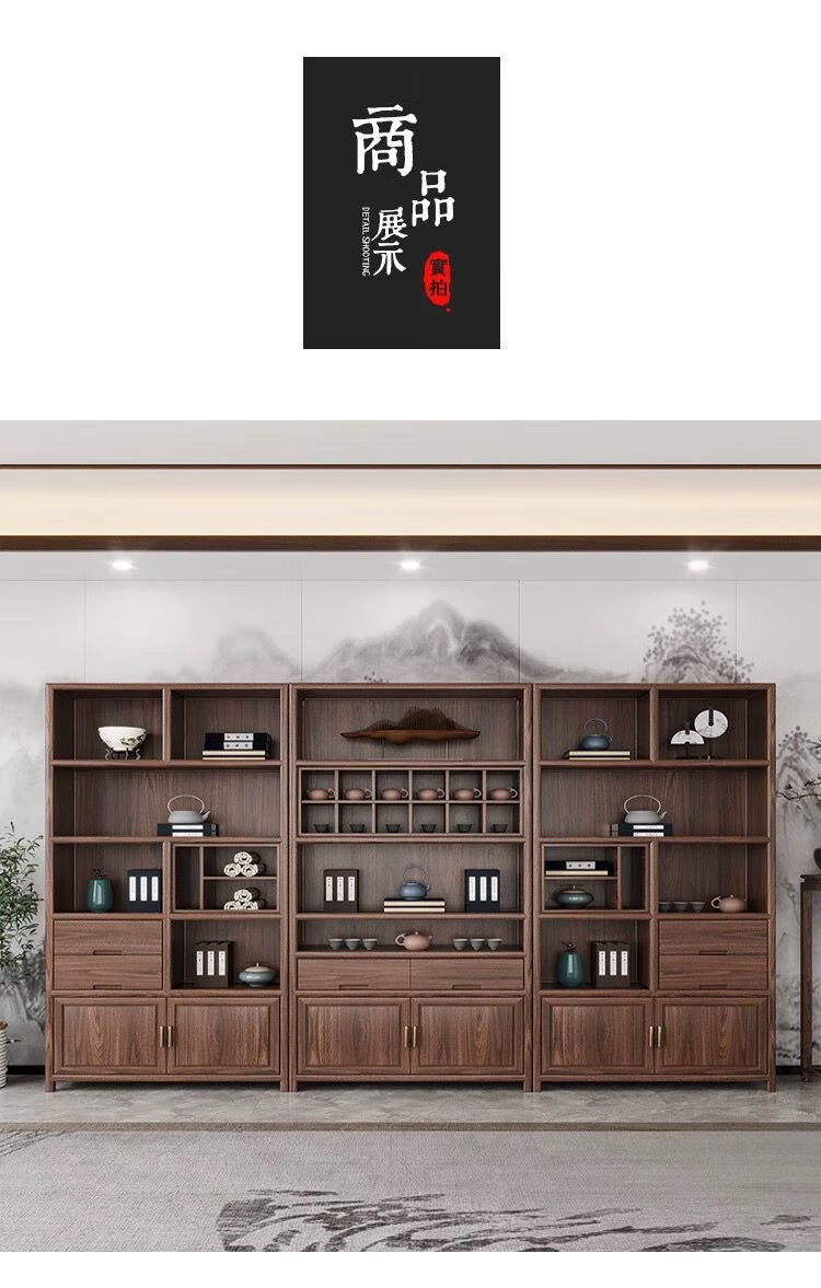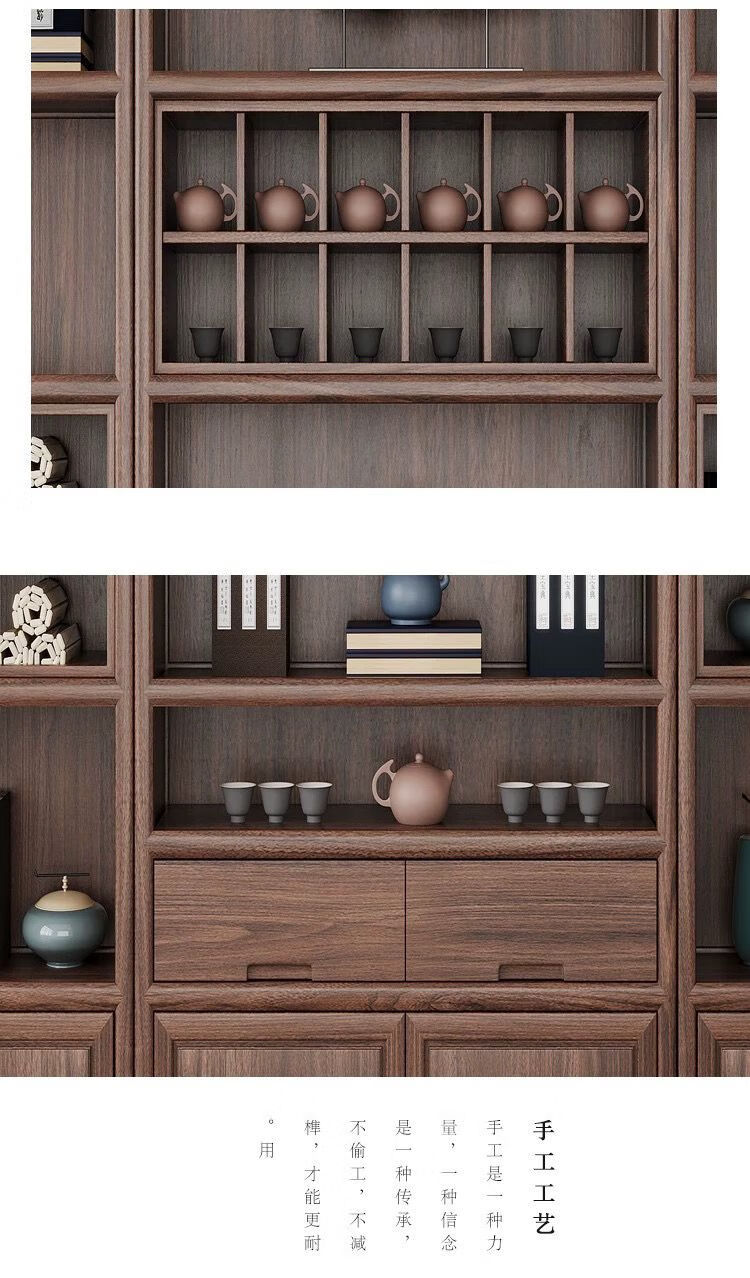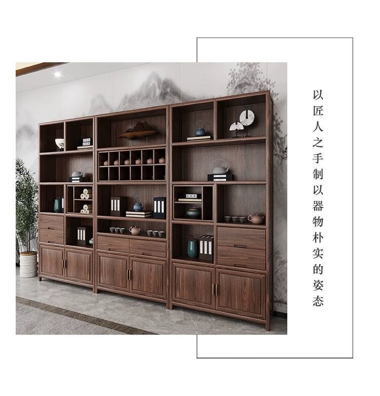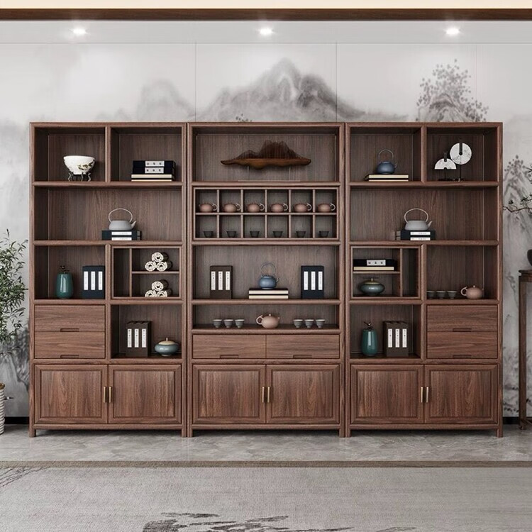 Zhenzhen new Chinese style old elm tea room display cabinet solid wood archaic shelf office cabinet bookcase Duobao Pavilion wine cabinet storage cabinet three-piece set