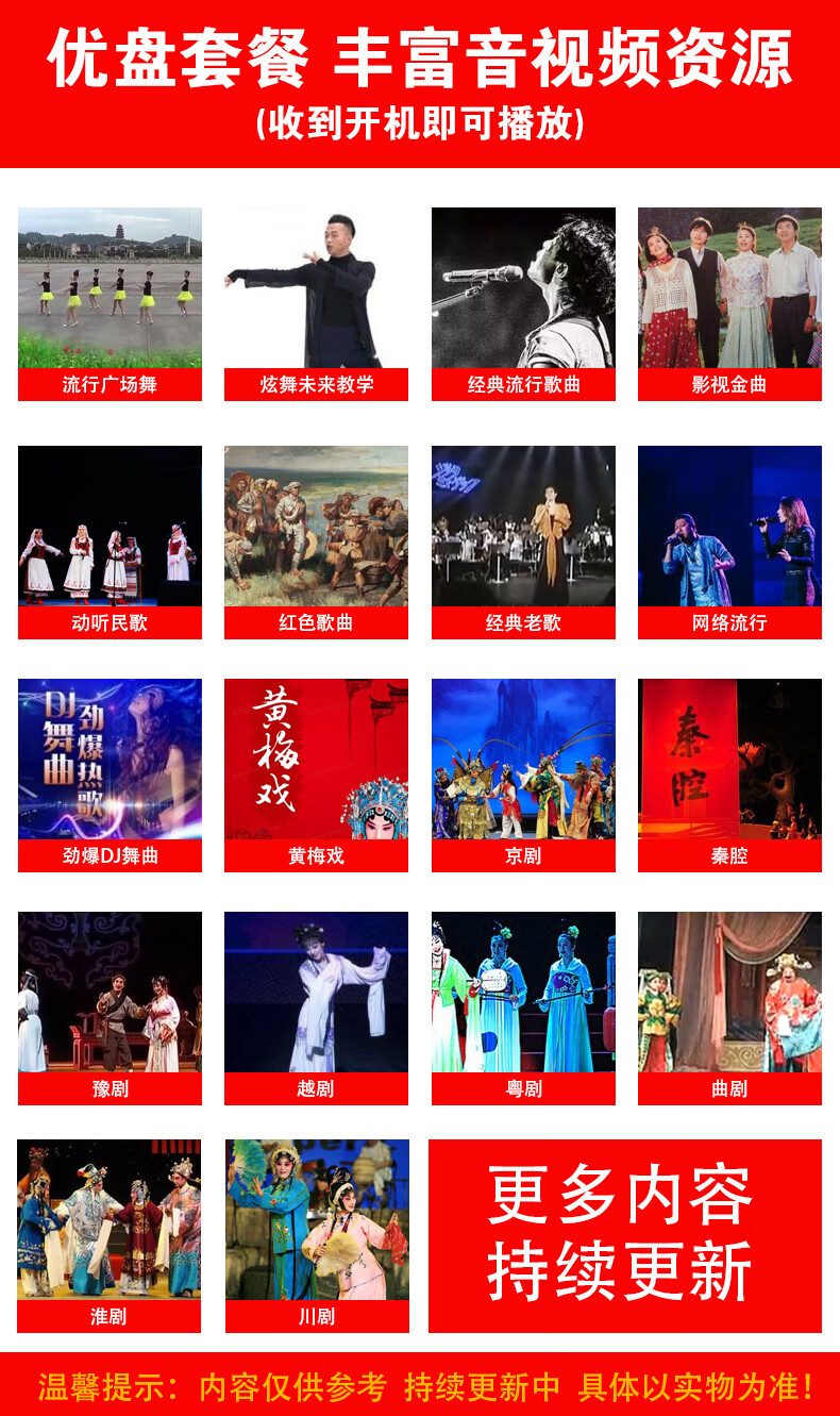 Xianke theater viewing machine WIFI network video square dance player for the elderly HD TV live broadcast smart outdoor portable touch screen opera singing machine 15 high-definition medium screen touch network version standard + 64G audio and video U disk