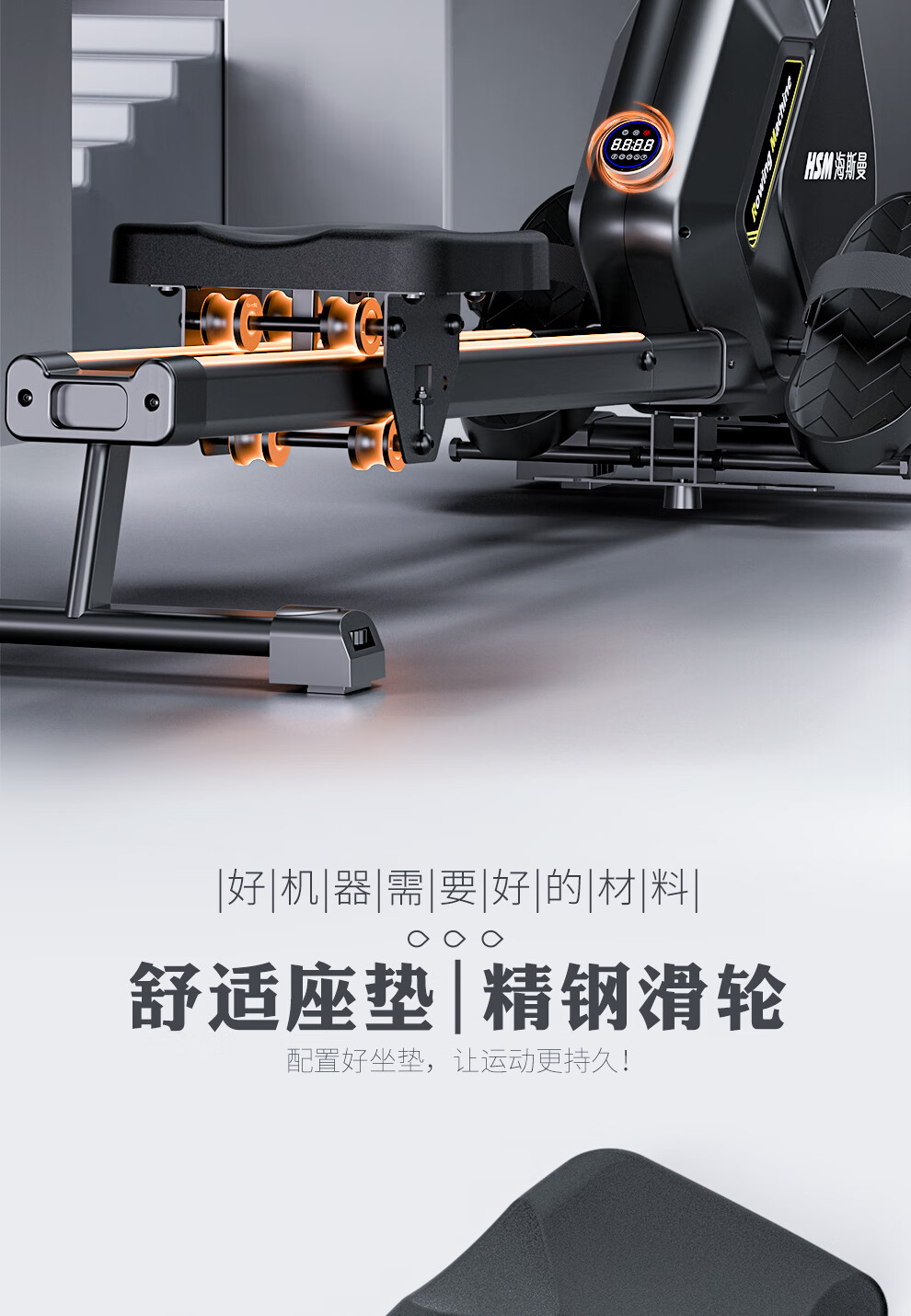 Heisman seated rowing machine T-shaped back trainer household resistance-adjustable magnetically controlled fitness equipment indoor aerobic white intelligent resistance-adjustable/dual slide rail/plug-in version/32 levels of resistance