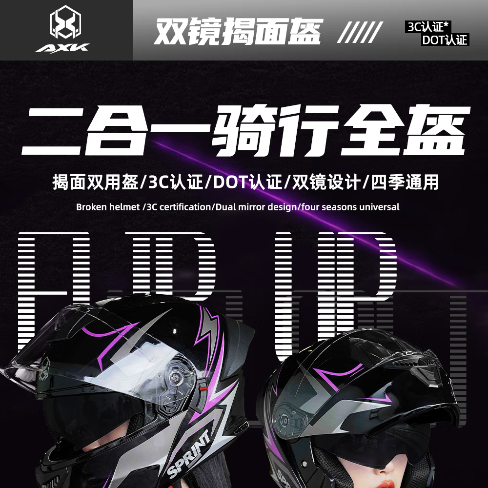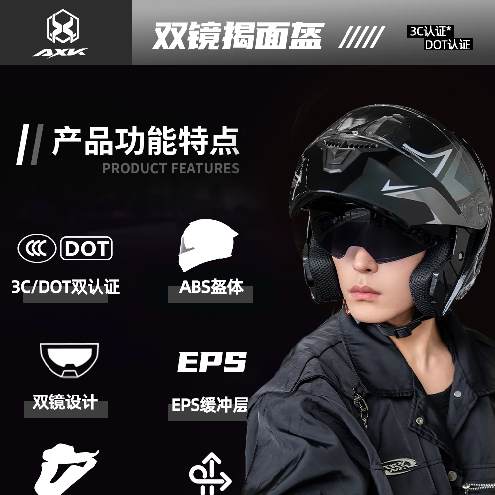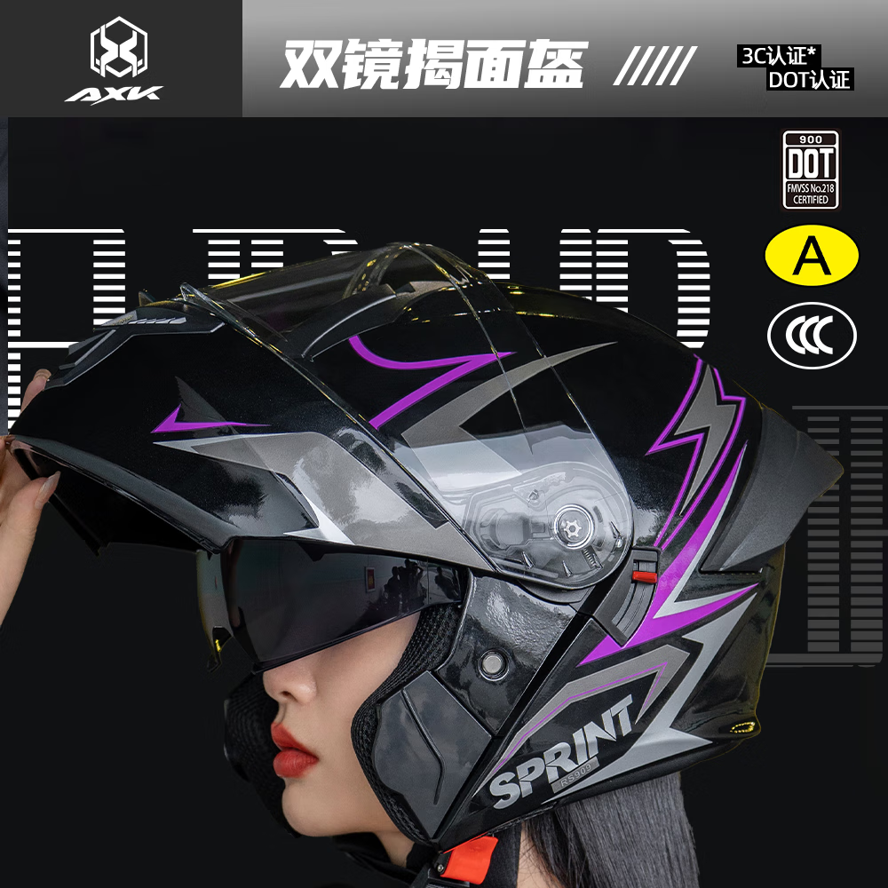 AXK3C certified flip-up motorcycle helmet men's winter warm full-face helmet women's all-season electric vehicle safety helmet flip-up helmet type A white one-size-fits-all