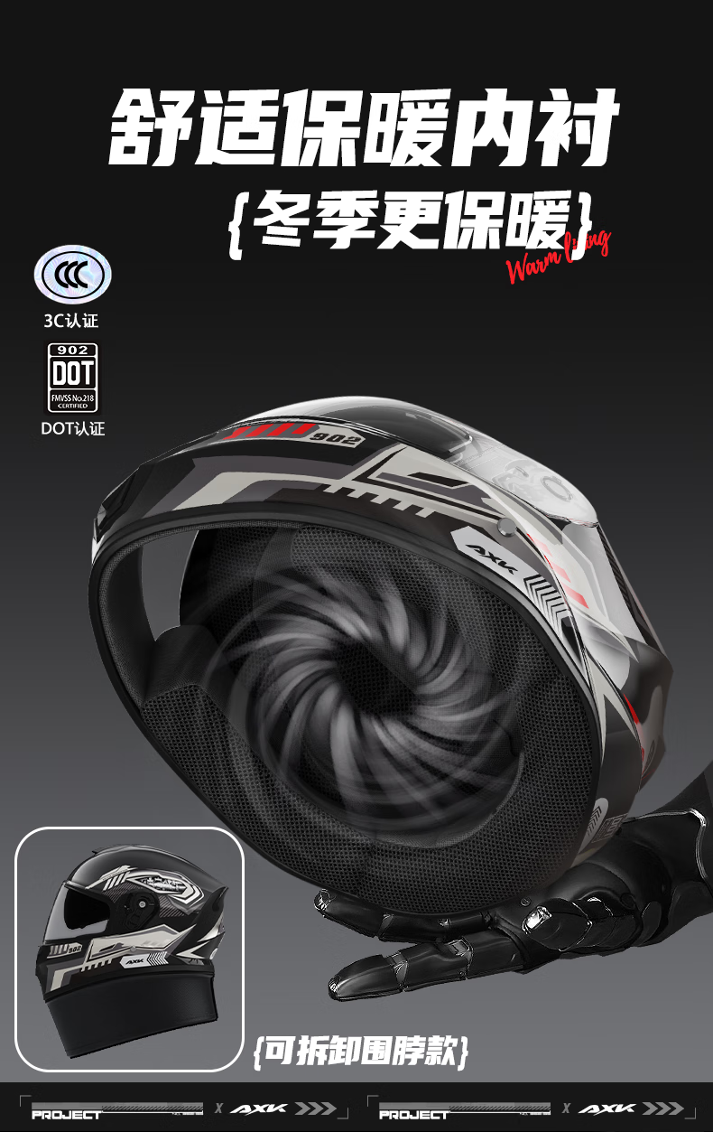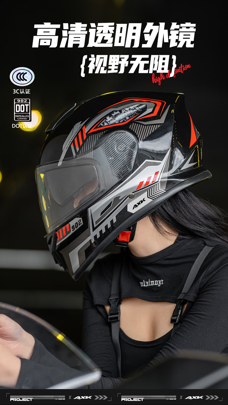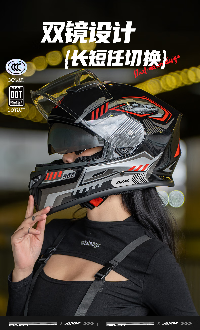 AXK3C/DOT certified motorcycle full-face helmet for men and women to keep warm in winter, electric motorcycle helmet for all seasons, dual-mirror safety helmet, functional black and red - high-definition anti-fog 3C/DOT one-size-fits-all