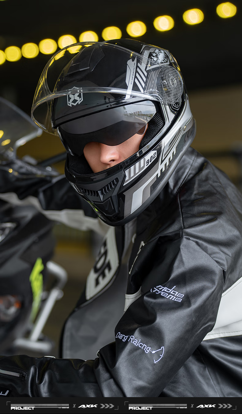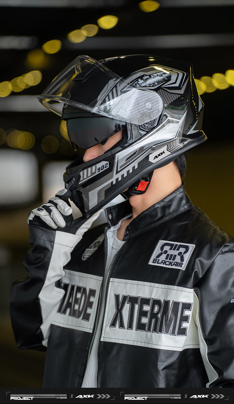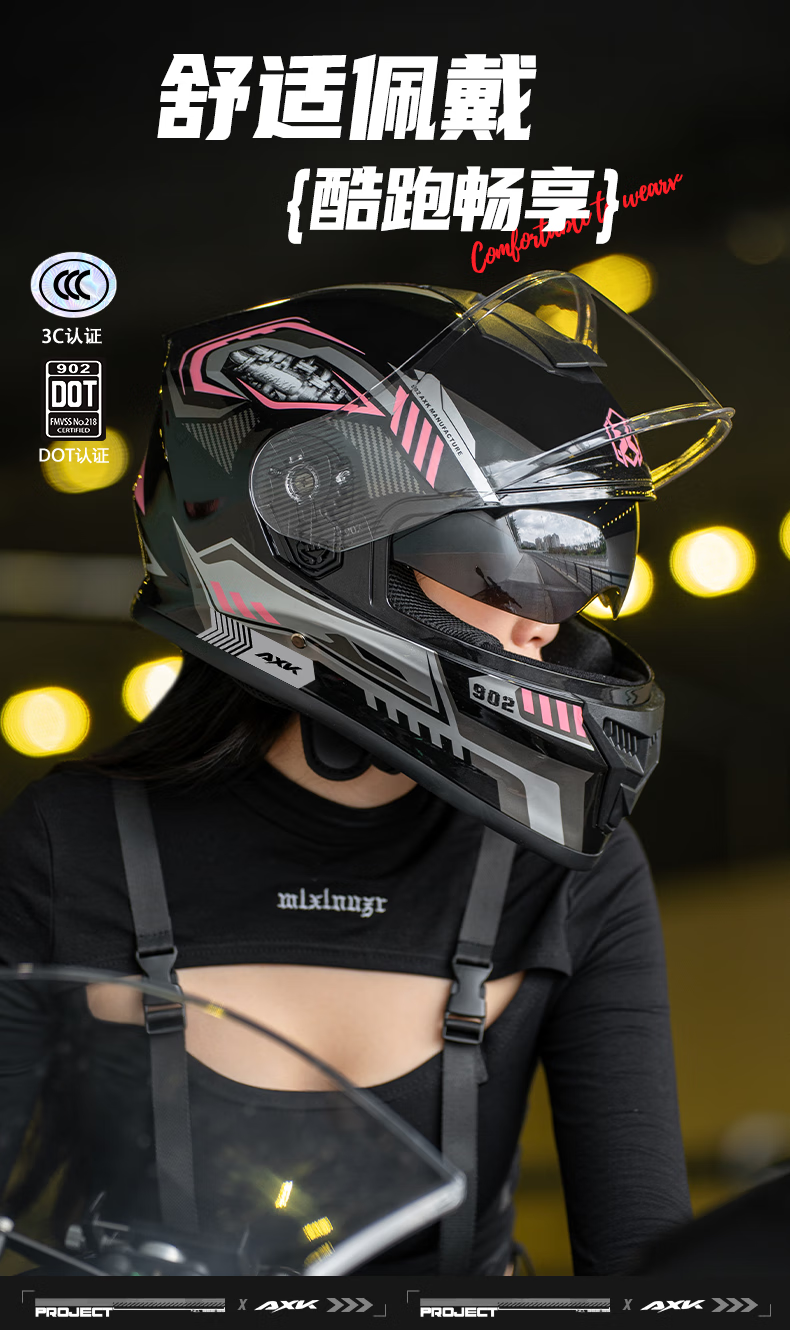 AXK3C/DOT certified motorcycle full-face helmet for men and women to keep warm in winter, electric motorcycle helmet for all seasons, dual-mirror safety helmet, functional black and red - high-definition anti-fog 3C/DOT one-size-fits-all
