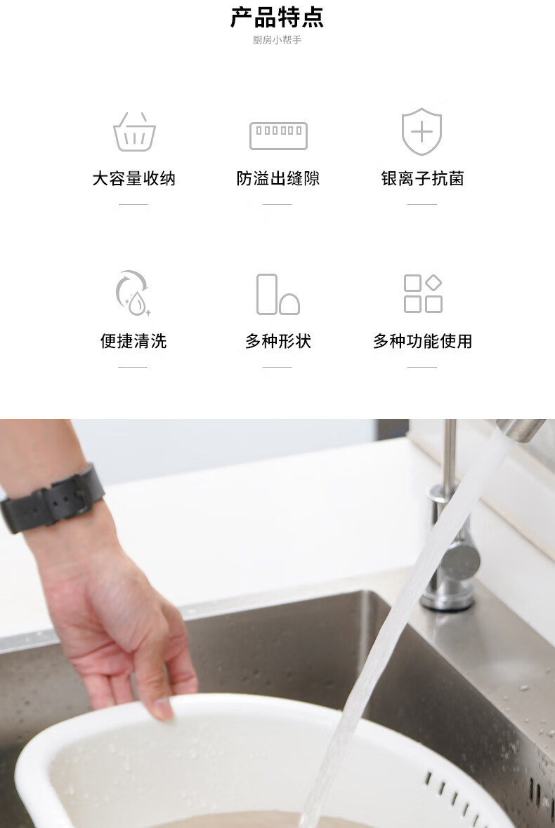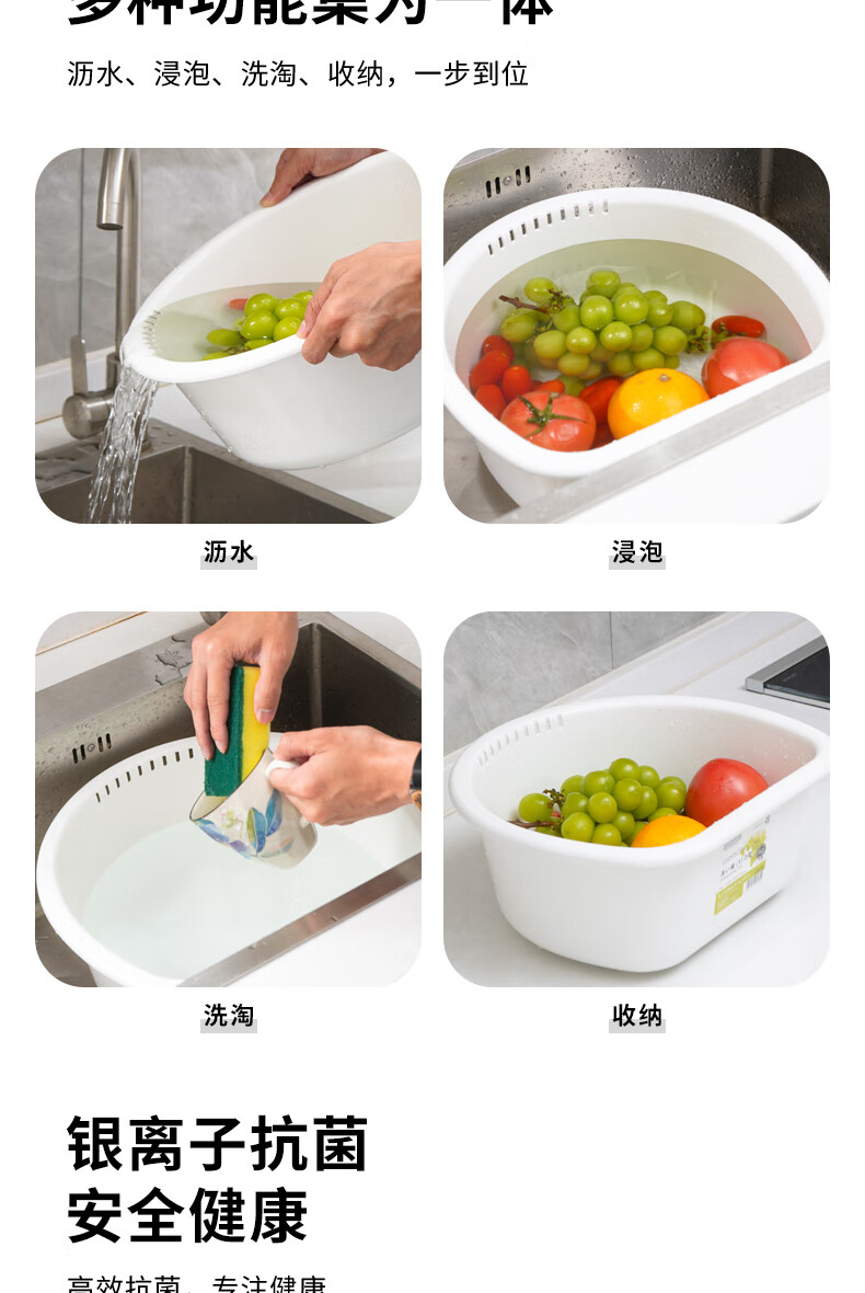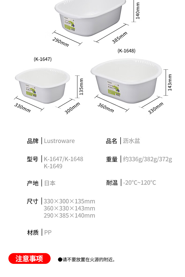 Lustro ware original imported washbasin, vegetable basin, silver ion fruit basin, plastic drain basket, multi-functional vegetable basket, drain basin (made in Japan) K-1649