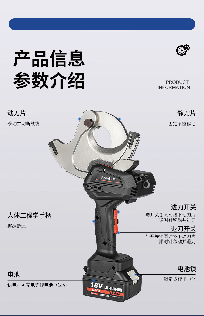 Yihenghengheng electric cable scissors, wire cutters, wire cutters, gear scissors, ratchet scissors, armored cables, copper and aluminum wires, 50M heavy-duty model, cut 50MM inner cables
