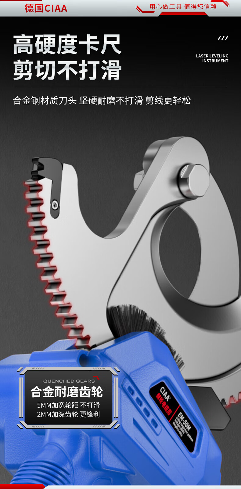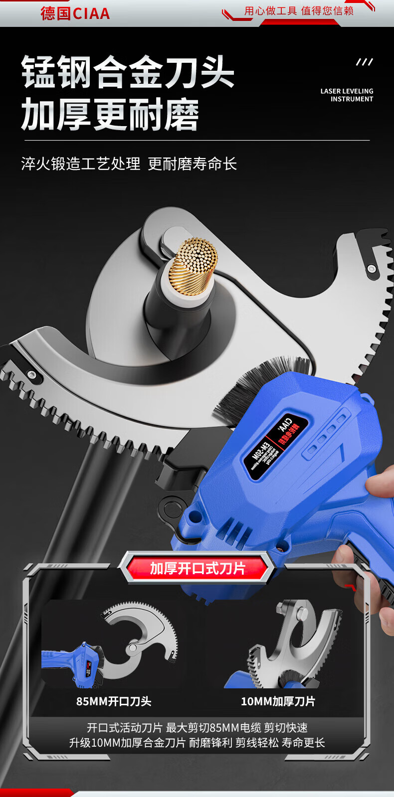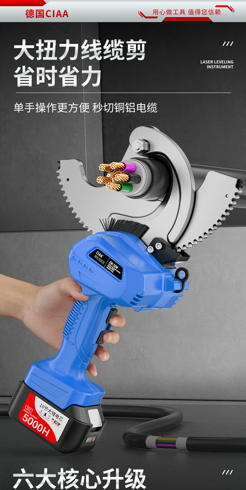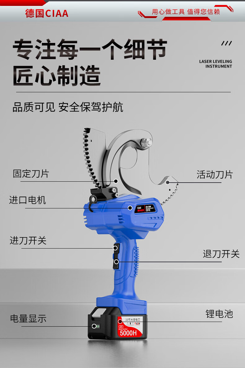 CIAA electric cable scissors, wire cutters, wire cutters, gear scissors, ratchet scissors, armored cables, copper and aluminum wires, 50M heavy-duty model, cut 50MM inner cables, two batteries and one charger, anti-fall plastic box