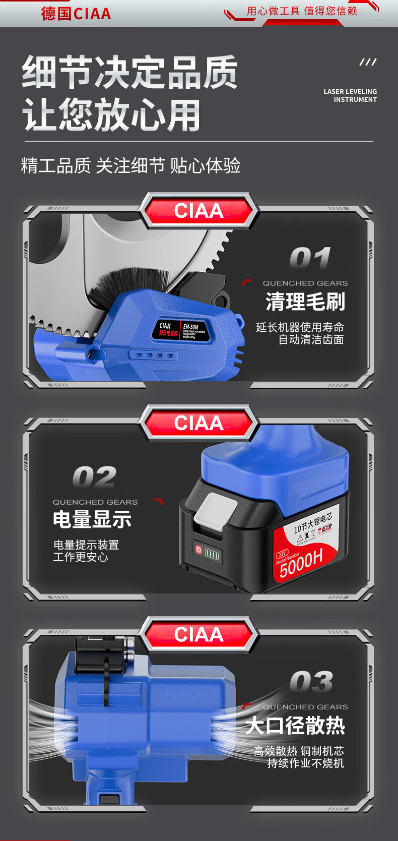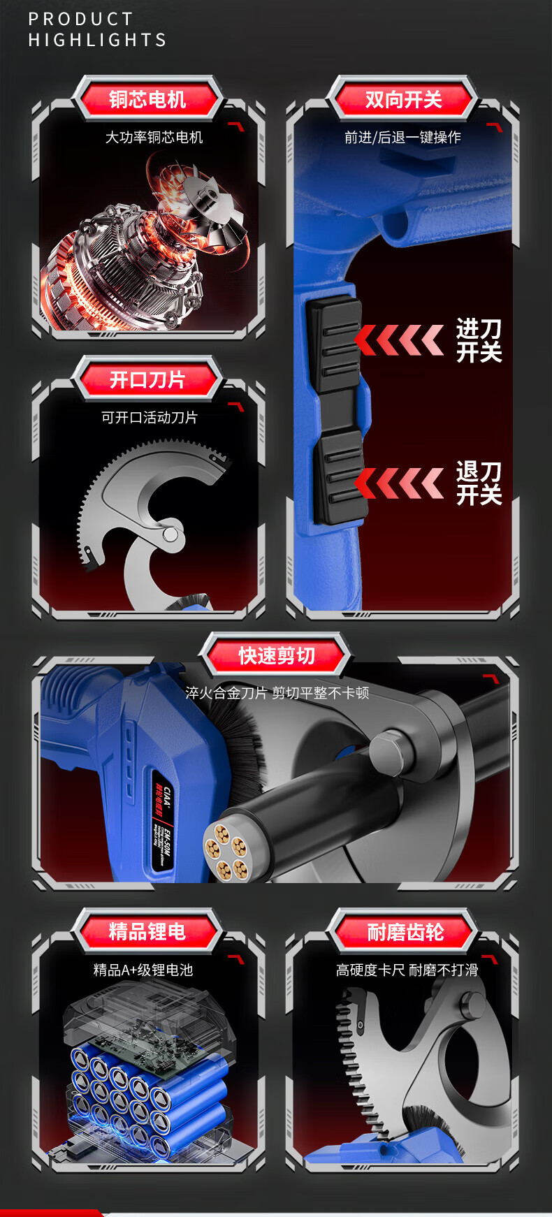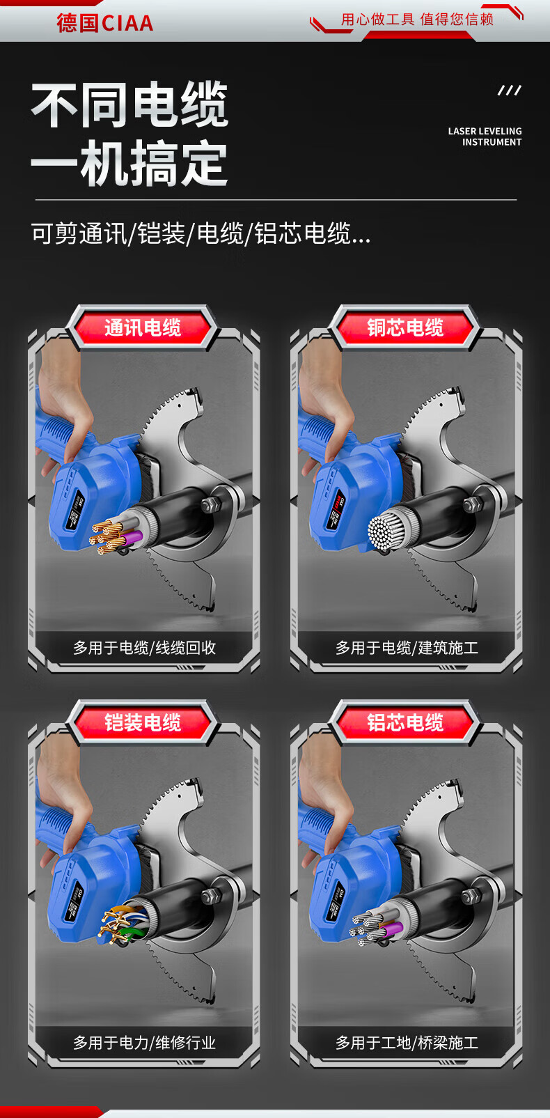 CIAA electric cable scissors, wire cutters, wire cutters, gear scissors, ratchet scissors, armored cables, copper and aluminum wires, 50M heavy-duty model, cut 50MM inner cables, two batteries and one charger, anti-fall plastic box