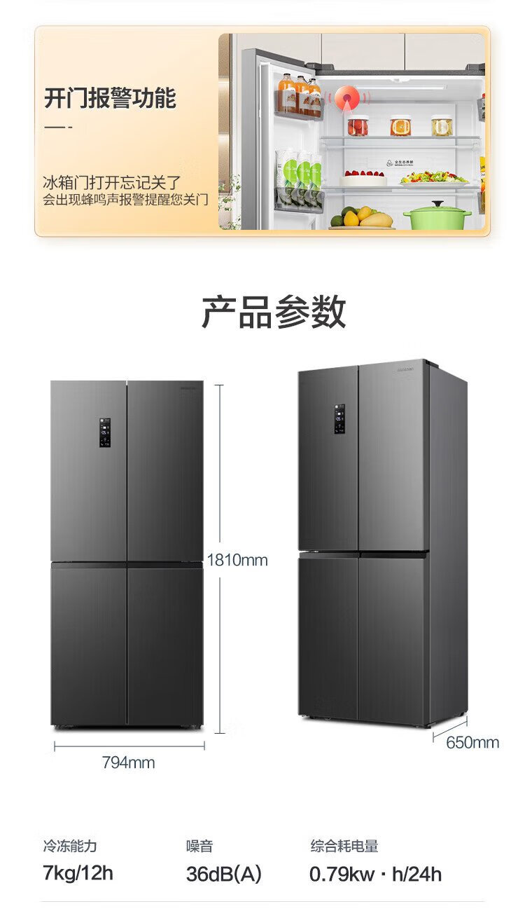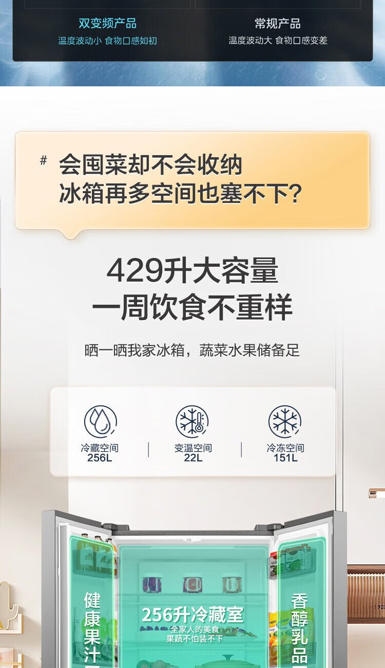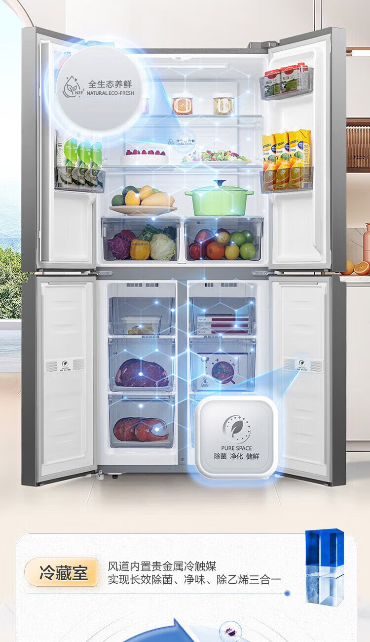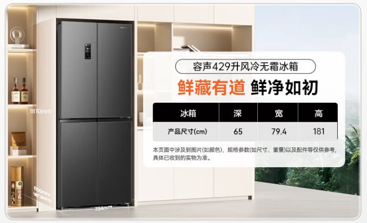 Rongsheng 429-liter double-cycle cross-door four-door household refrigerator first-class energy efficiency dual-frequency air-cooled frost-free energy-saving ultra-thin large capacity trade-in national subsidy air-cooled frost-free double cycle BCD-429WD12FP