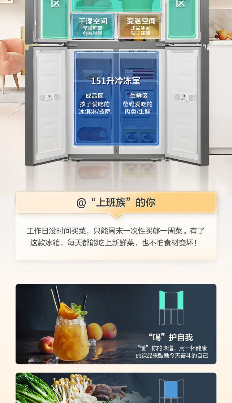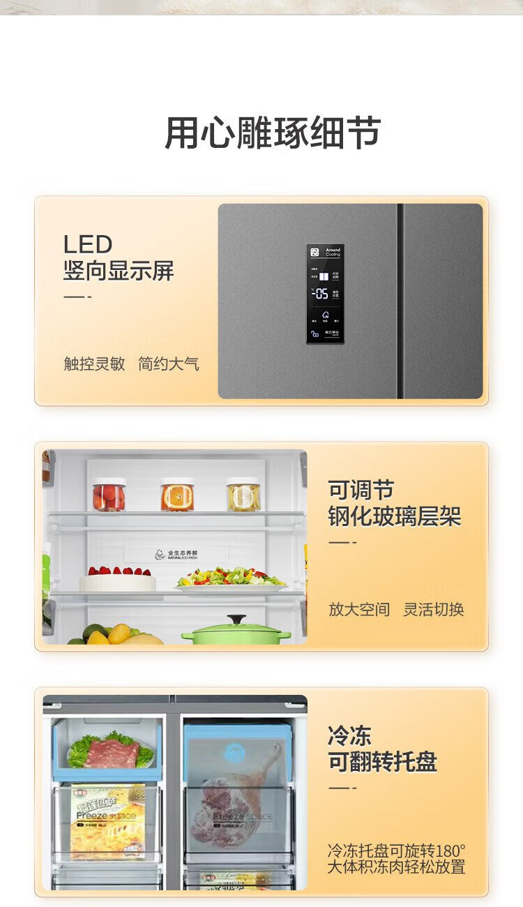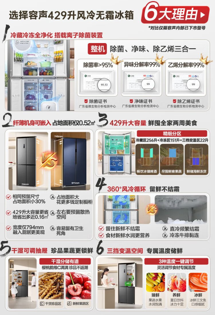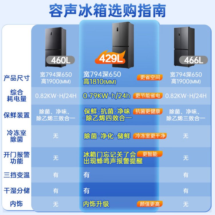 Rongsheng 429-liter double-cycle cross-door four-door household refrigerator first-class energy efficiency dual-frequency air-cooled frost-free energy-saving ultra-thin large capacity trade-in national subsidy air-cooled frost-free double cycle BCD-429WD12FP
