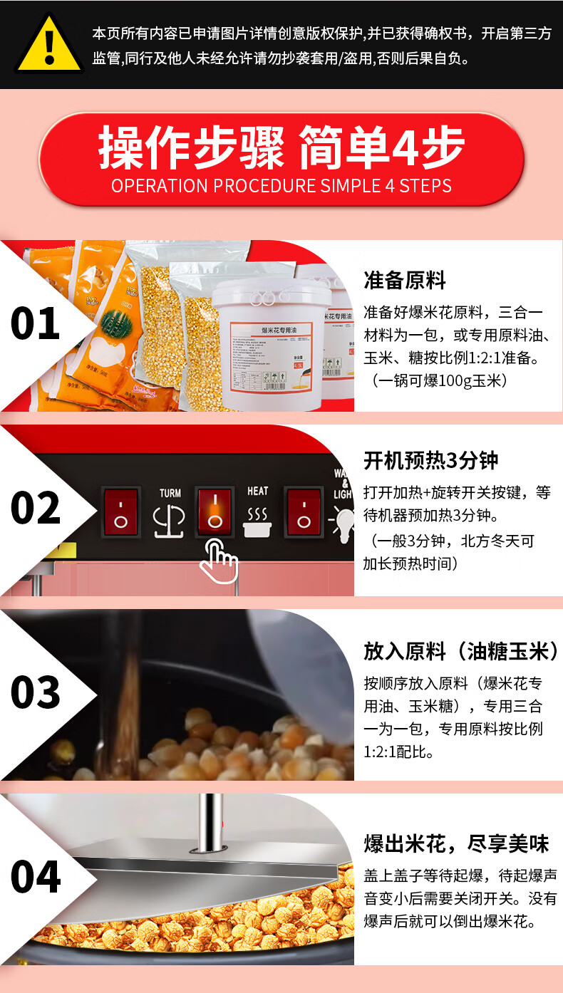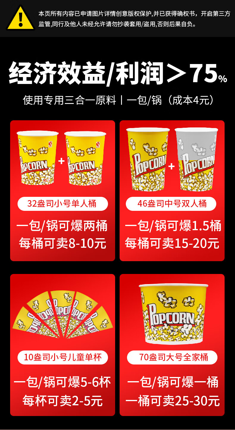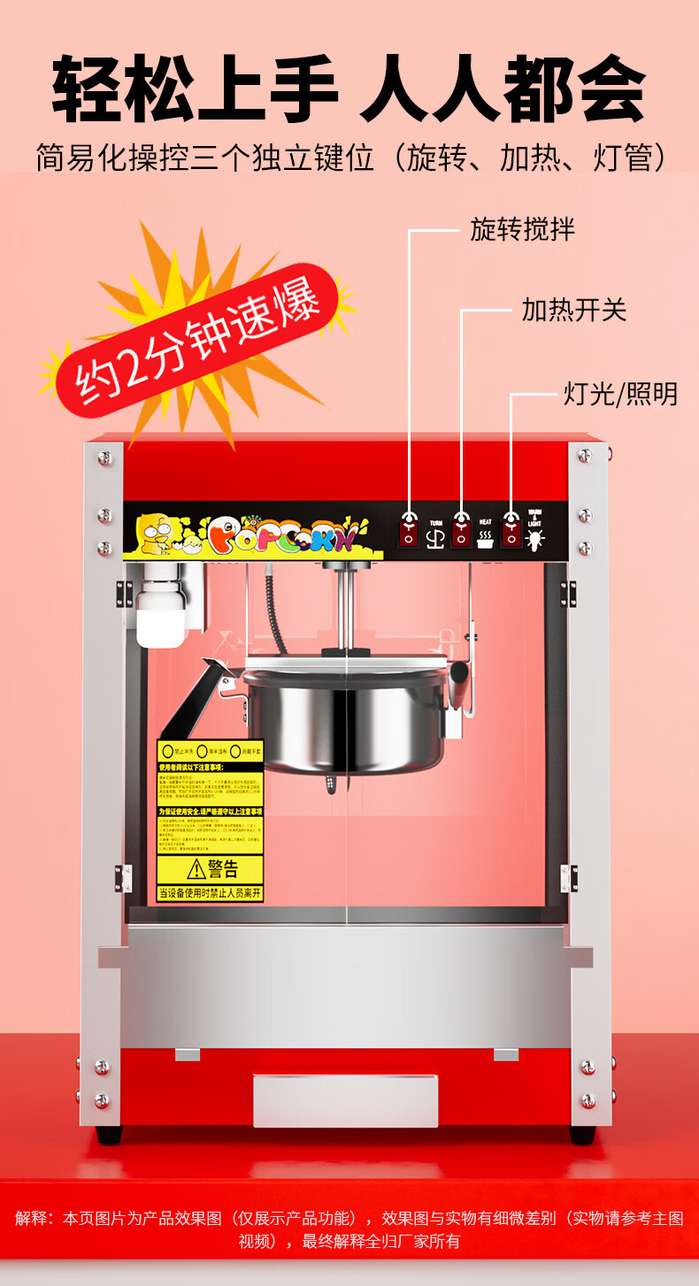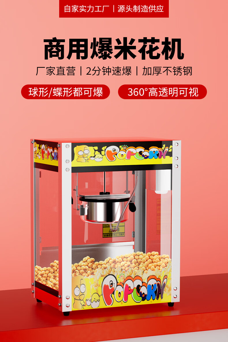 Venus popcorn machine for commercial stalls, new fully automatic small corn kernel waterfall rice popcorn machine, popcorn machine pot, special non-stick cinema Internet celebrity activity belt with insulation, butterfly shape 40 packs of three-in-one raw materials