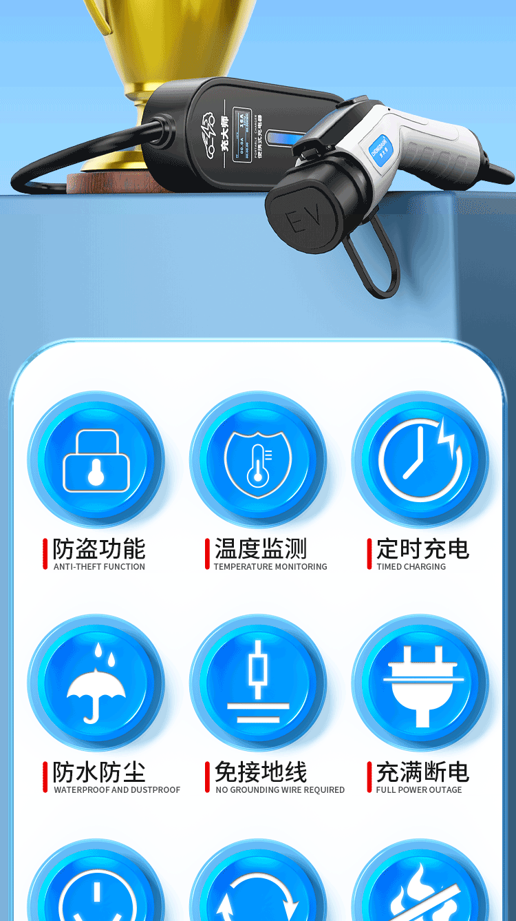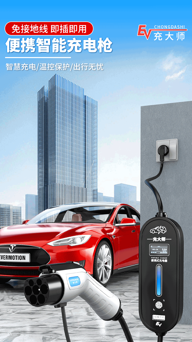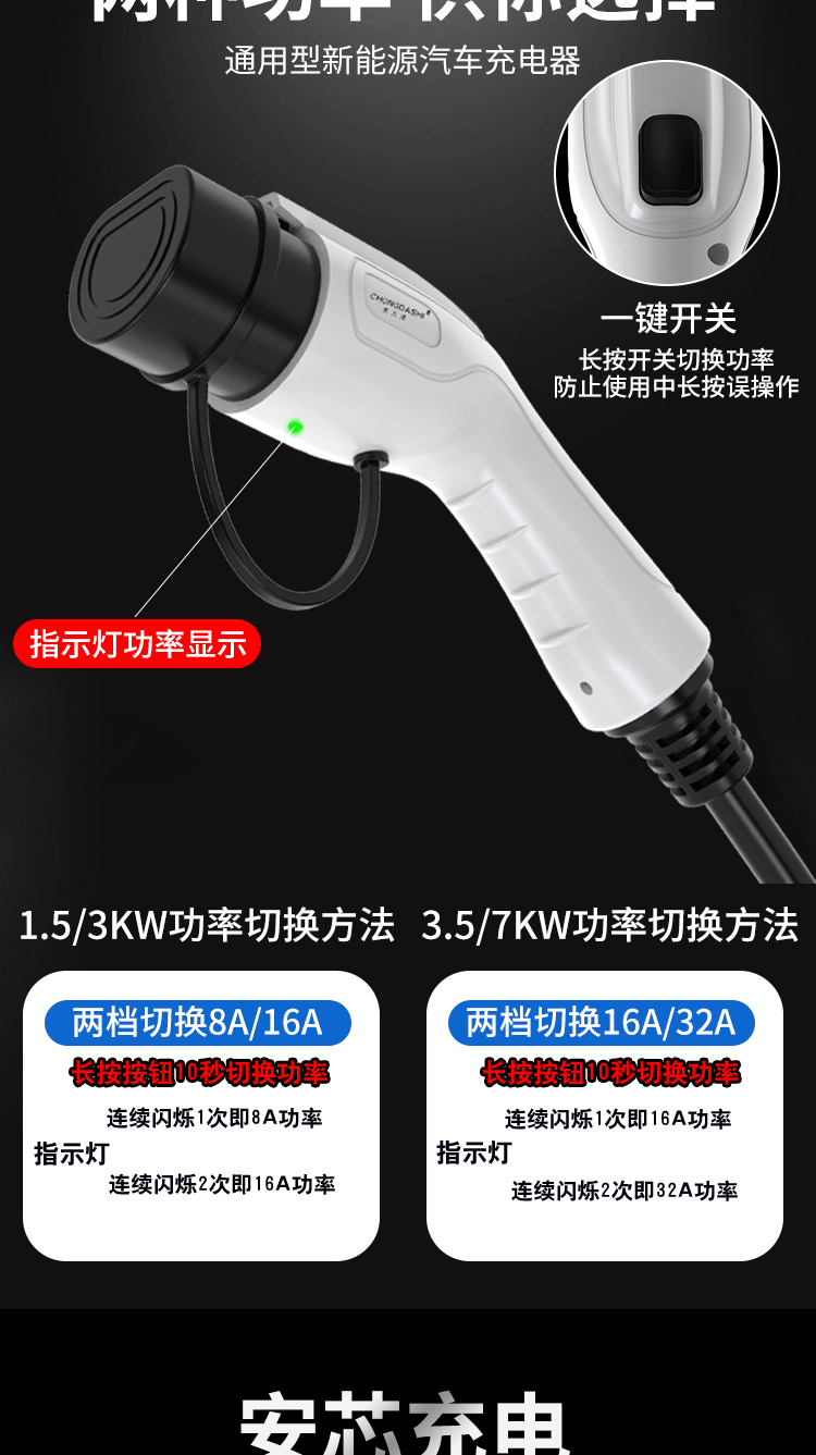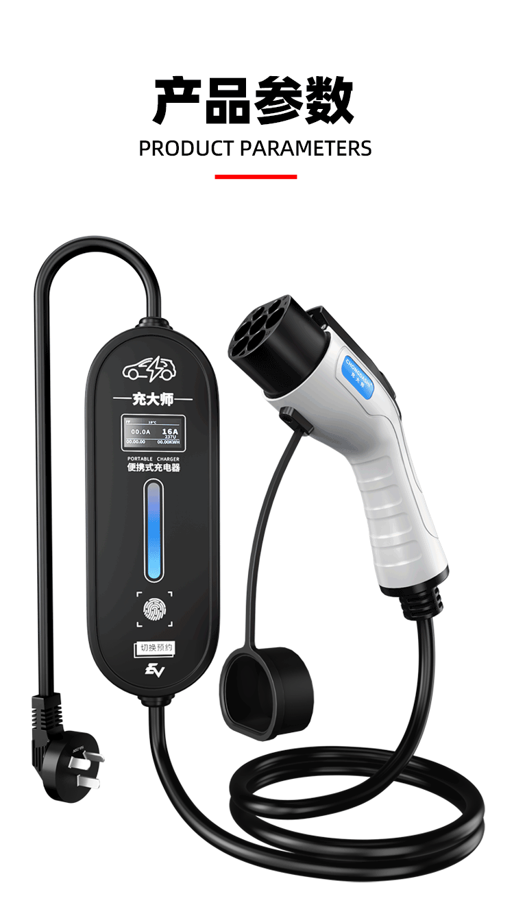 Bull's same style new energy electric vehicle charging gun home charging cable 16A7KW portable charging pile for car charging Bull-8A-16A (portable) Bull-3 meters (pressure-resistant, wear-resistant and anti-freeze cable)