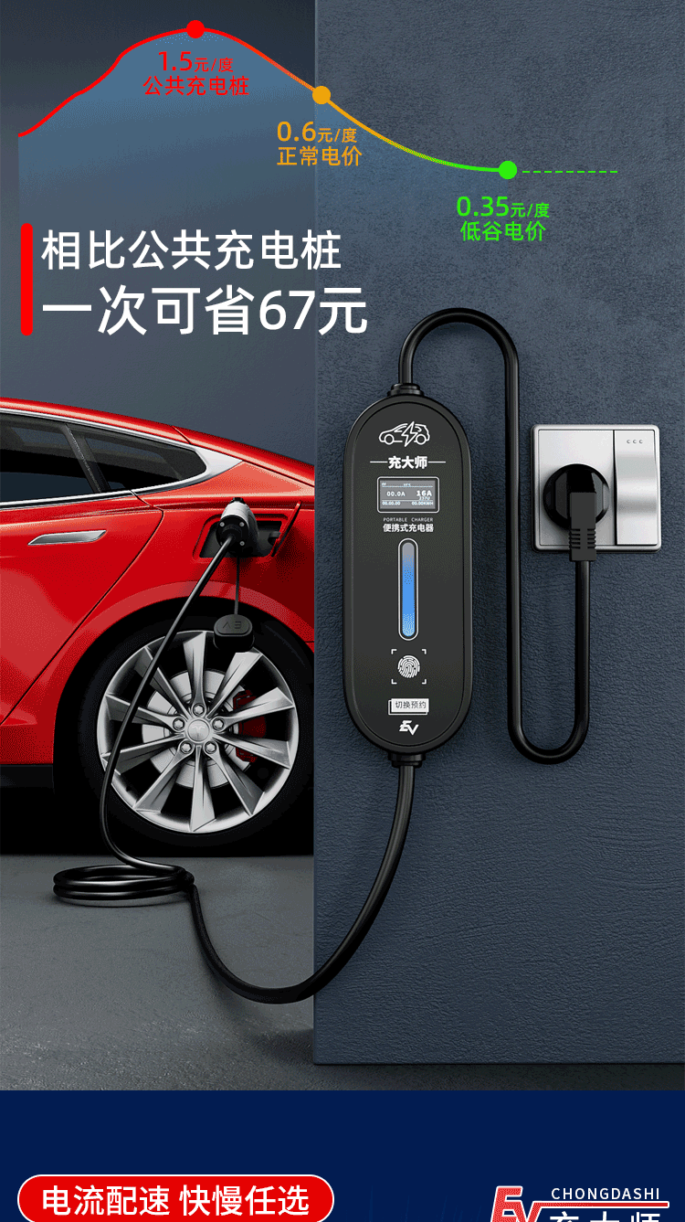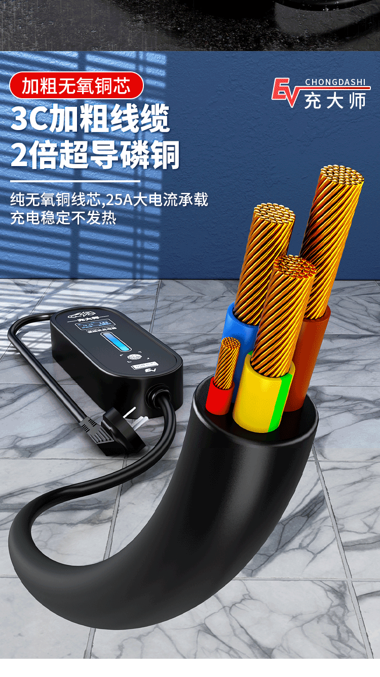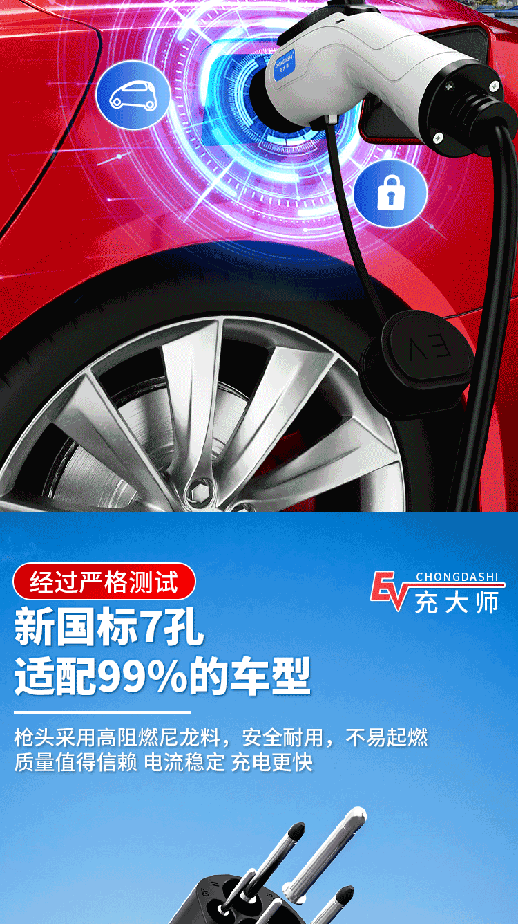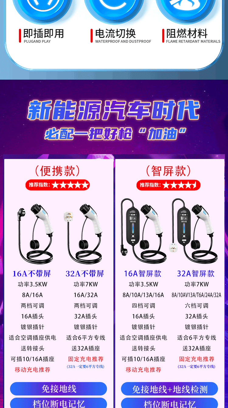 Bull's same style new energy electric vehicle charging gun home charging cable 16A7KW portable charging pile for car charging Bull-8A-16A (portable) Bull-3 meters (pressure-resistant, wear-resistant and anti-freeze cable)