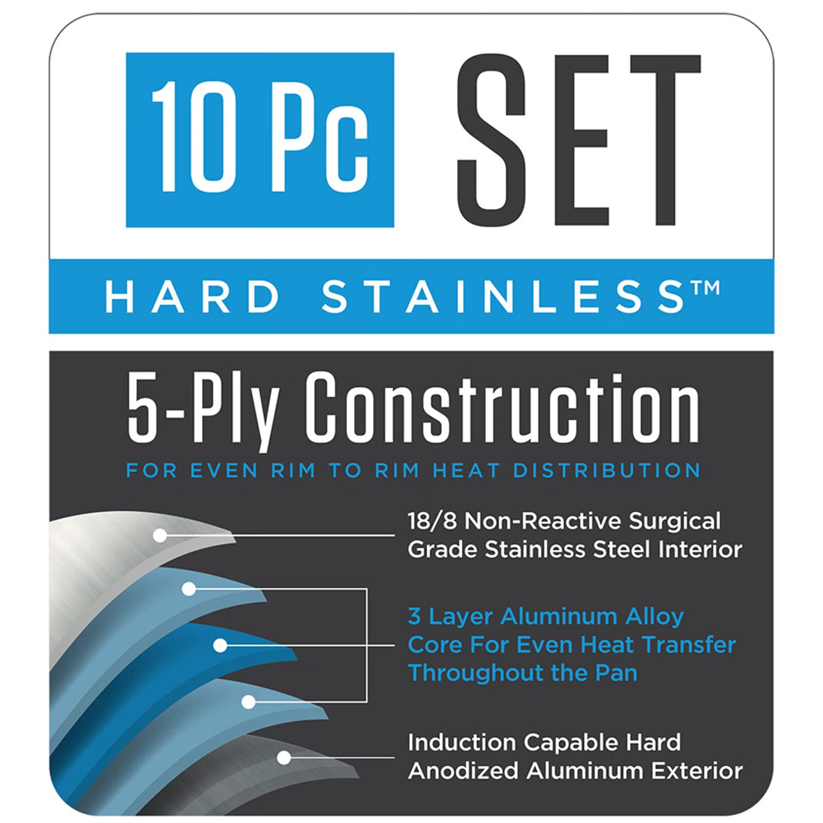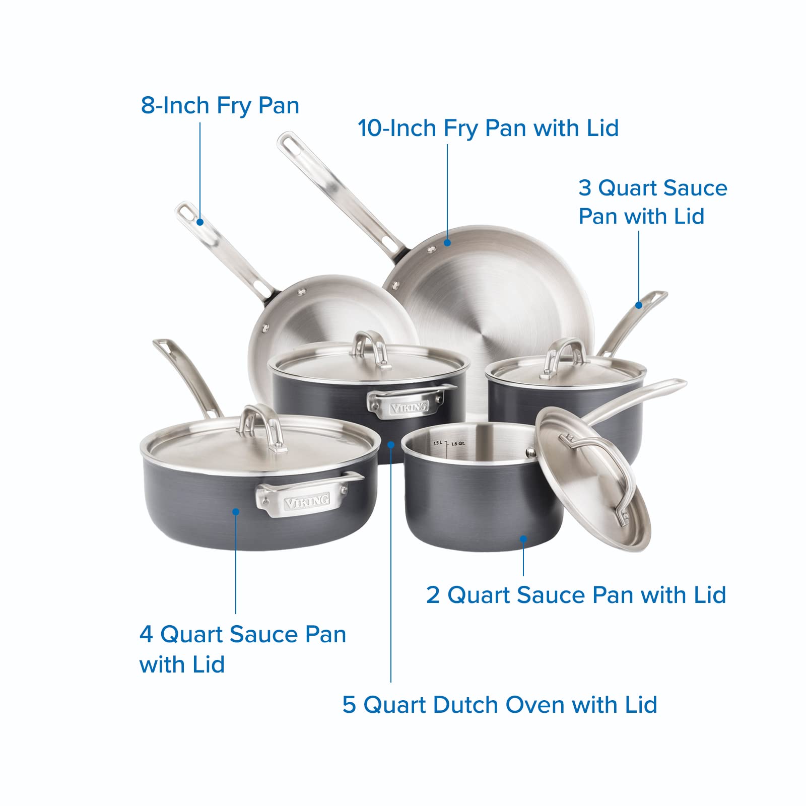 Viking 10-piece set of five-layer stainless steel cookware, universal induction cooker, professional kitchen cooking set