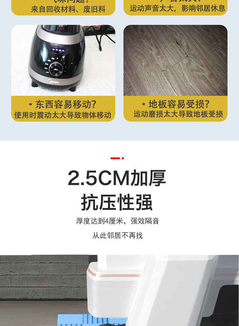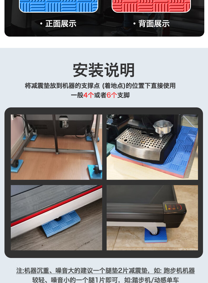 Seagreen treadmill shock-absorbing pad, soundproof floor mat, household thickened cushioning shock-proof pad, elliptical machine, exercise bike fitness floor mat, 6 pieces, random color, 13*13cm, thick 4.0CM