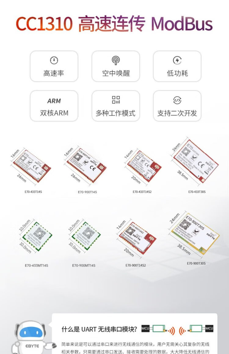 Ebyte CC1310/CC1101 wireless module 433M dual-core transceiver ARM controller RFID supports Modbus equipped with FPC antenna E70-433T14S