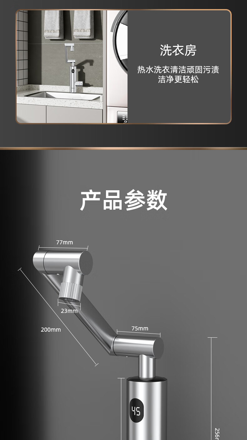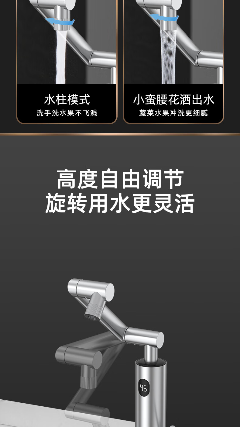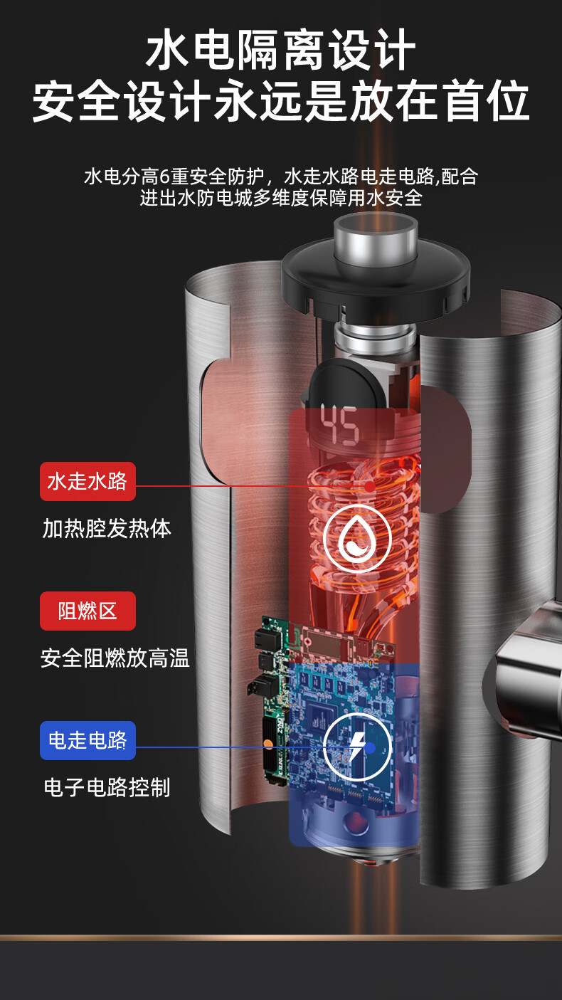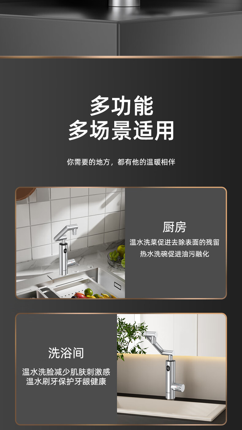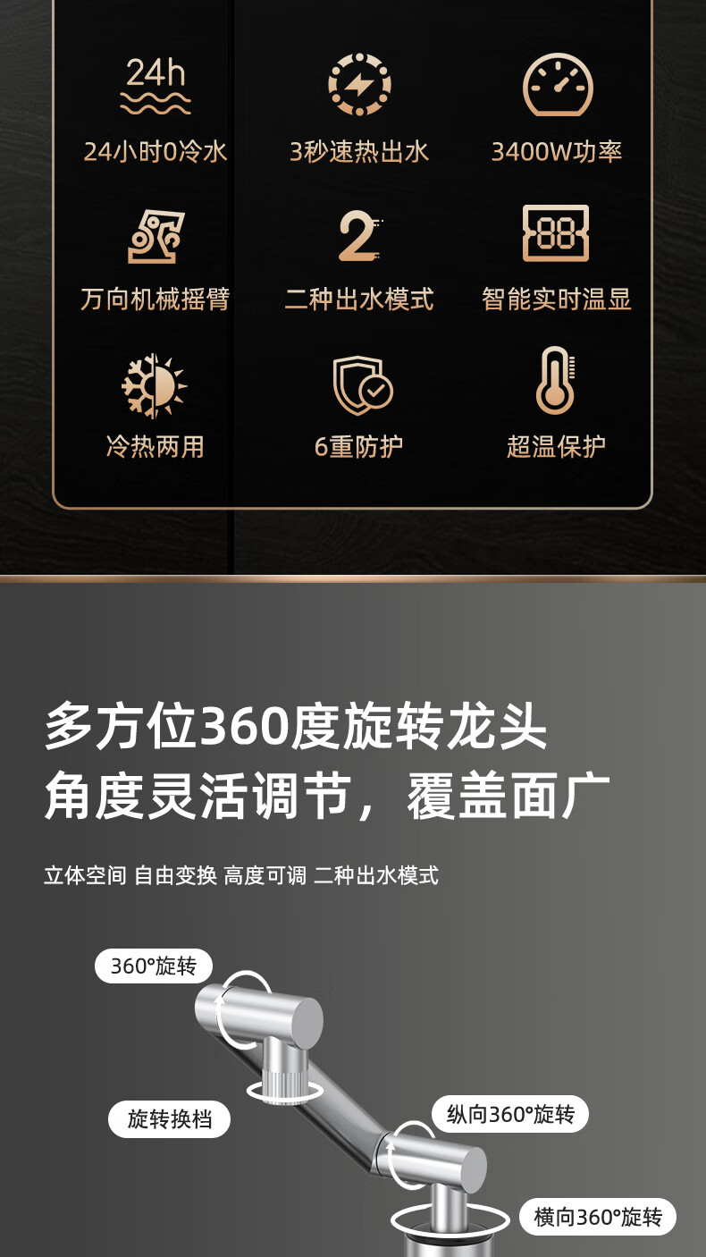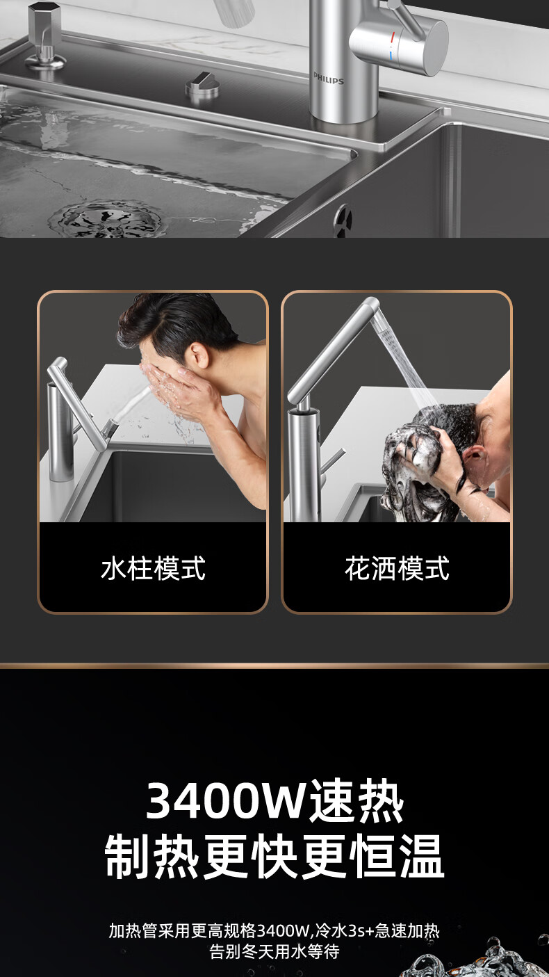 Philips instant electric hot water faucet mechanical arm fast heating frequency conversion constant temperature stainless steel hot and cold kitchen bathroom household screen display electric water heater small kitchen treasure bag installation 2105 stainless steel body mechanical arm