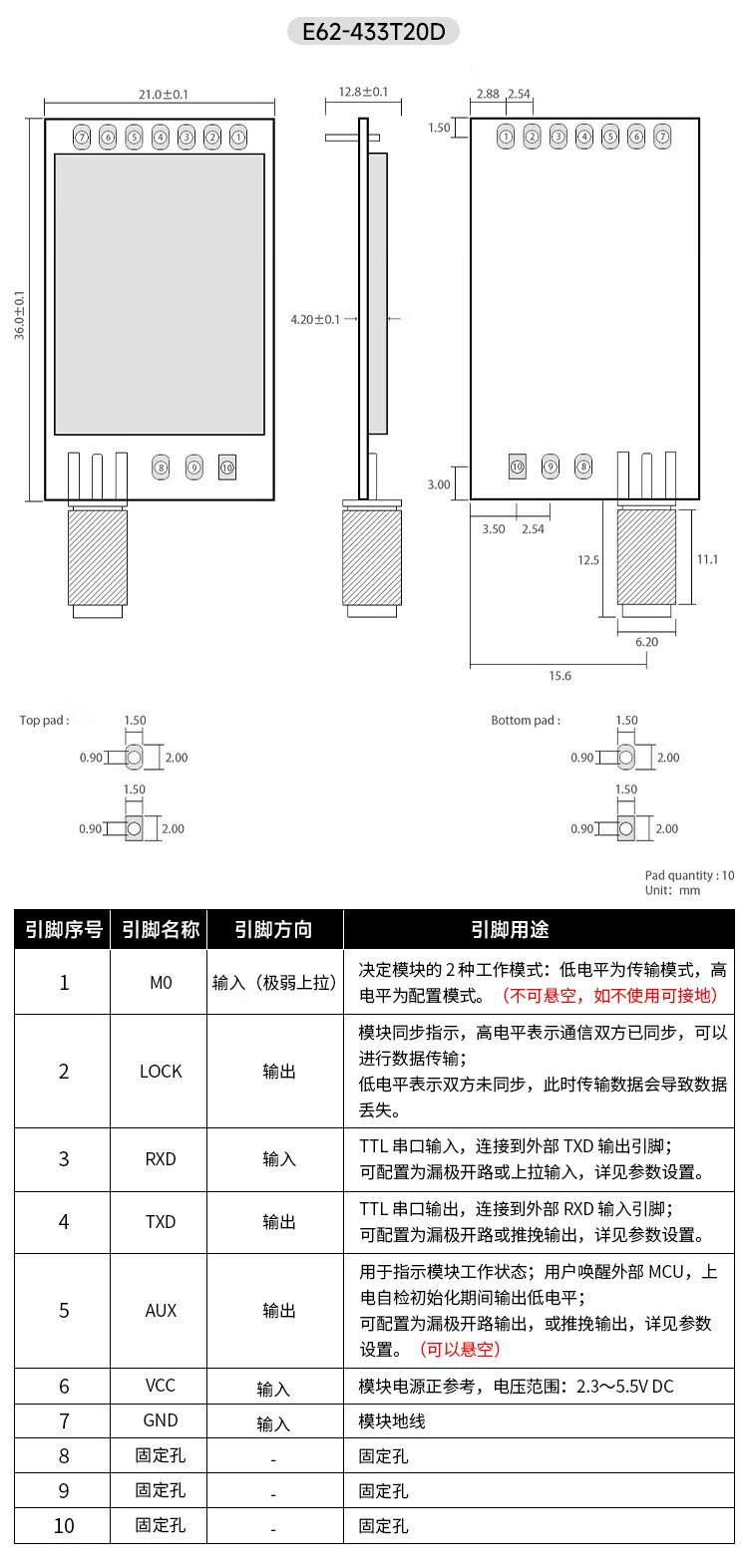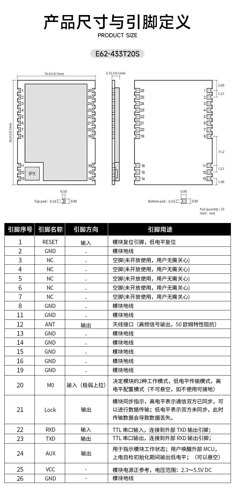 Ebyte high-speed flight control 433M wireless transceiver transmission module UAV automatic frequency hopping spread spectrum SI4463 full-duplex equipped with glue stick antenna E62-433T30D