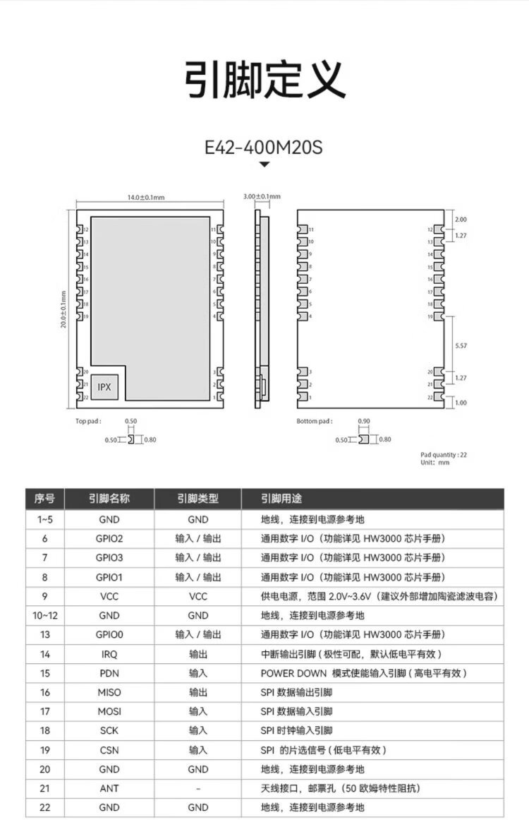 Ebyte 433/470M wireless transceiver module HW3000 low power consumption GFSK communication transmission equipped with FPC antenna E42-400M20S