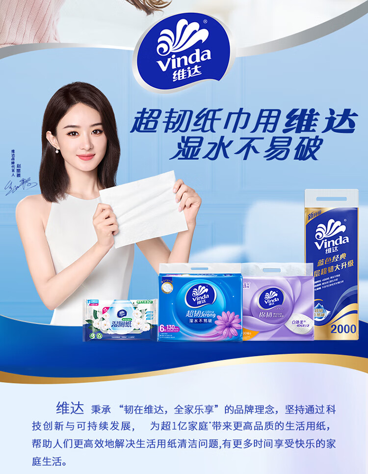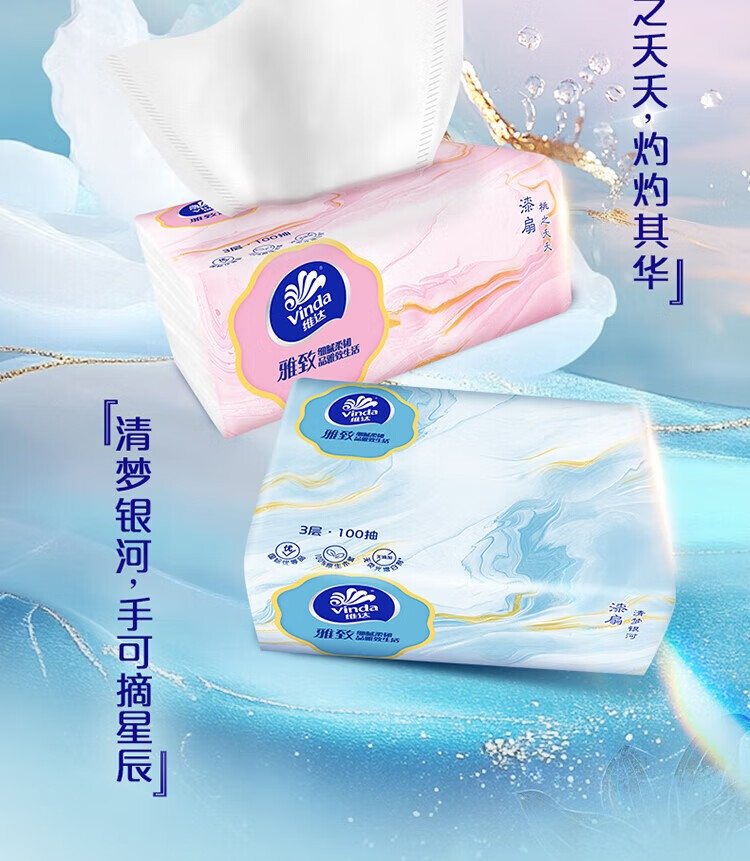 Vinda paper towels 3 layers thickened 300 sheets soft tissue napkins paper towels household toilet paper 3 layers 300 sheets*8 pack same style in supermarkets