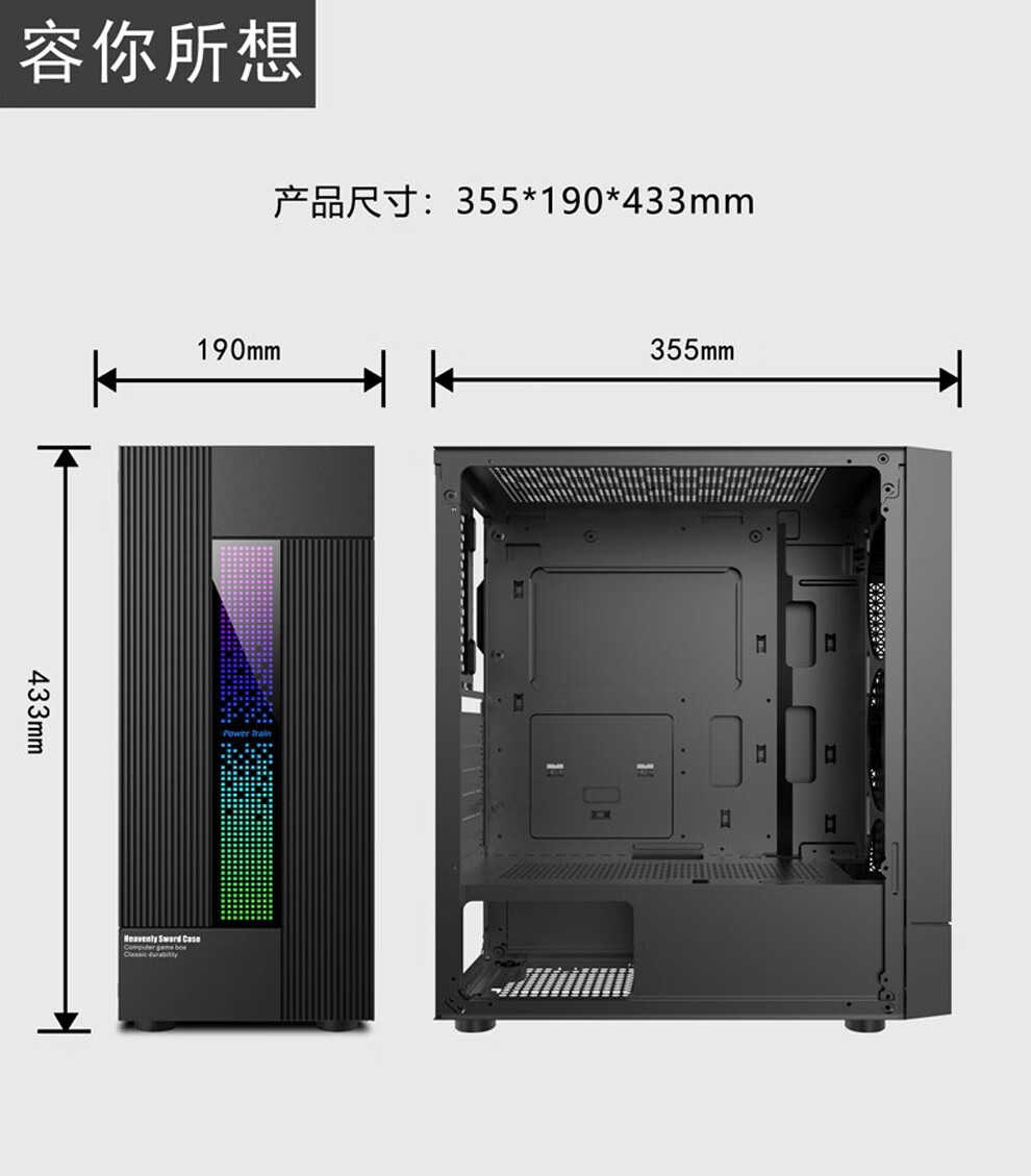 PowerTrain Thunder Chassis ATX Chassis Desktop Chassis Huntkey GS450C Mid-Tower ATX Side Transparent Chassis Tempered Glass Side Transparent White Mini M-ATX Empty Chassis