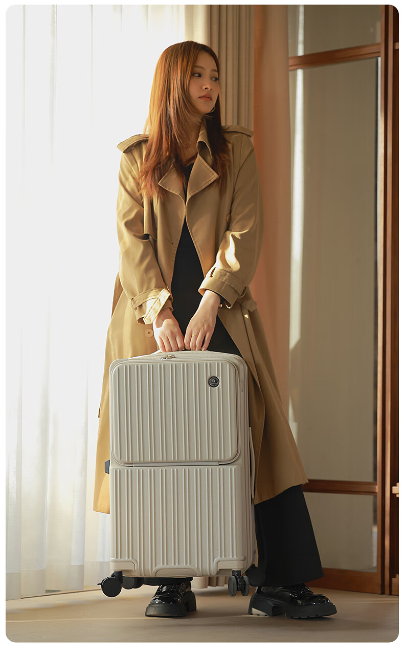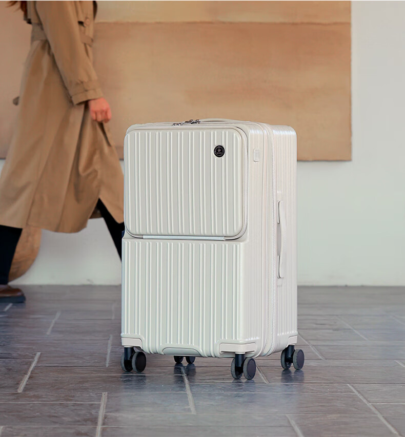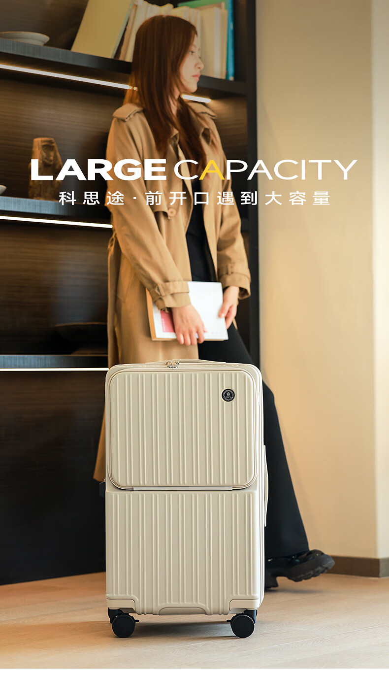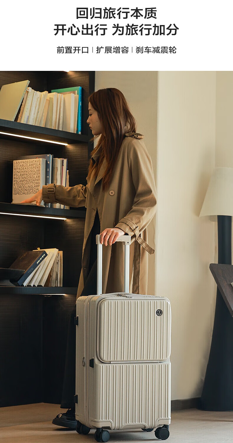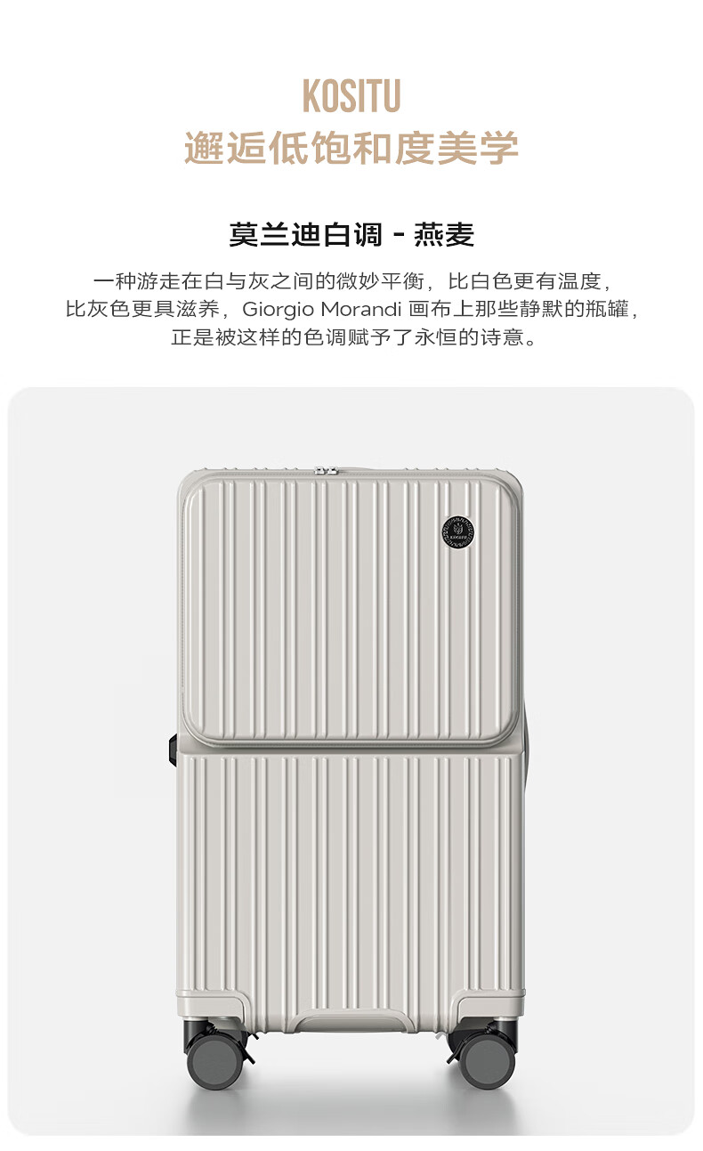 KOSITU Germany's new front-opening expandable suitcase for women, large capacity 24-inch 20-inch carry-on suitcase, sturdy trolley suitcase for men, oatmeal gray, expanded capacity, new color on the market, better looking than white and stain-resistant, 20-inch carry-on suitcase (three sides meet 115, can be boarded + can be placed on aircraft high-speed rail racks)