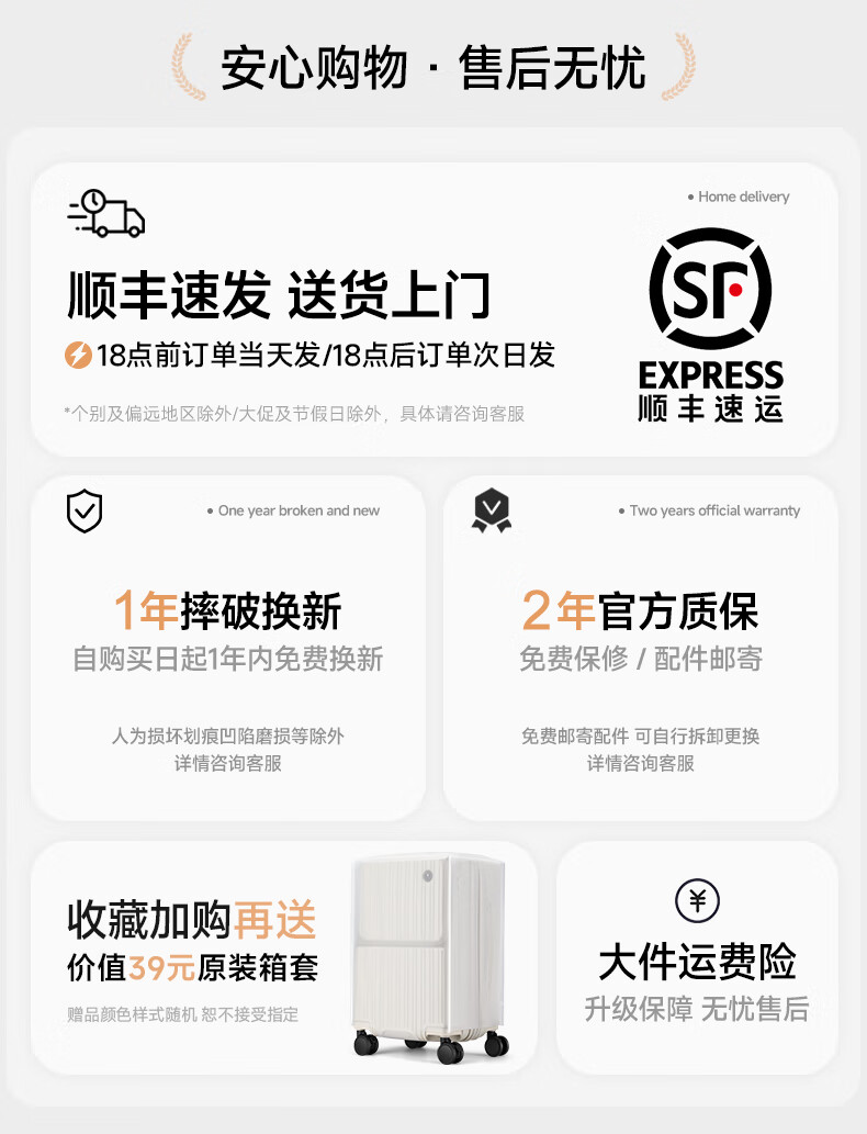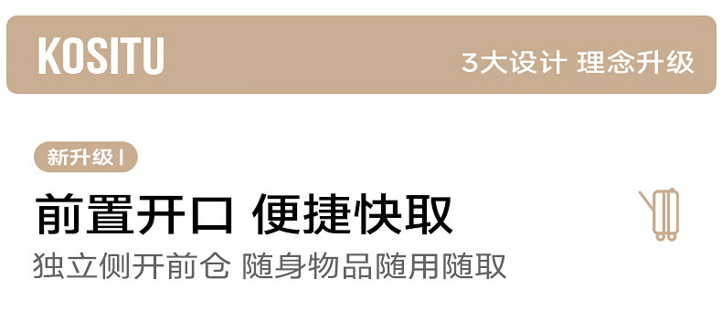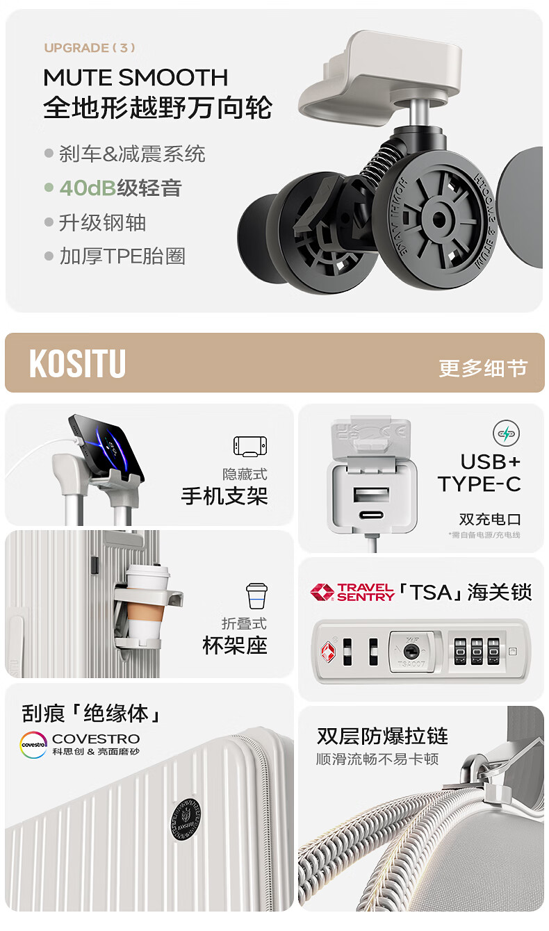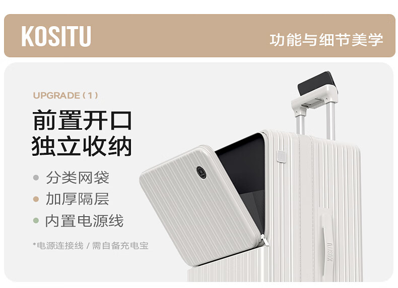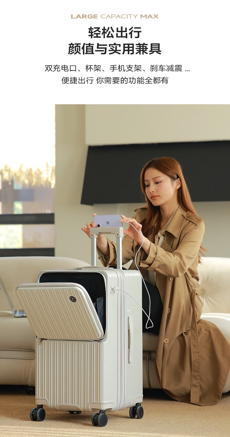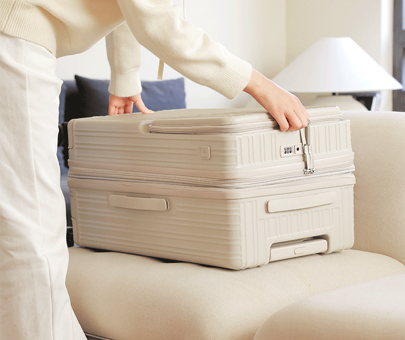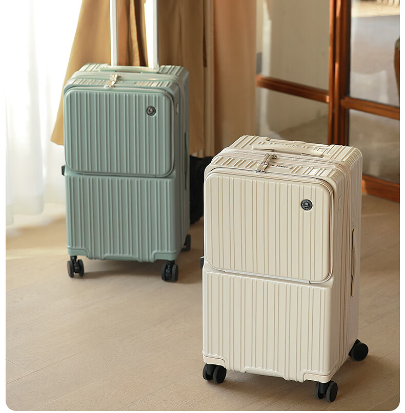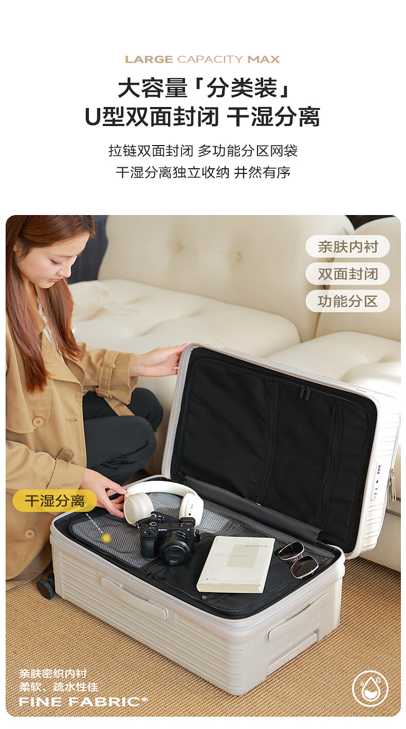 KOSITU Germany's new front-opening expandable suitcase for women, large capacity 24-inch 20-inch carry-on suitcase, sturdy trolley suitcase for men, oatmeal gray, expanded capacity, new color on the market, better looking than white and stain-resistant, 20-inch carry-on suitcase (three sides meet 115, can be boarded + can be placed on aircraft high-speed rail racks)