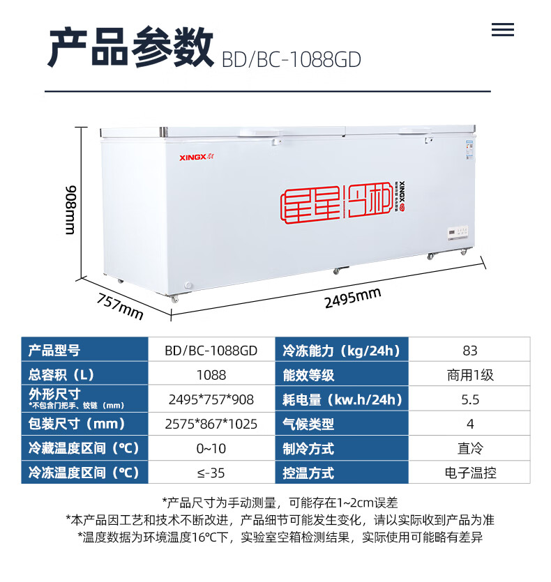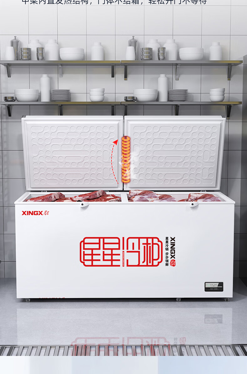 XINGX Freezer Commercial Large Capacity Freezer -40 Degree Cryogenic Single Temperature First Level Energy Efficiency Double Door Horizontal Refrigerator Ice Cream Cabinet Supermarket Convenience Store Store 618 Liters -40 Degree Cryogenic First Level Energy Efficiency BD/BC-618GD