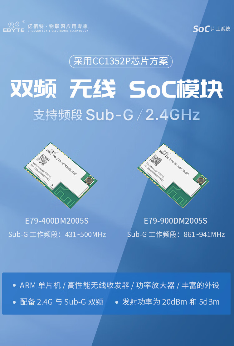 Ebyte 2.4G wireless SOC RF module Sub-G dual-band wireless system-on-chip built-in ARM patch equipped with FPC antenna E79-900DM2005S