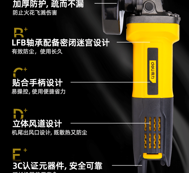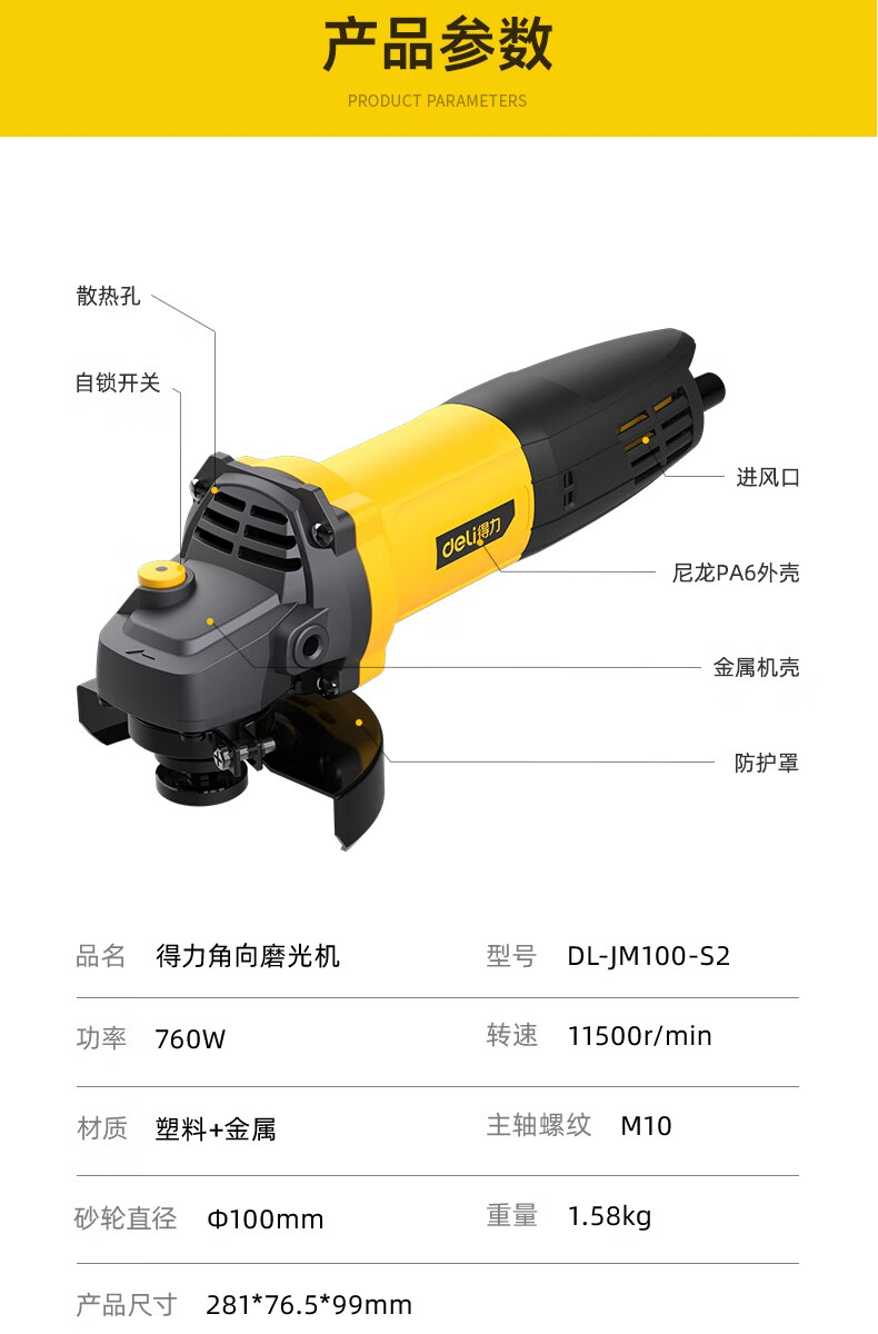 Deli angle grinder cutting machine multi-functional grinding and polishing machine hand grinding wheel industrial high-power professional electric polishing machine 760W angle grinder rear switch