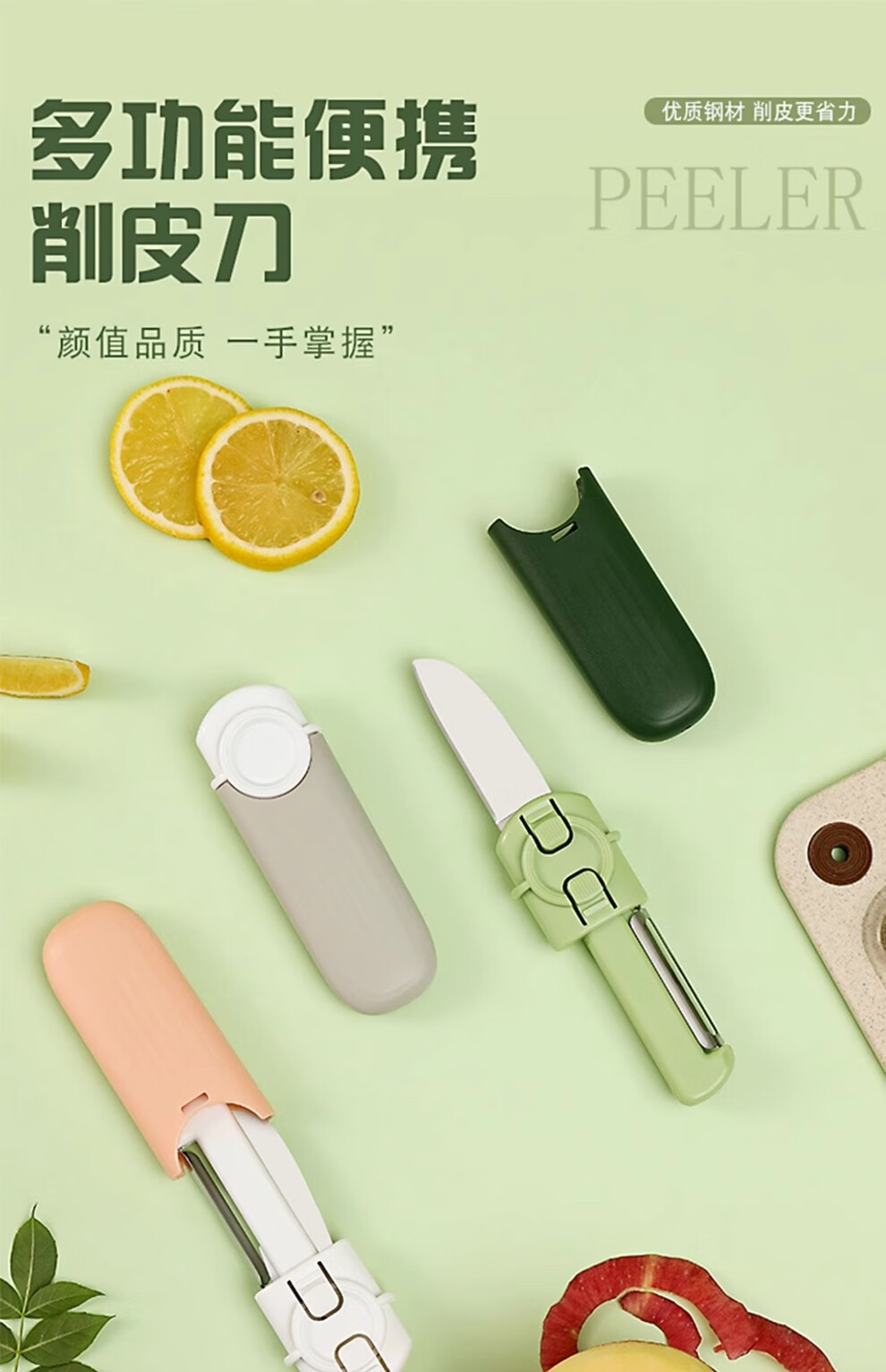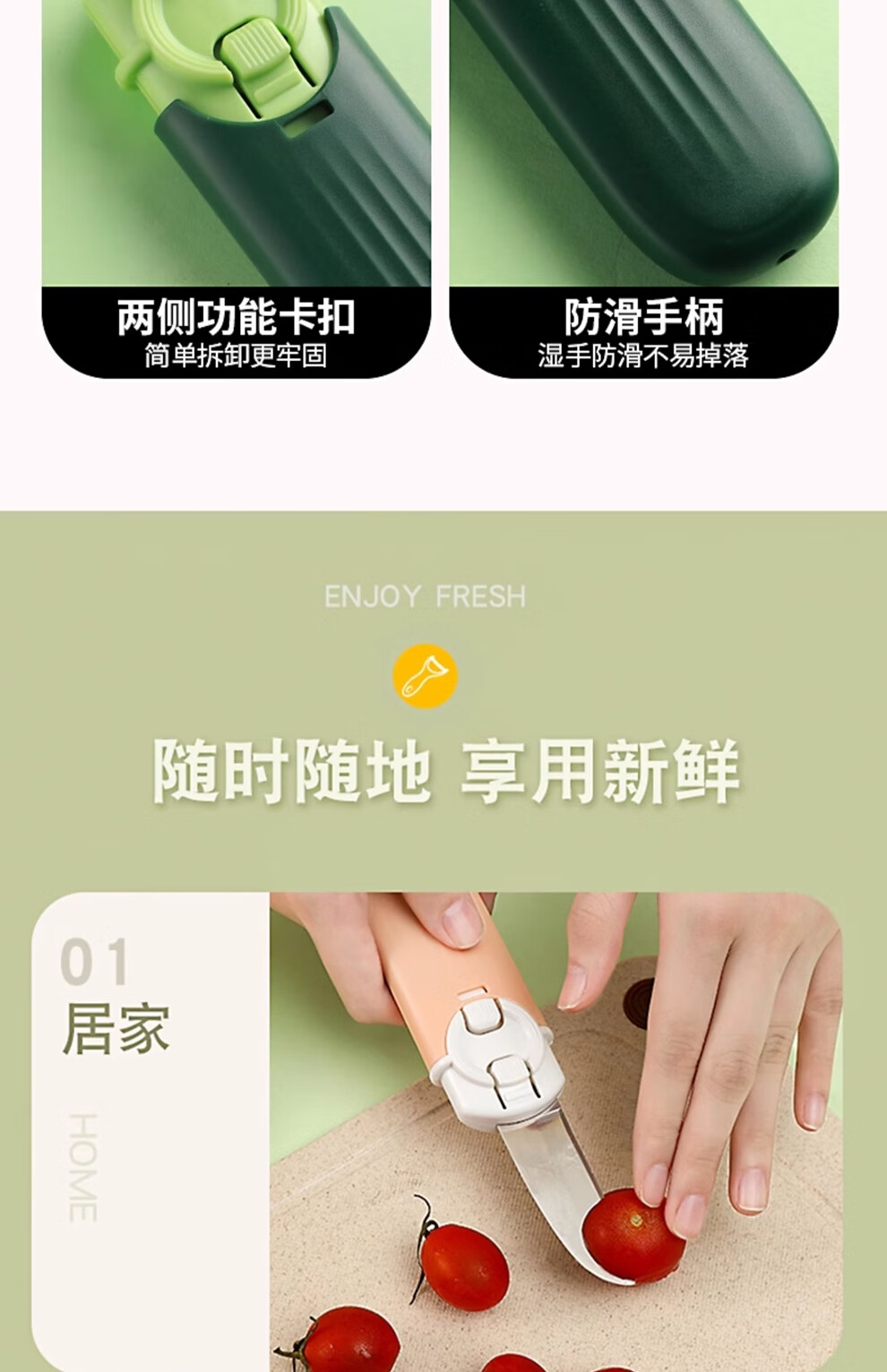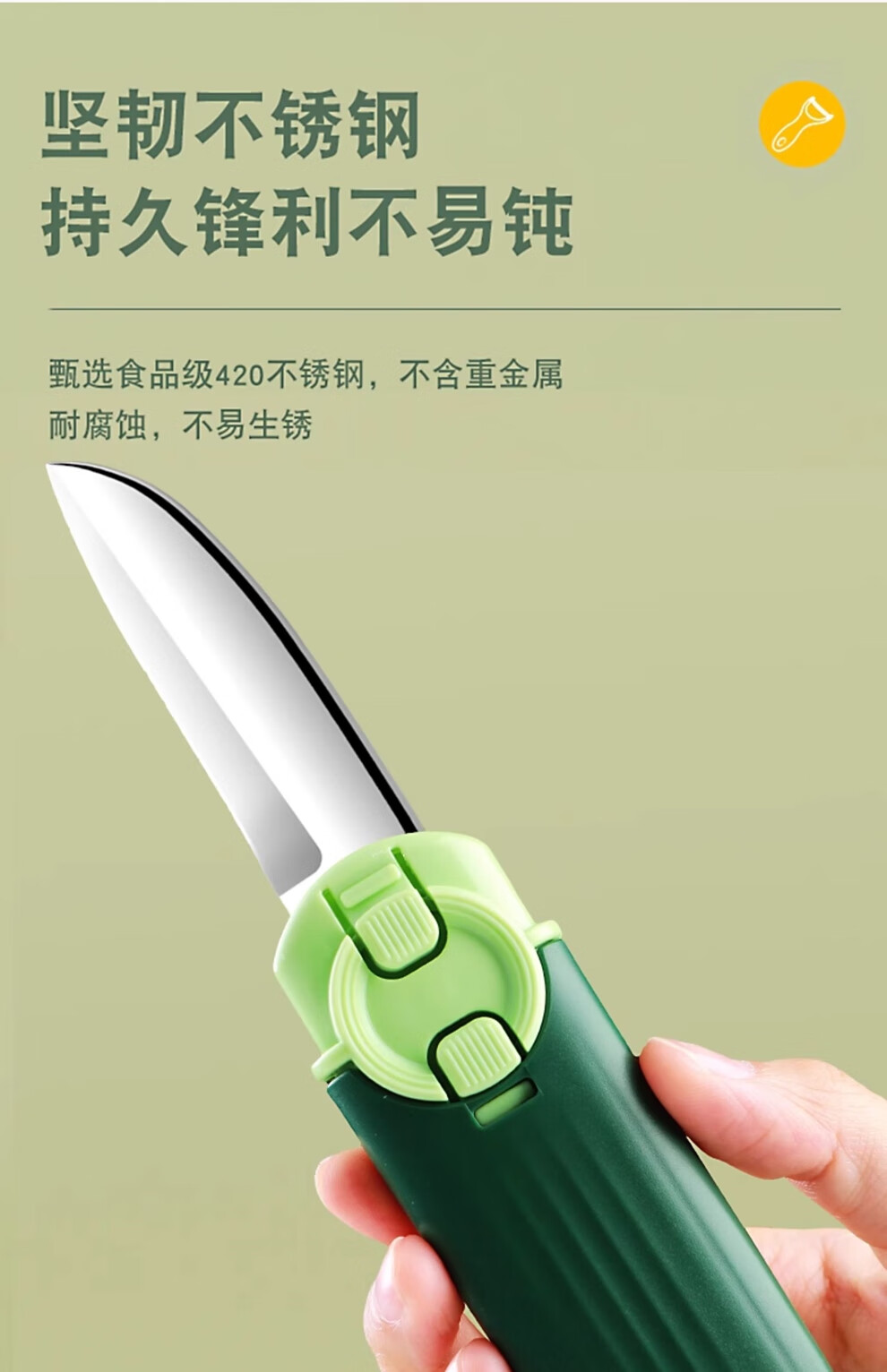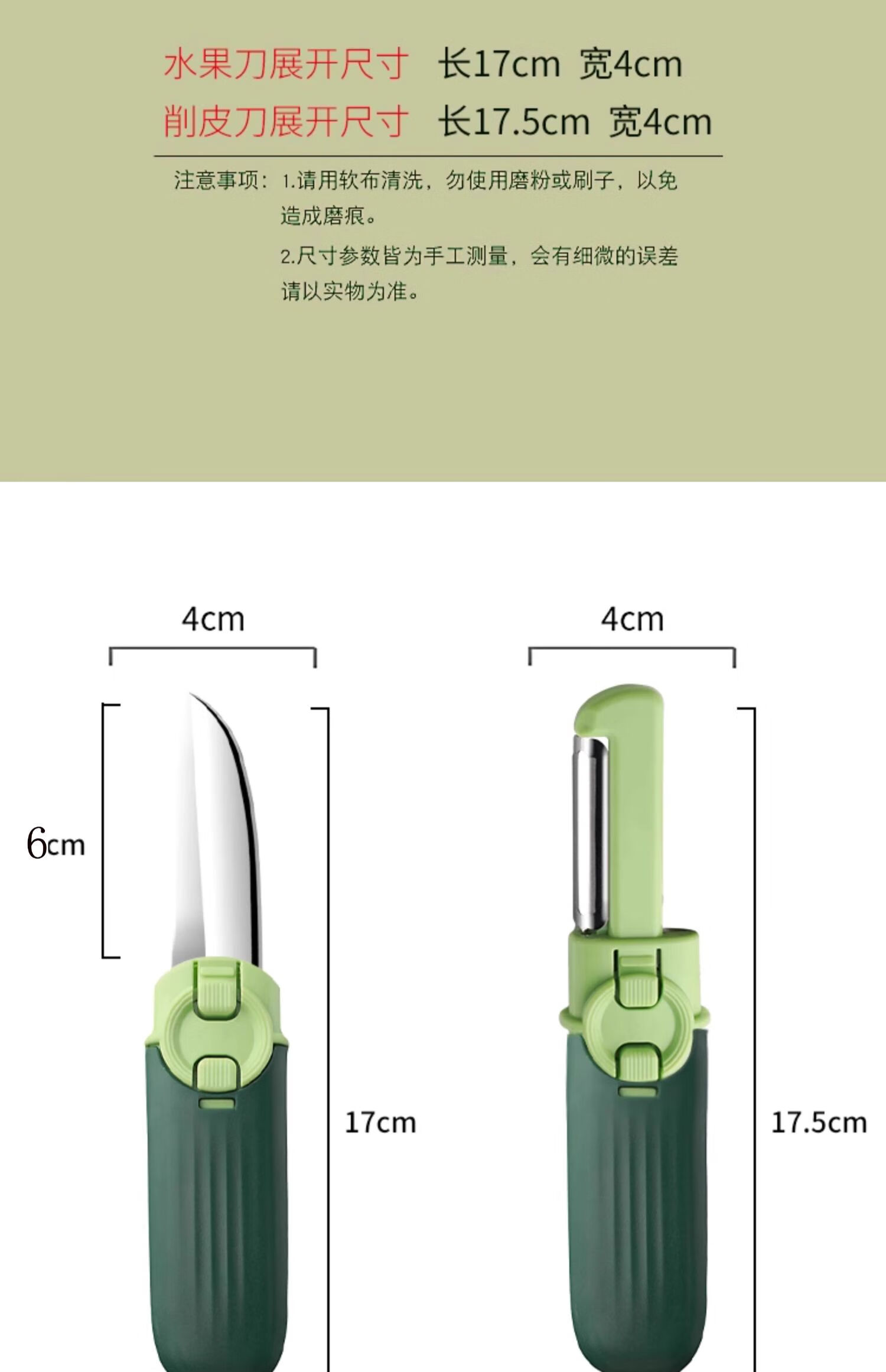 Rihe Shengtang Fruit Knife Folding Portable Household Mini Knife Multi-Functional Double-Headed Two-in-One Paring Knife for Apple Peeling Green Foldable Fruit Knife Over 60_6cm