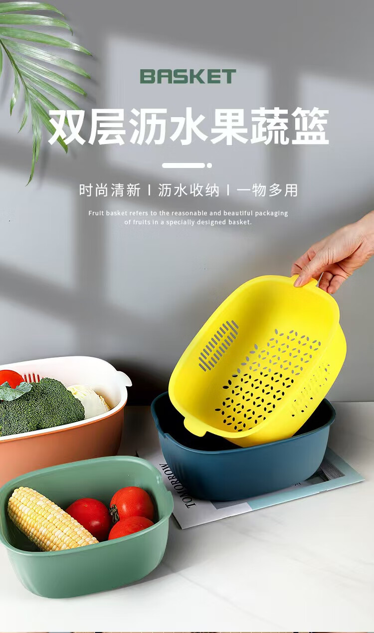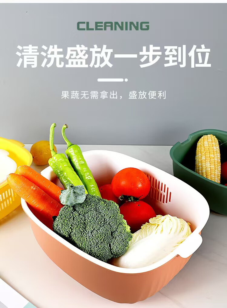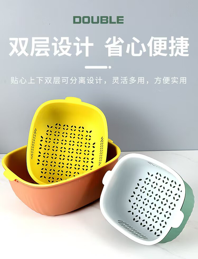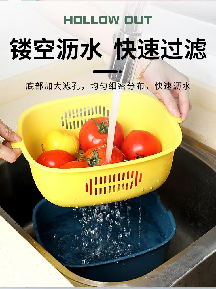 Haofanjie wash basin vegetable basket drain kitchen utensils vegetable basket supplies vegetable basin vegetable basket household vegetable basket basket double-layer U-shaped small size - orange