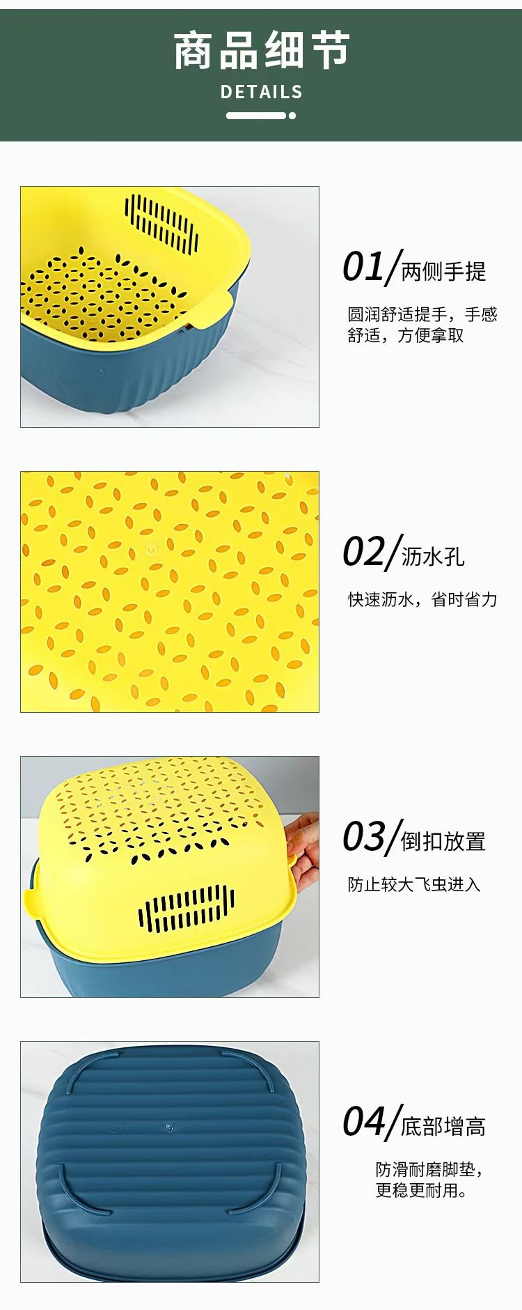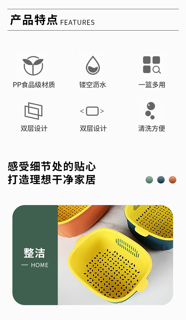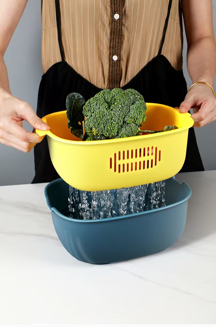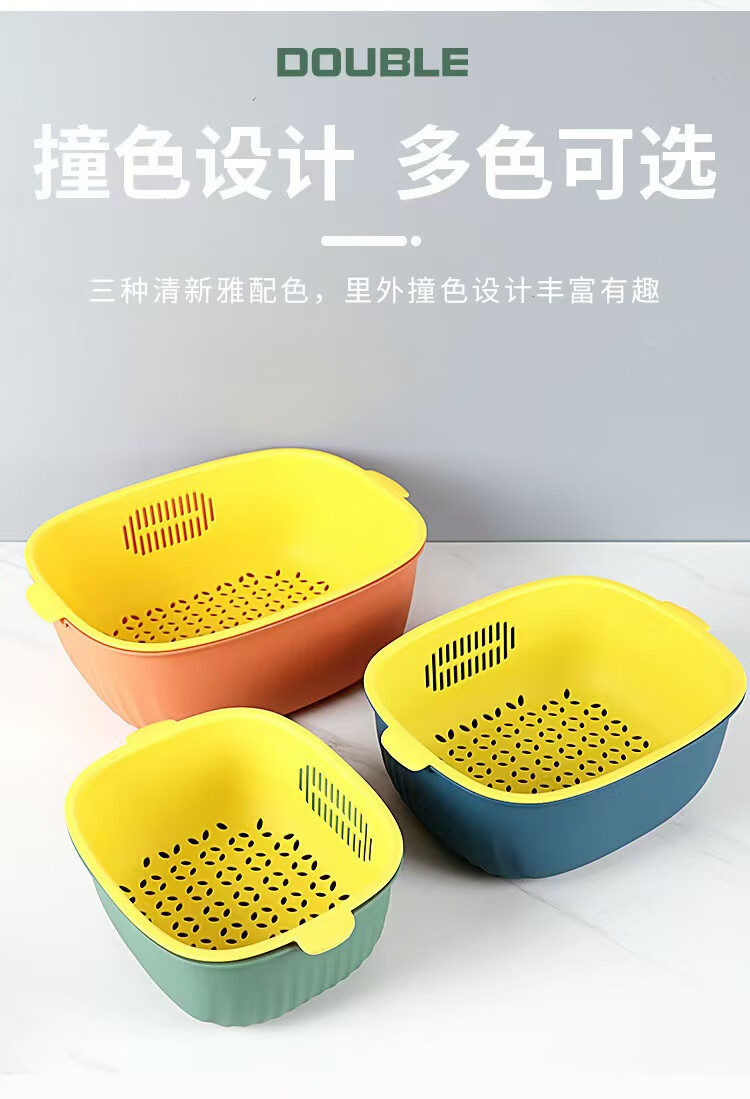 Haofanjie wash basin vegetable basket drain kitchen utensils vegetable basket supplies vegetable basin vegetable basket household vegetable basket basket double-layer U-shaped small size - orange