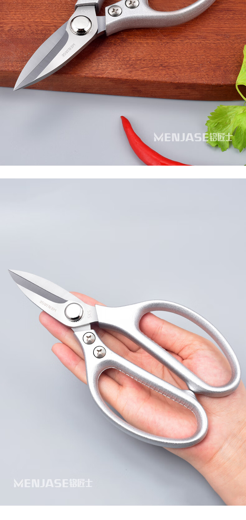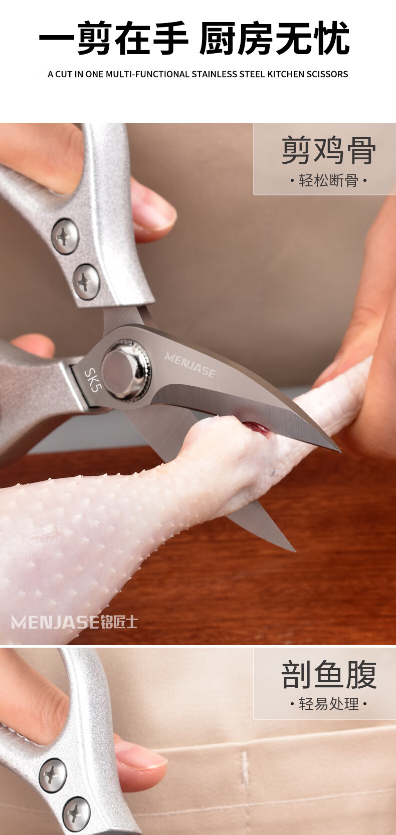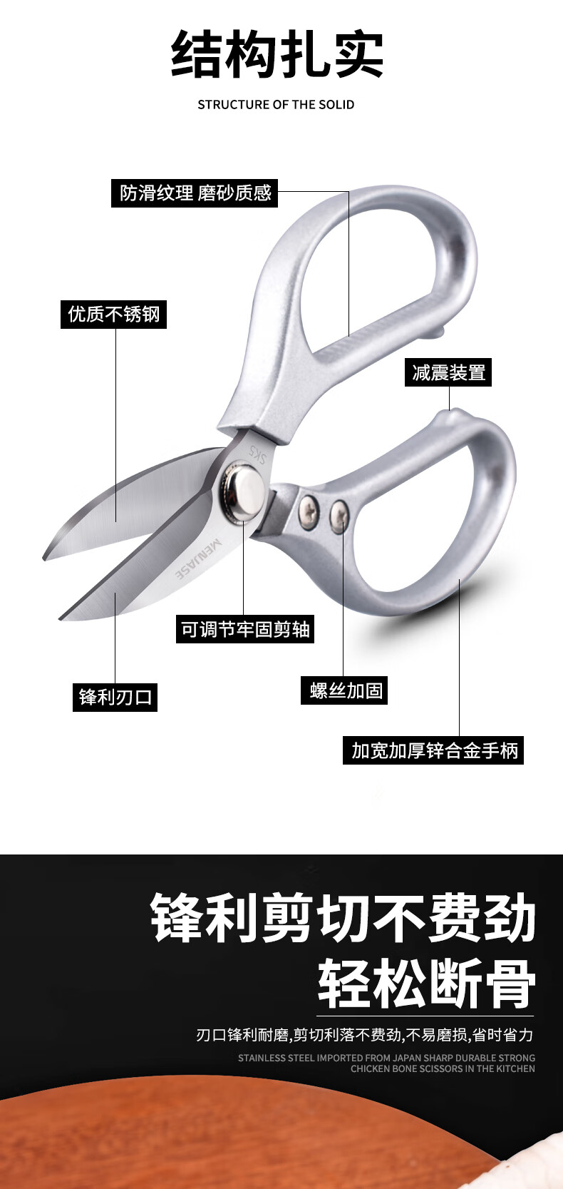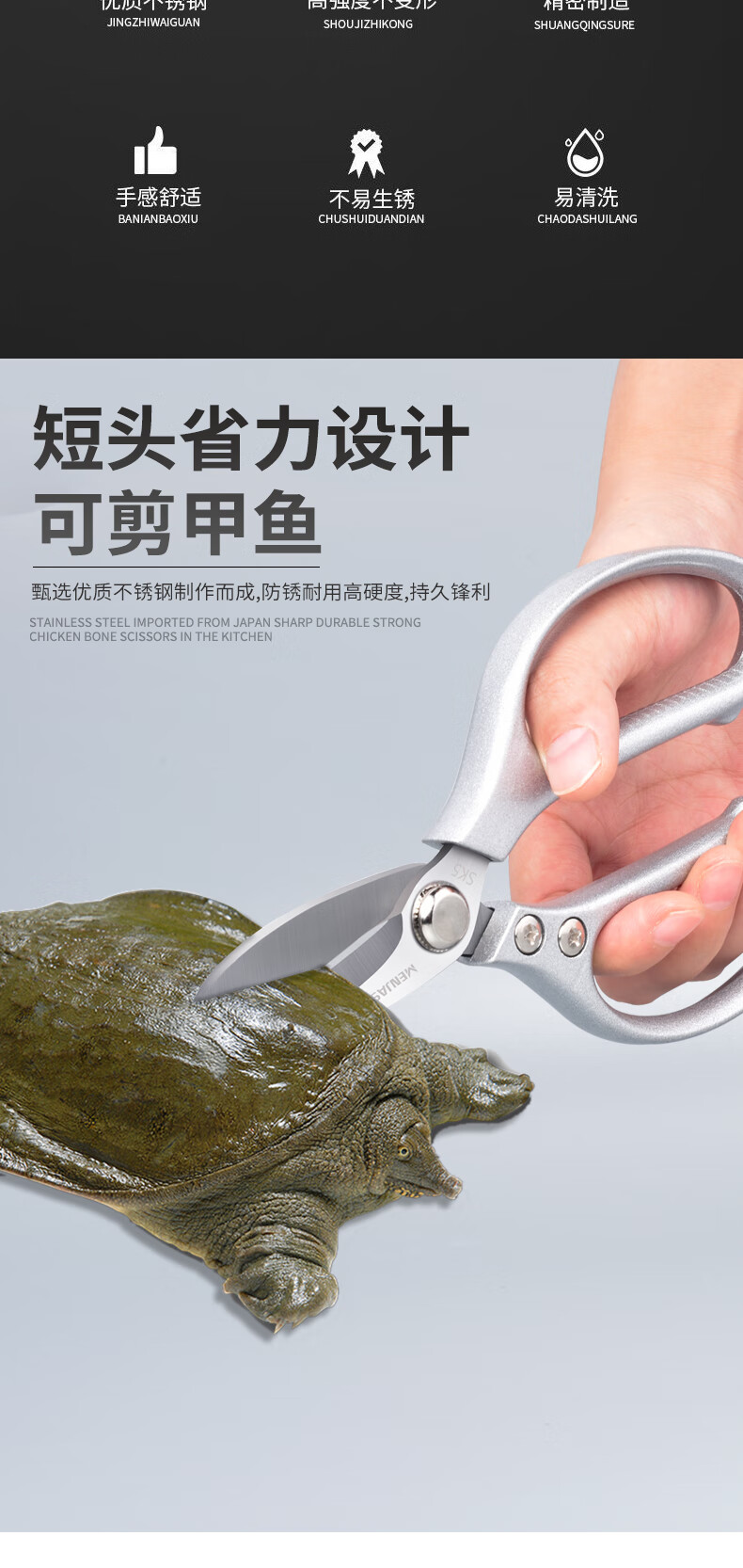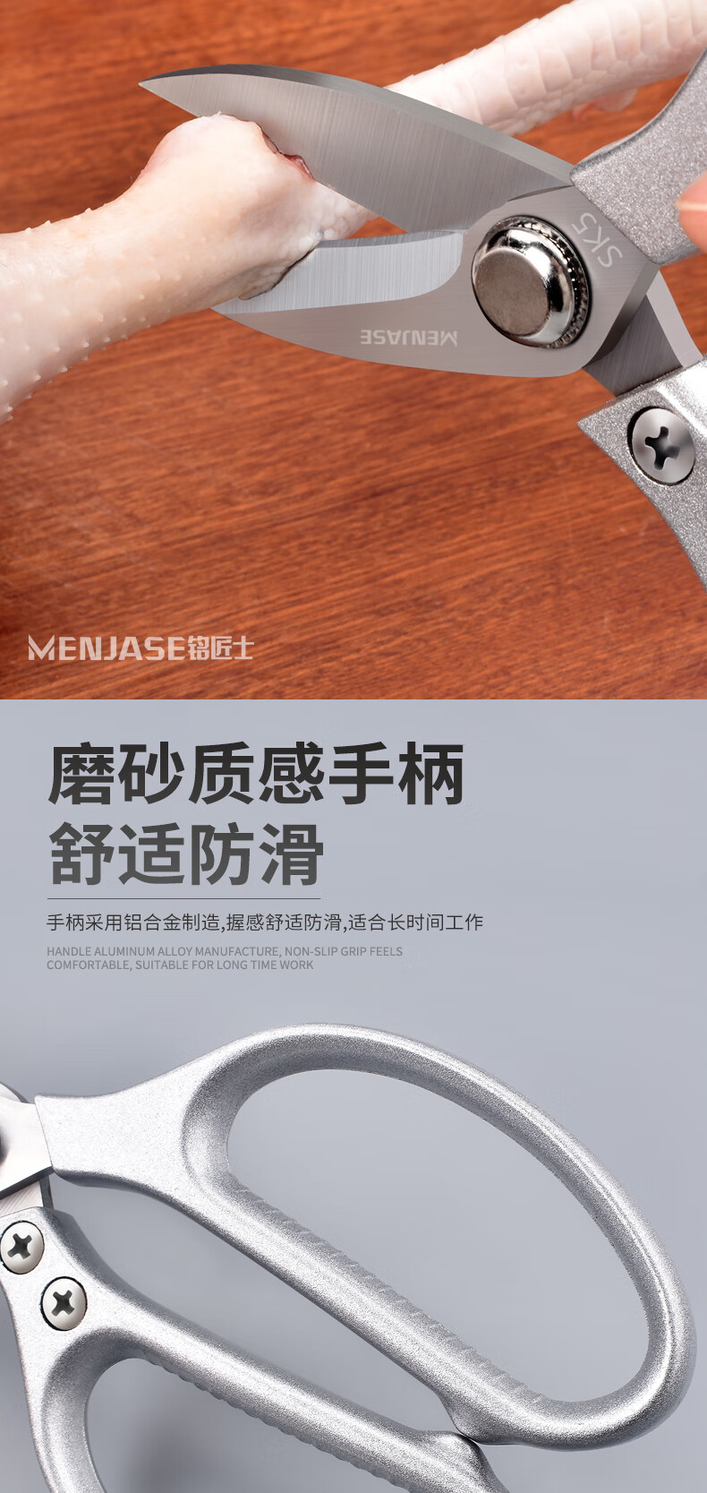 Meschute German Seiko Kitchen Scissors Powerful Chicken Bone Scissors Stainless Steel Household Multifunctional Scissors Fish and Turtle Scissors Powerful Chicken Bone Scissors 2nd Generation Upgraded Titanium Alloy