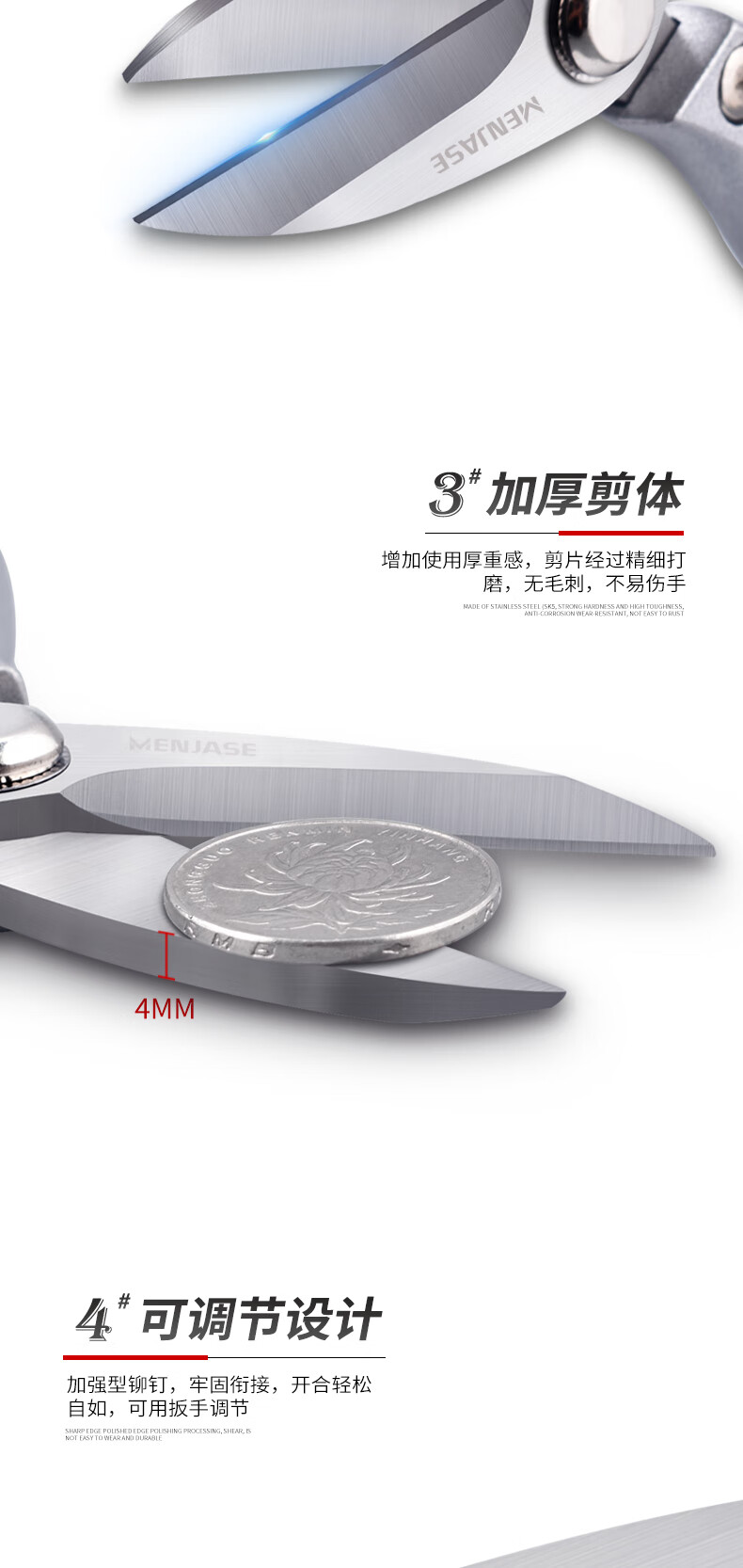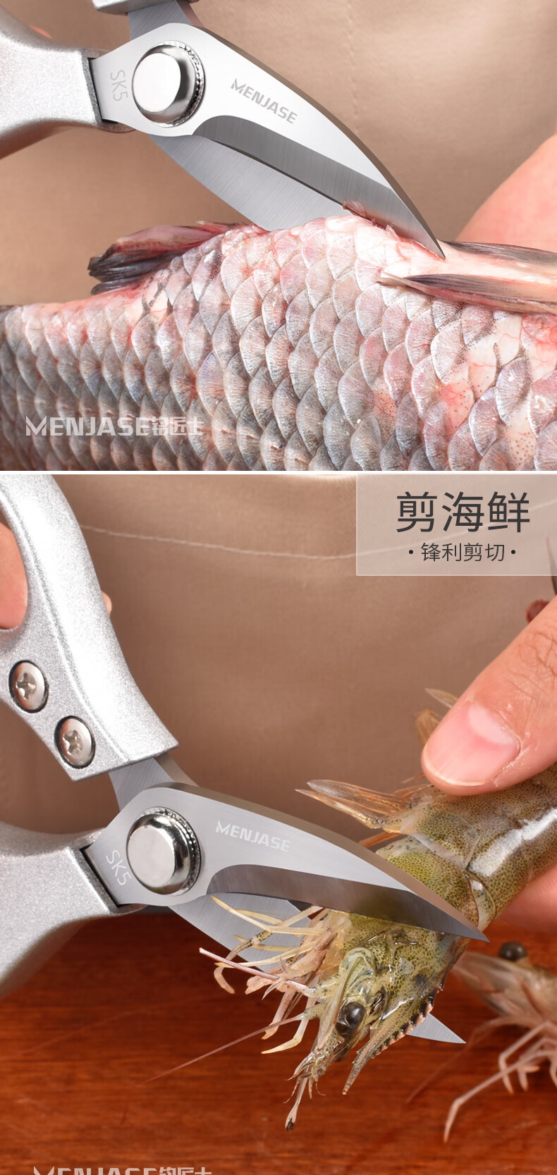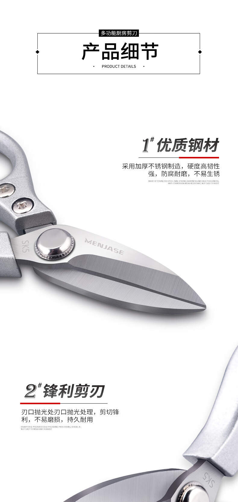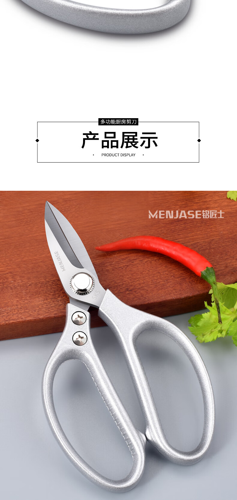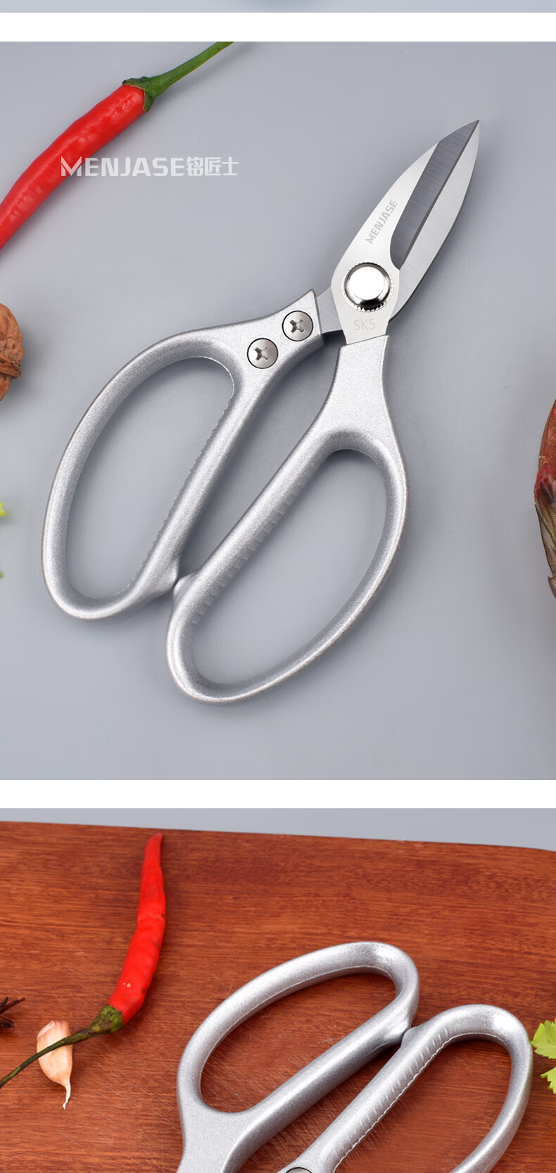 Meschute German Seiko Kitchen Scissors Powerful Chicken Bone Scissors Stainless Steel Household Multifunctional Scissors Fish and Turtle Scissors Powerful Chicken Bone Scissors 2nd Generation Upgraded Titanium Alloy