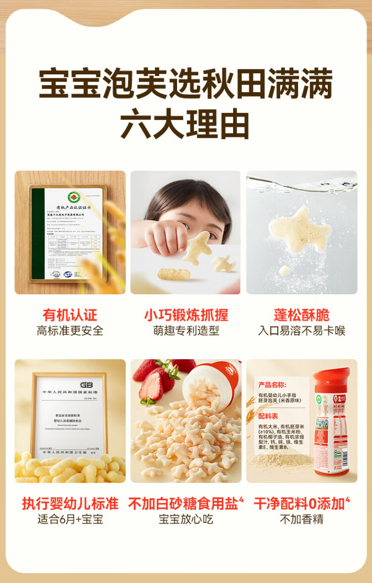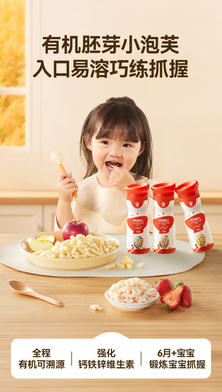 Akita Full Finger Puff Bars Children's Baby Snacks 6 Months and Over for Teething Biscuits Easily Dissolved in the Entrance Level 3 Small Plane Puffs Blueberry Apple 32g
