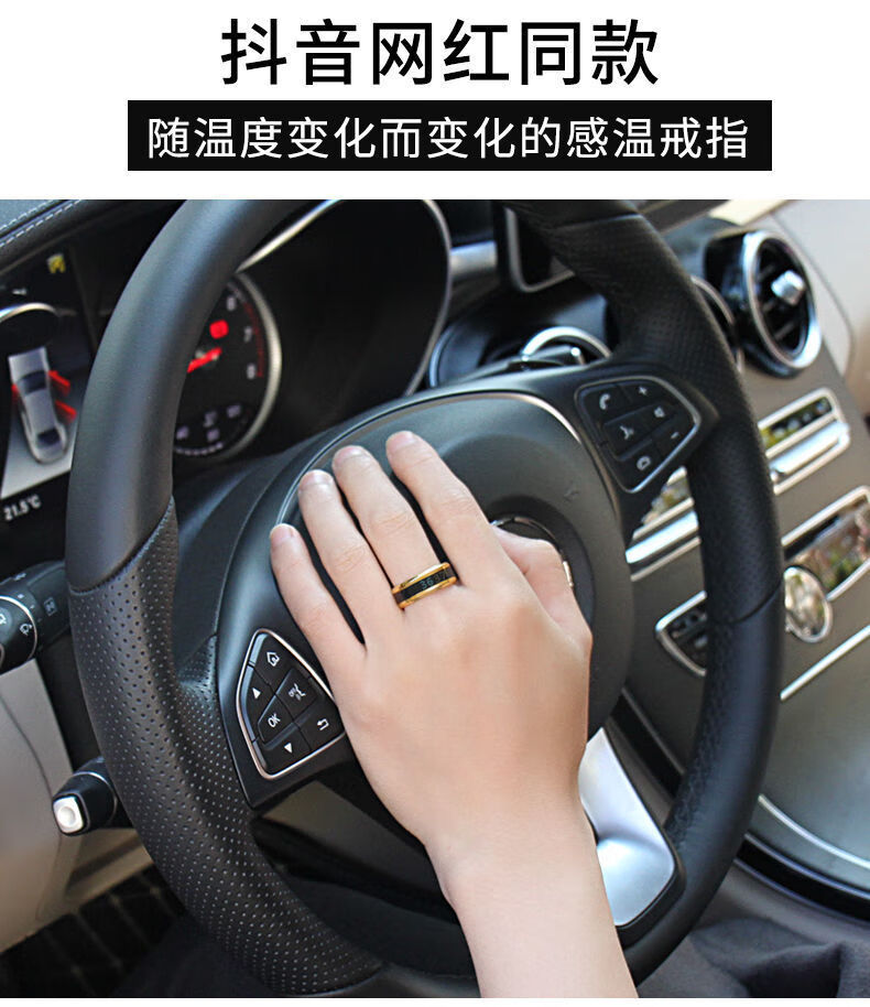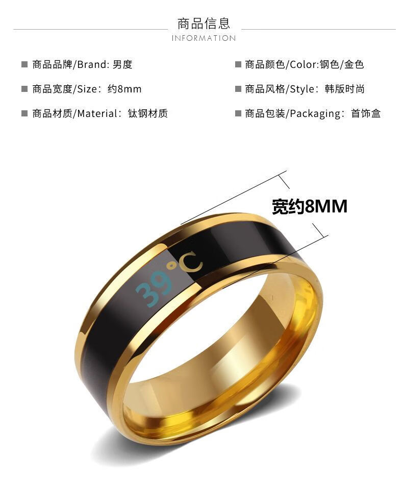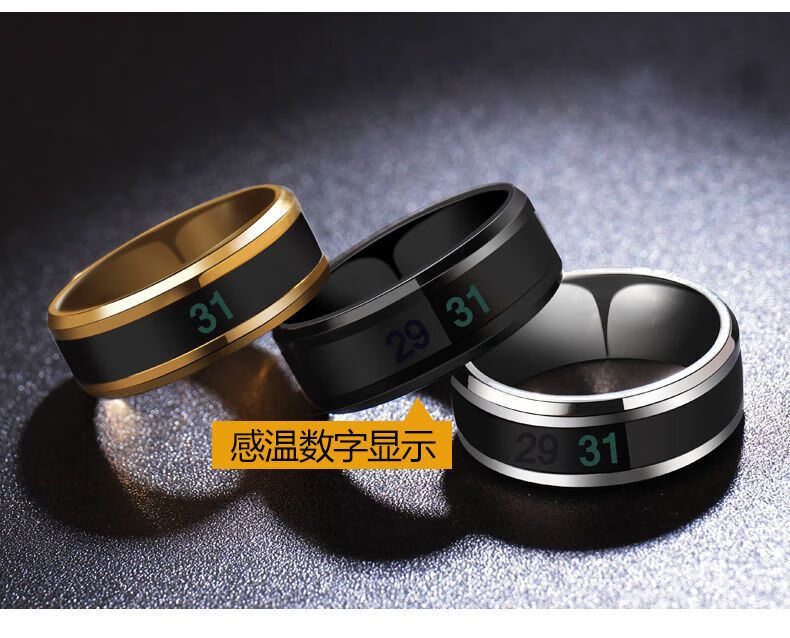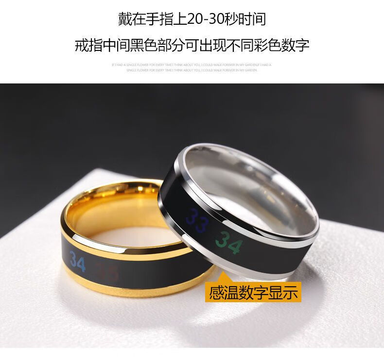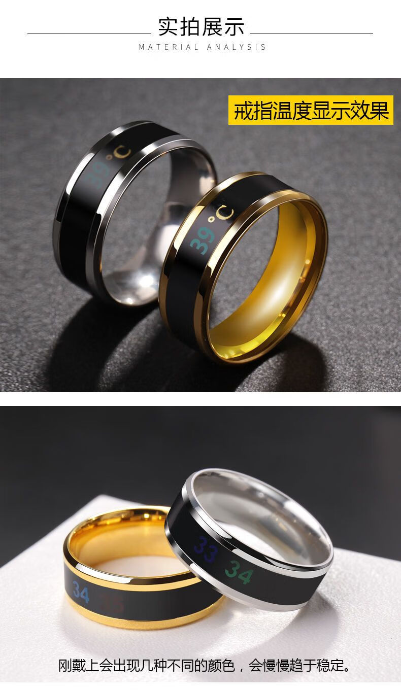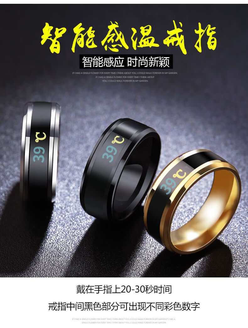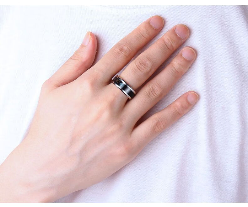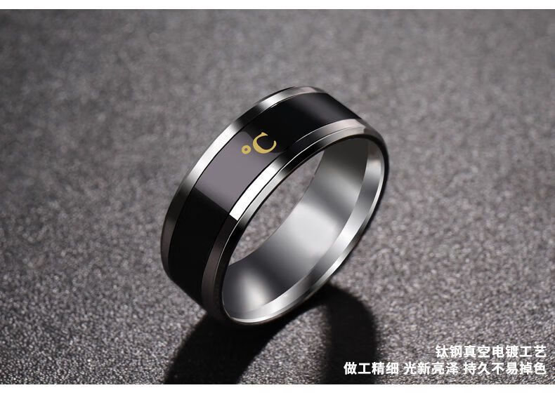 Temperature-sensitive ring automatically changes color for a male couple and a female Korean version of titanium steel to display temperature and personality, fashionable temperature-sensitive ring ring for men, trendy titanium steel, fashionable personality, cool and versatile finger, Korean version smart ring, silver, size 12 finger circumference 67.2mm