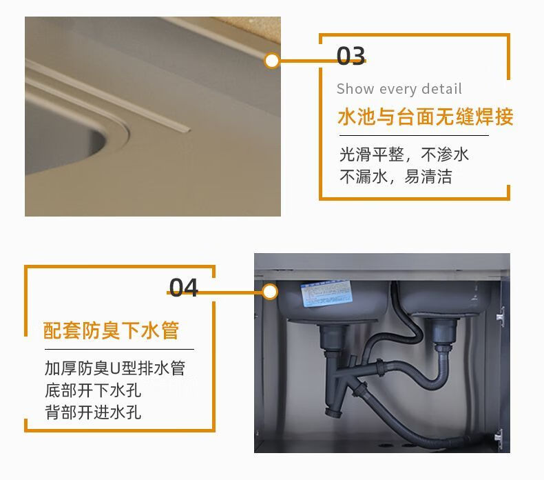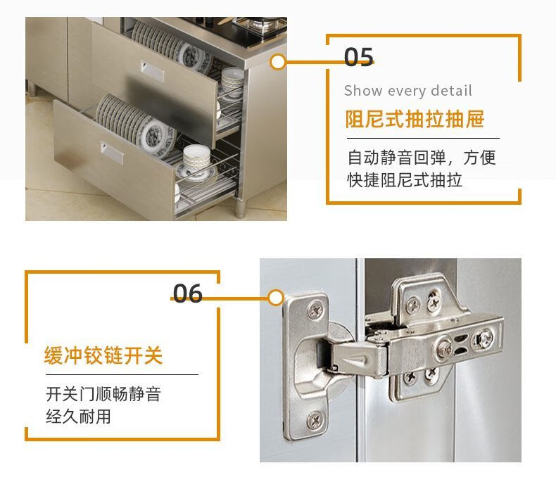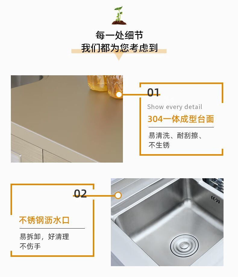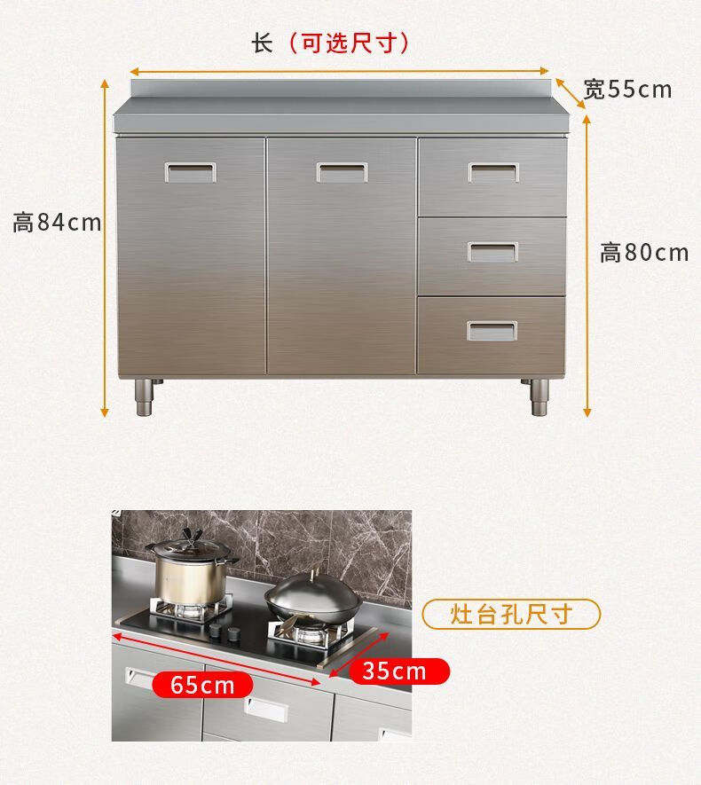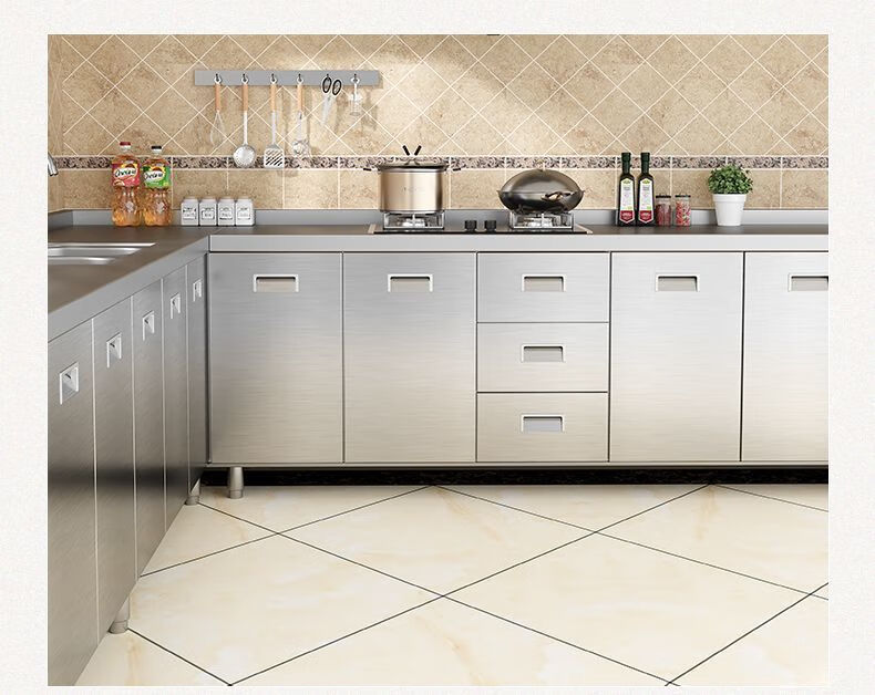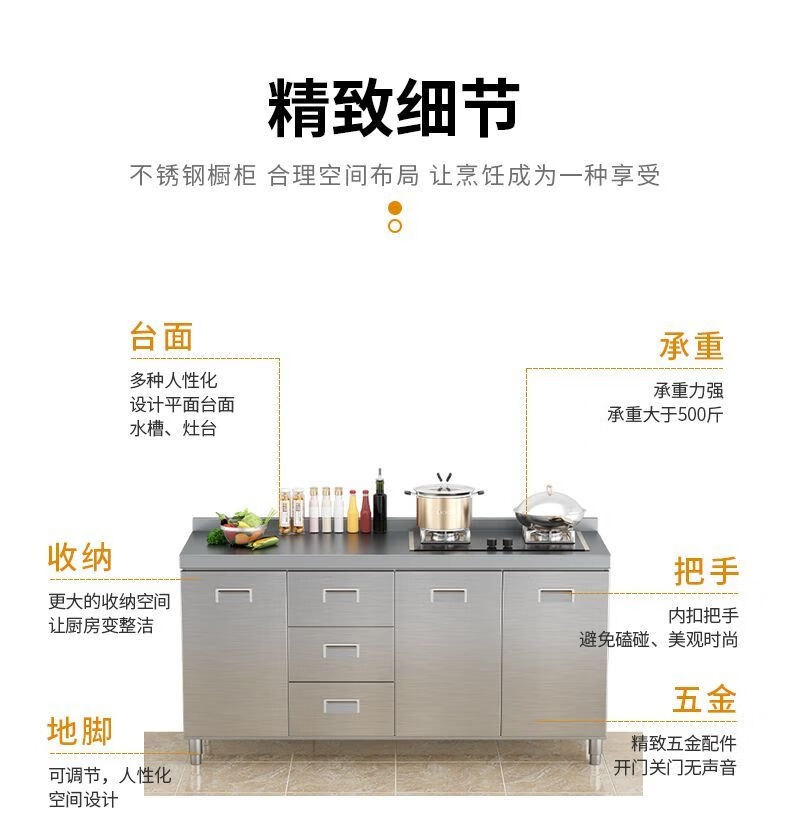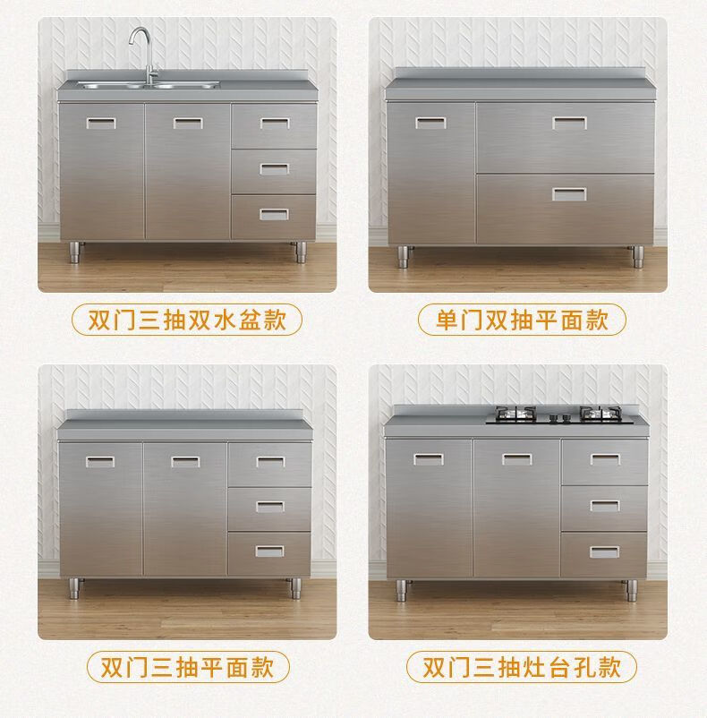 Qinkai overall stainless steel cabinet 304 steel diamond-shaped corner cabinet kitchen cabinet storage integrated sink stove cabinet 2 meters five-door flat style (304 steel thickening) Jinri