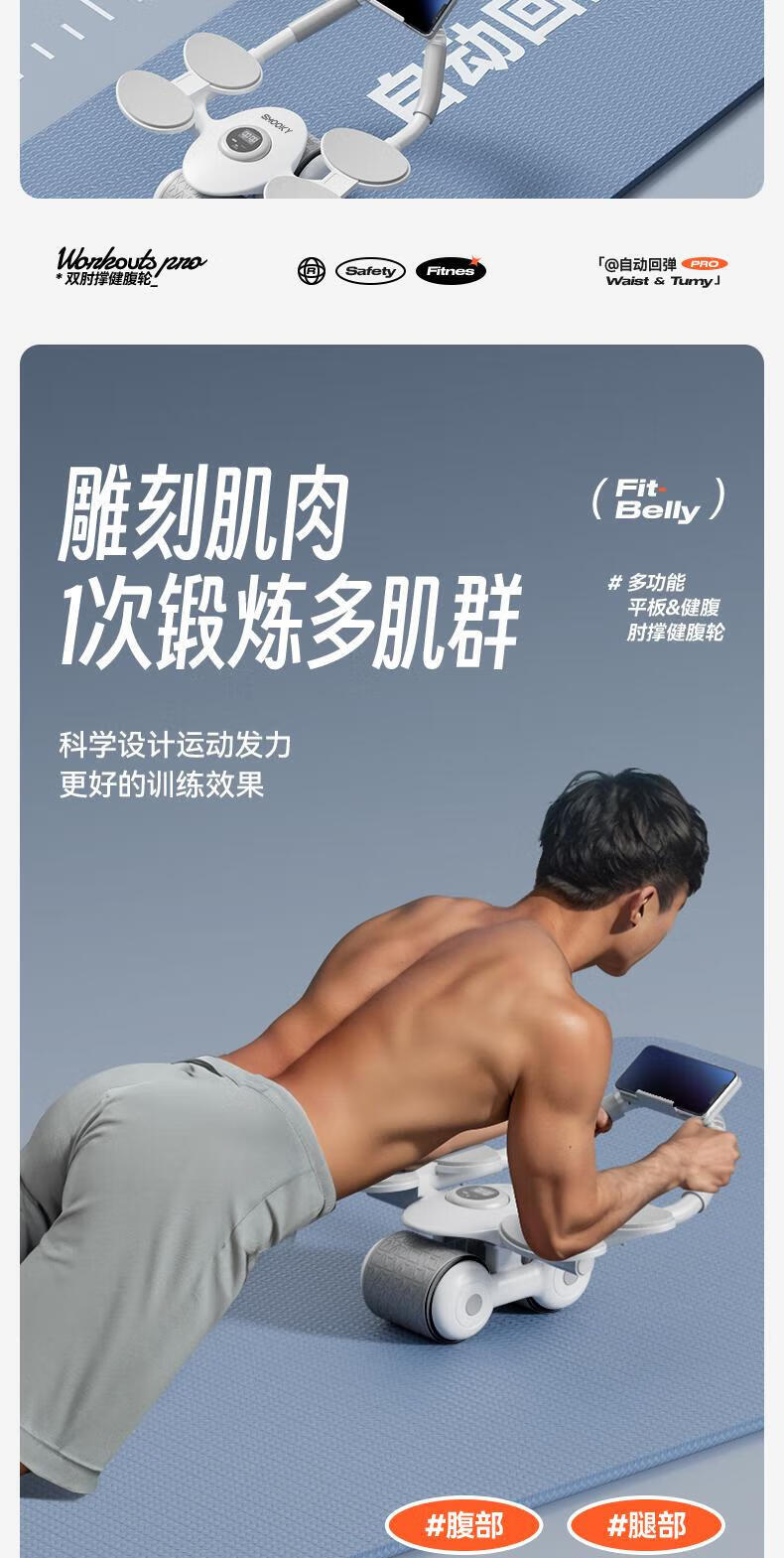 SMOOKY Abdominal Wheel Automatic Rebound Abdominal Crunches Exercise Abdominal Muscle Training Tool for Men and Women Basic Model Automatic Rebound and Free Kneeling Pad