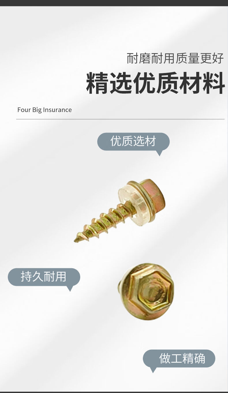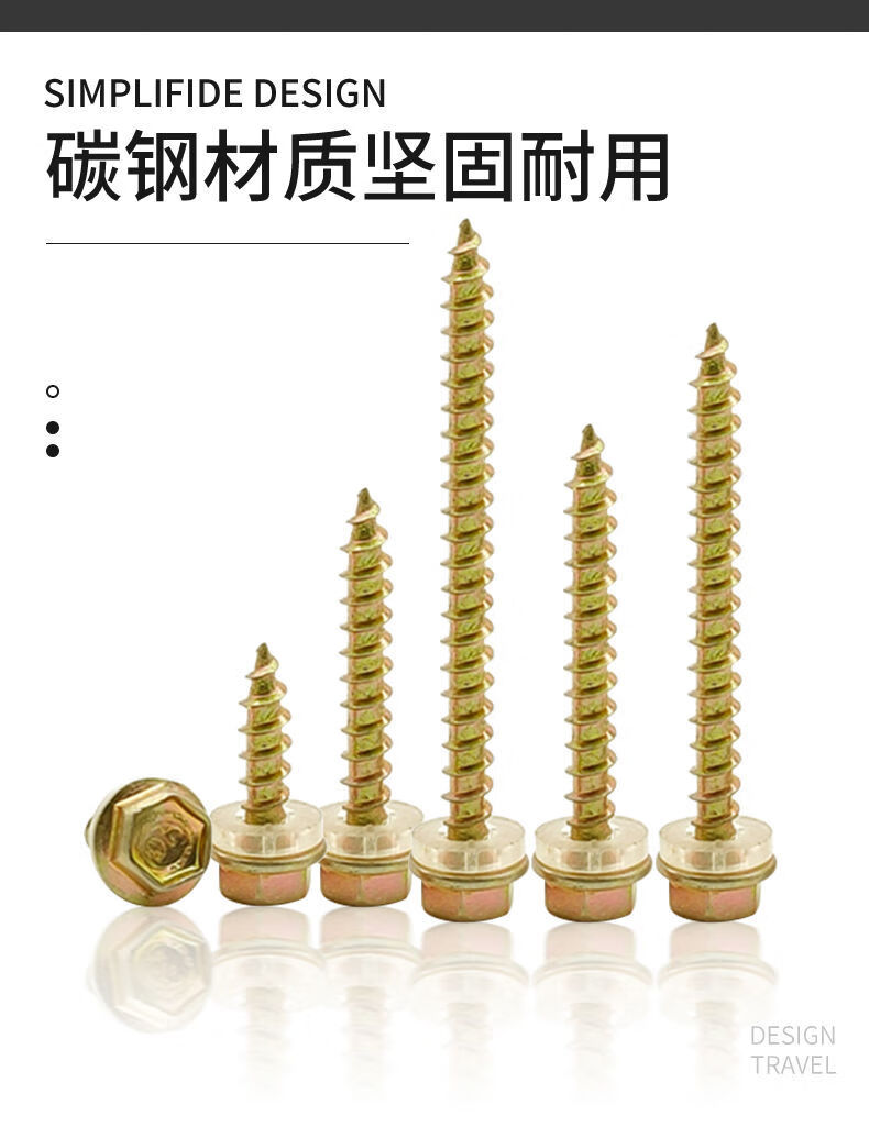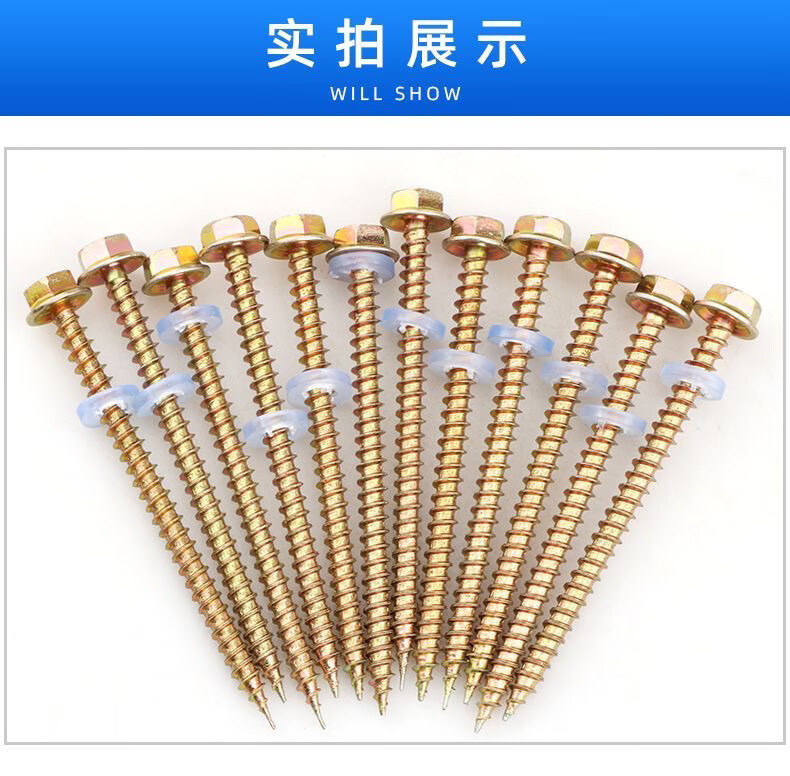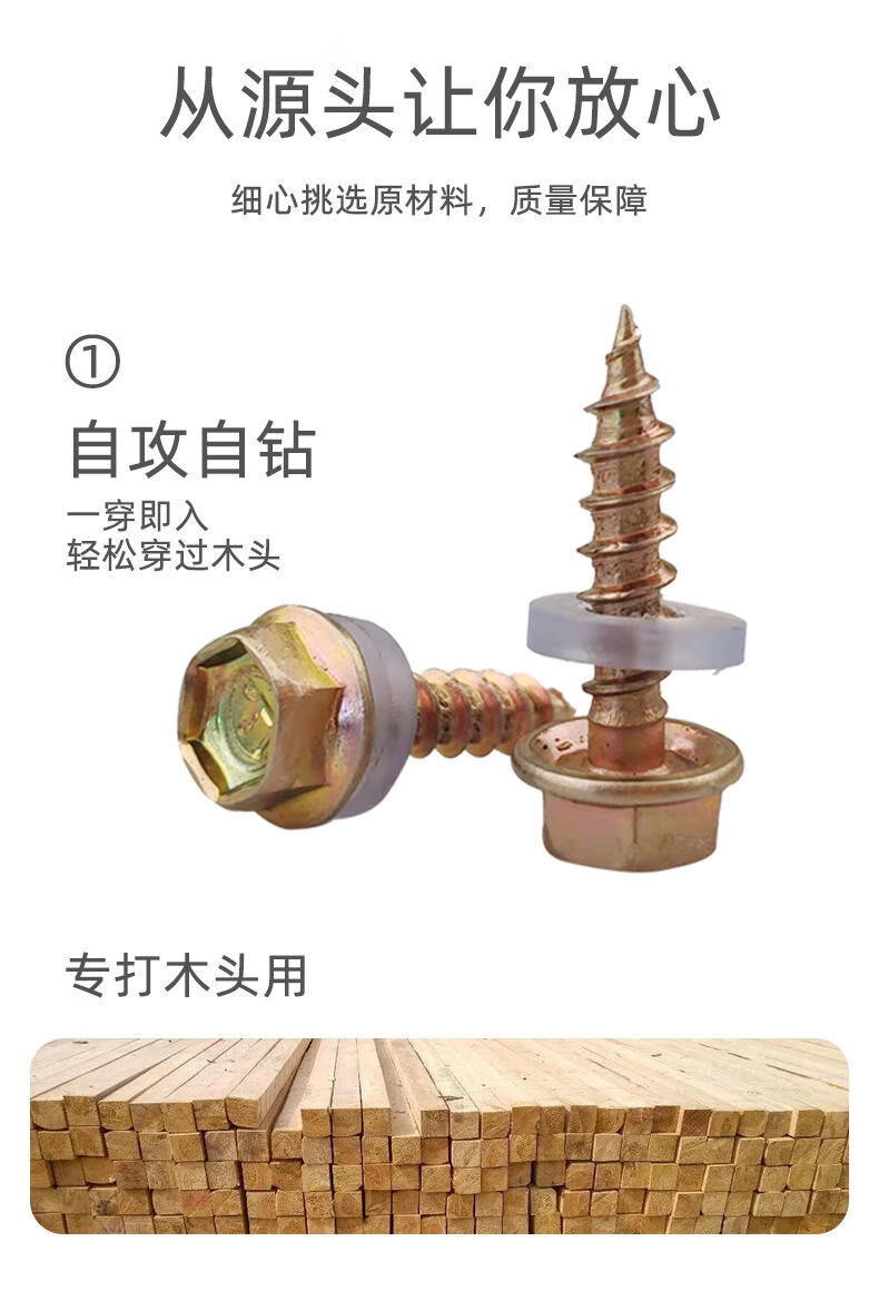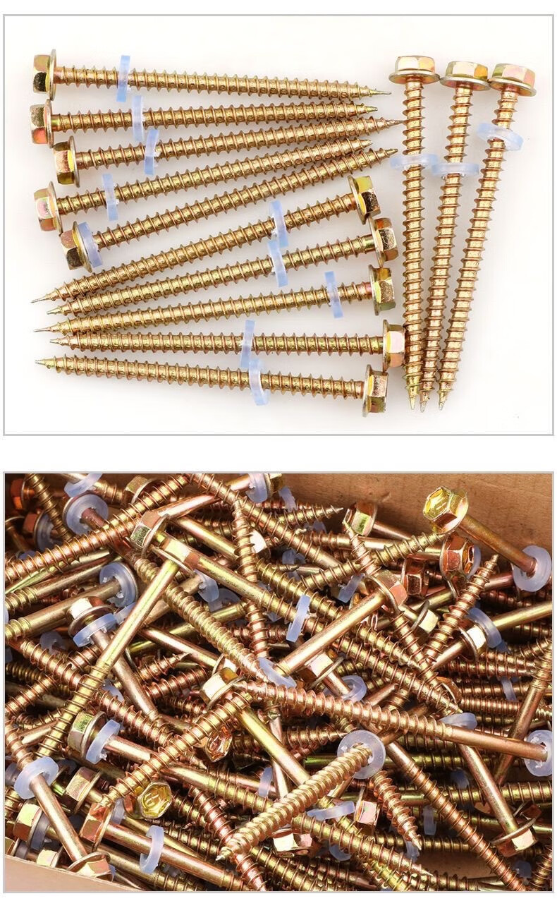 Qinkai hexagonal pointed tail wood nail wood drill drill tail wire wood square color steel tile pointed head self-tapping nail wood screw wood self-drilling nail total length 9.8 cm--(140 pieces)