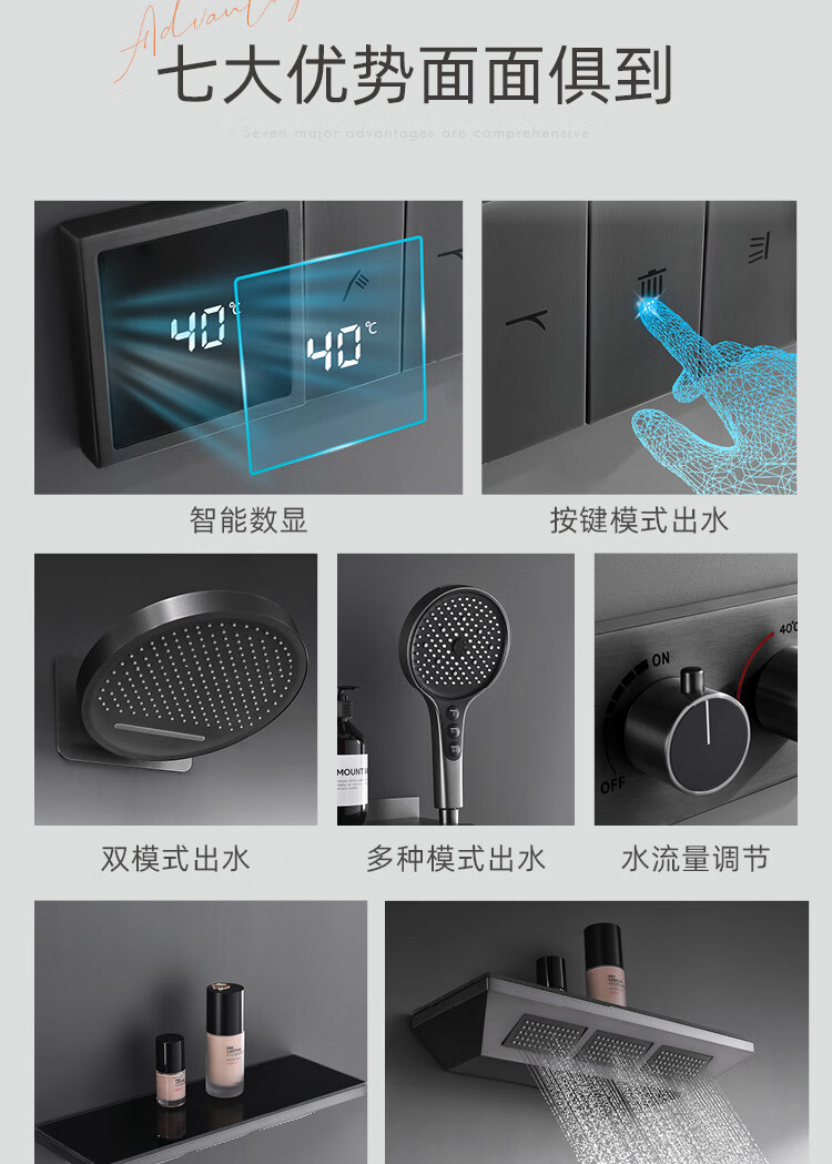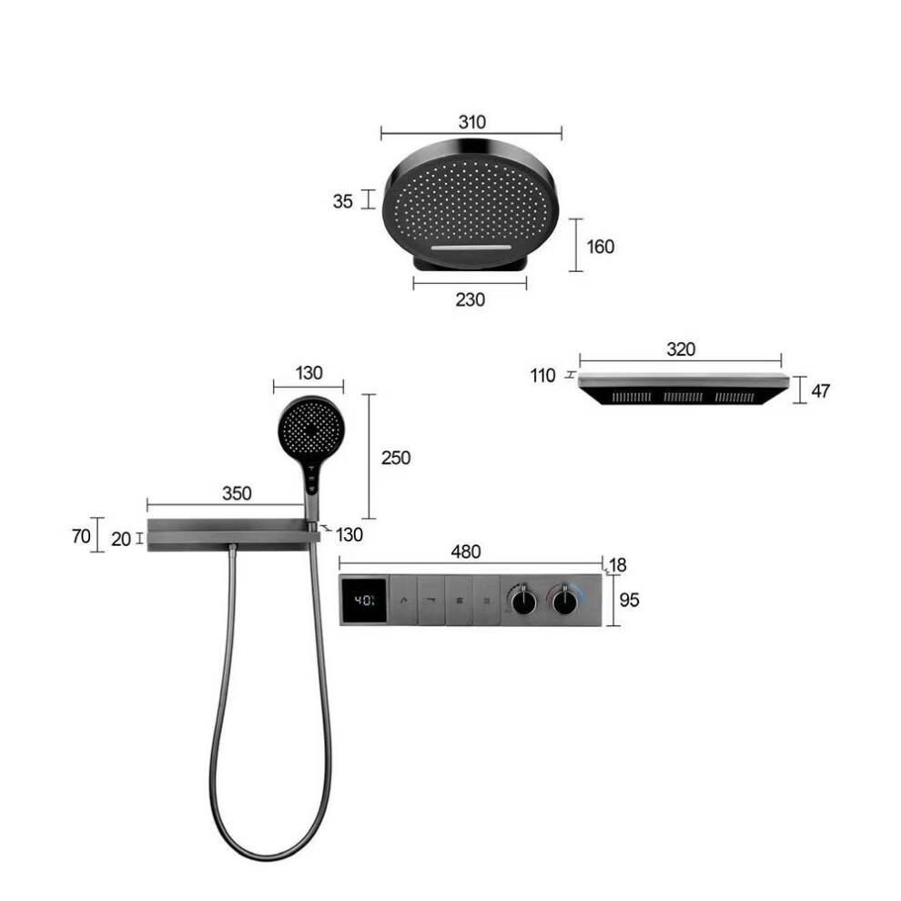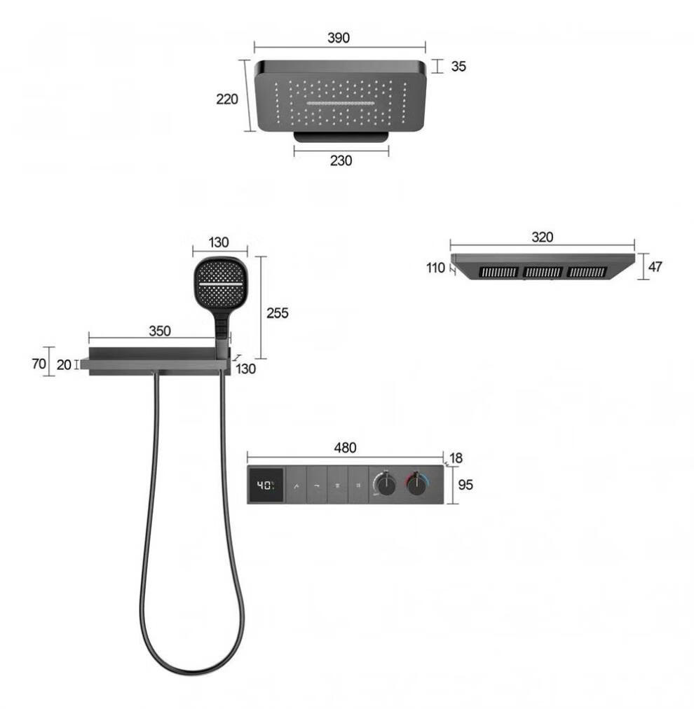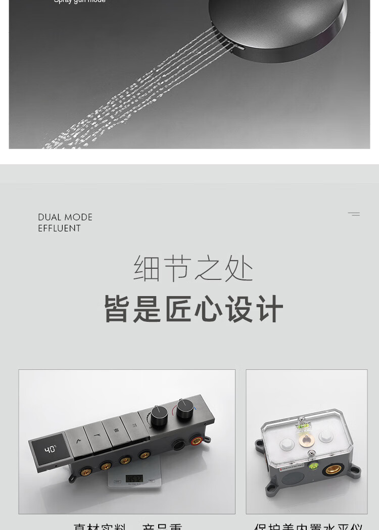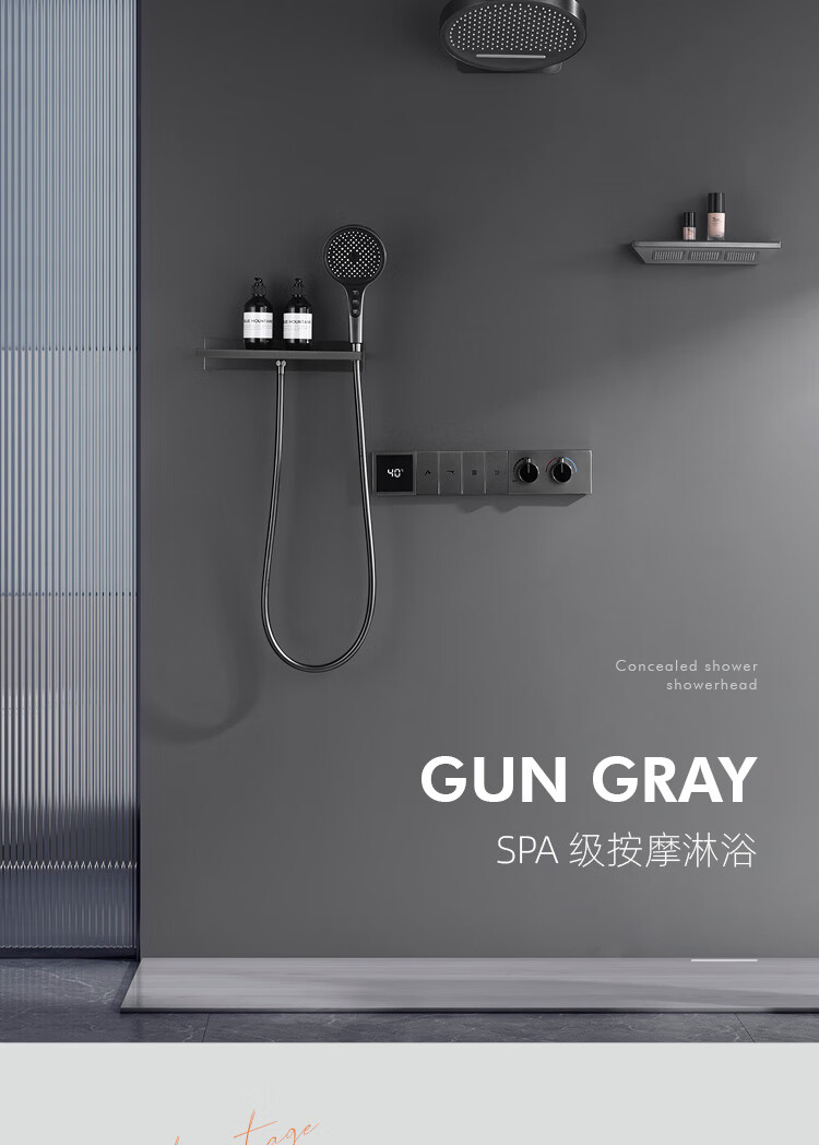Roca Mirror Rain series concealed shower head hidden embedded side spray waist spray constant temperature shower shower gun gray square