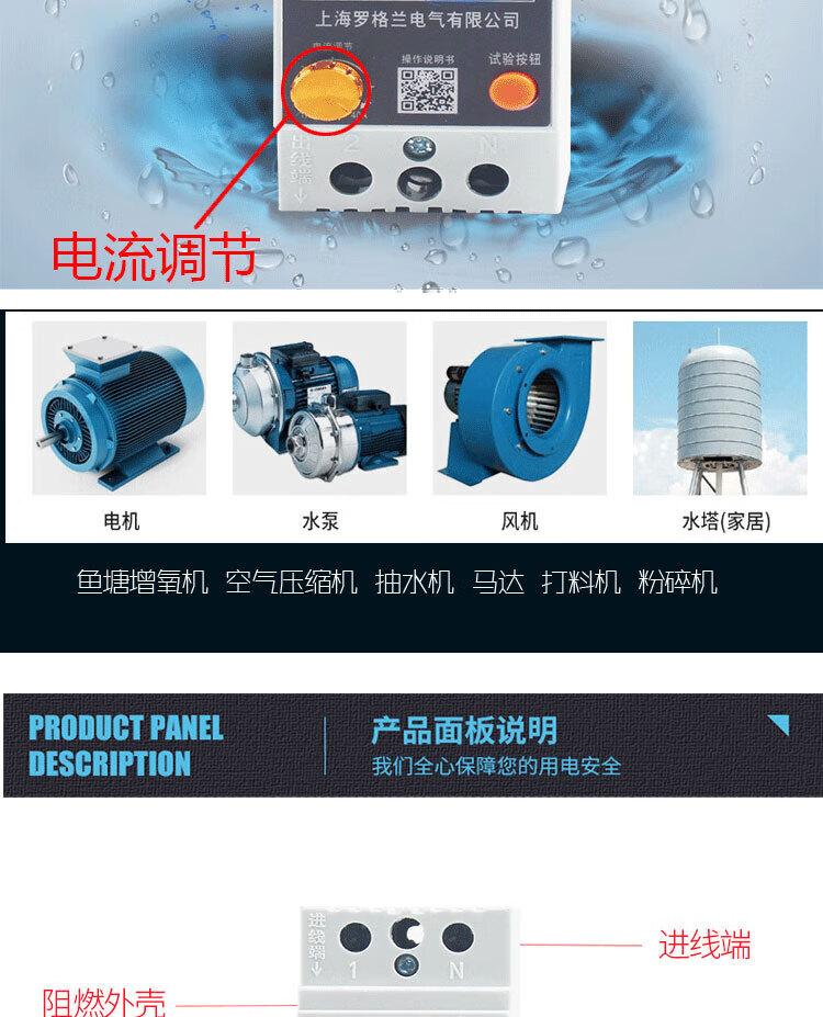 220V single-phase motor submersible pump intelligent comprehensive protector main switch leakage overload power adjustable 2P 40A